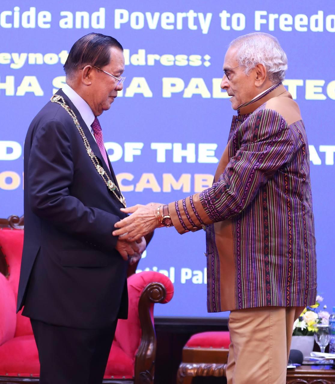 លោក José Ramos-Horta ប្រធានាធិបតី នៃសាធារណរដ្ឋប្រជាធិបតេយ្យទីម័រឡេស្តេ បានអញ្ជើញបំពាក់គ្រឿងបំពាក់ដោយផ្ទាល់ ឥស្សរិយយស Grand Collar of the Order of Timor-Leste ដែលជាឥស្សរិយយសកម្រិតខ្ពស់បំផុត និងជាការផ្តល់កិត្តិយសដ៏ធំធេងពីសំណាក់ភាគីទីម័រឡេស្តេ ជូនចំពោះ សម្តេចតេជោ ហ៊ុន សែន ប្រធានព្រឹទ្ធសភាកម្ពុជា ដែលធ្វើឡើងនៅវិមានប្រធានាធិបតីទីម័រឡេស្តេ។
