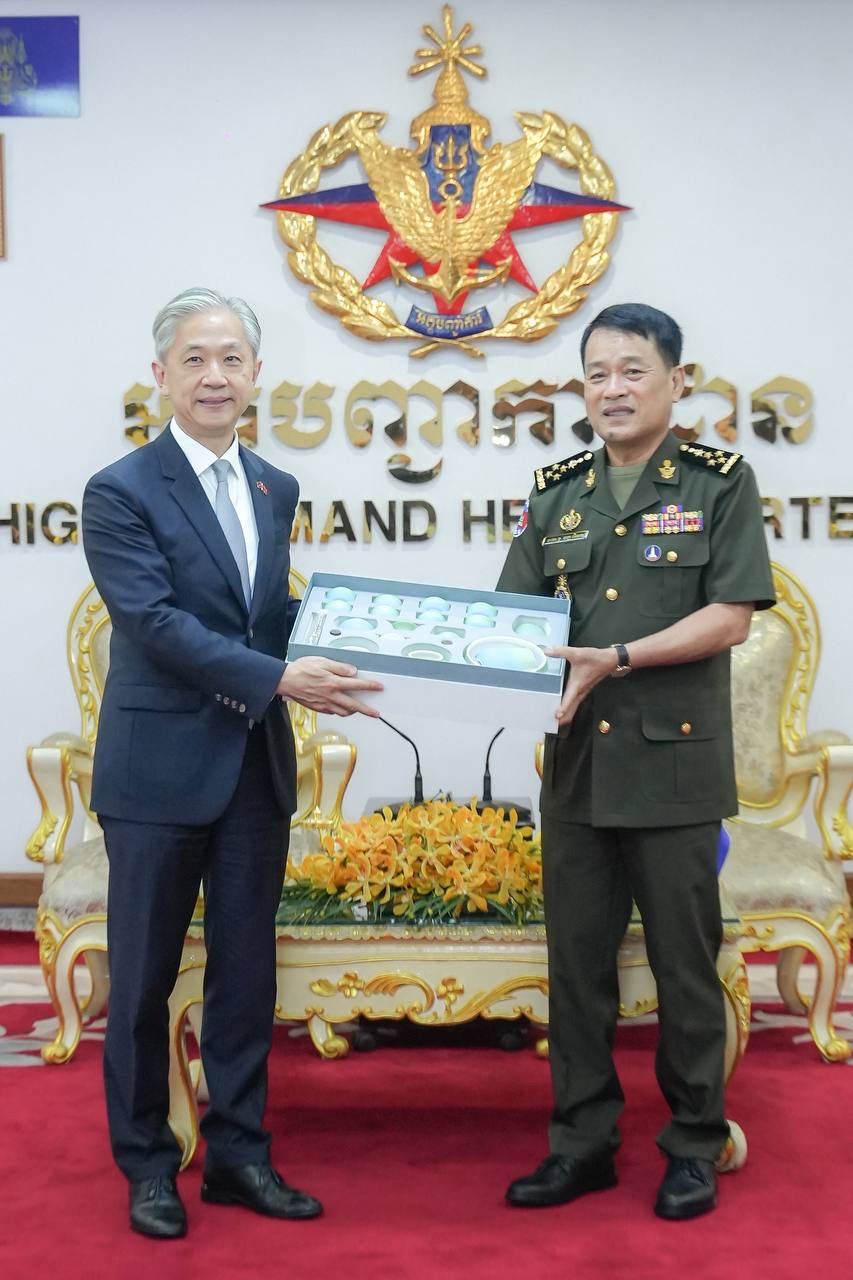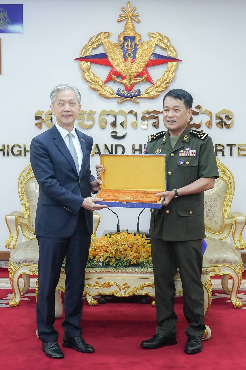 ឯកឧត្តម បានសំណូមពរដល់ឯកអគ្គរដ្ឋទូតបន្តជំរុញលើការផ្លាស់ប្តូរទស្សនកិច្ចគ្រប់កម្រិត ការបណ្តុះបណ្តាលធនធានមនុស្ស ជួយកសាងសាលាជំនាញកាំភ្លើងធំ និងជំនាញការពារអាកាសដល់កងទ័ពជើងគោកកម្ពុជា ព្រមទាំងការផ្លាស់ប្តូរព័ត៌មានចារកិច្ចទៅវិញទៅមកឱ្យកាន់តែធំទូលាយ និងទាន់ពេលវេលា។