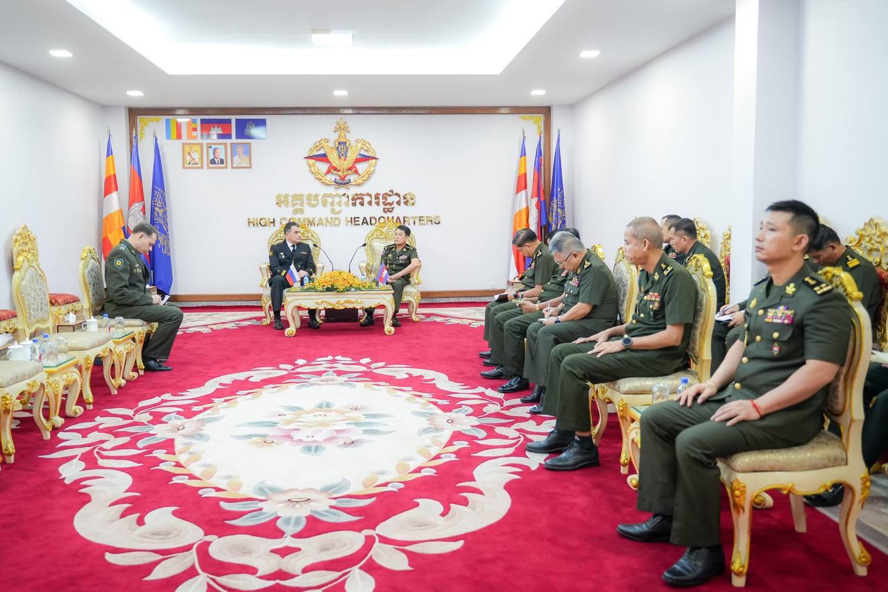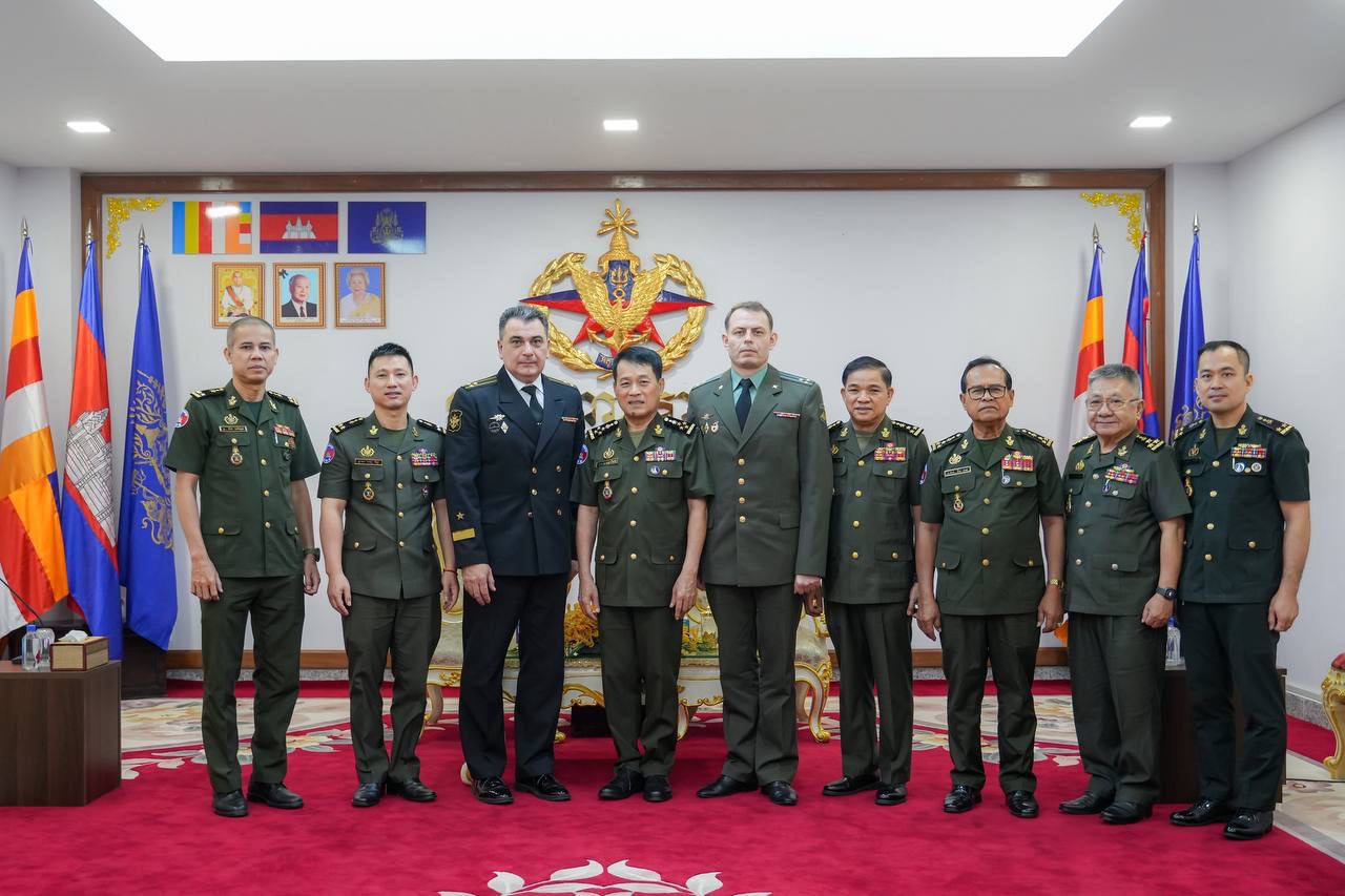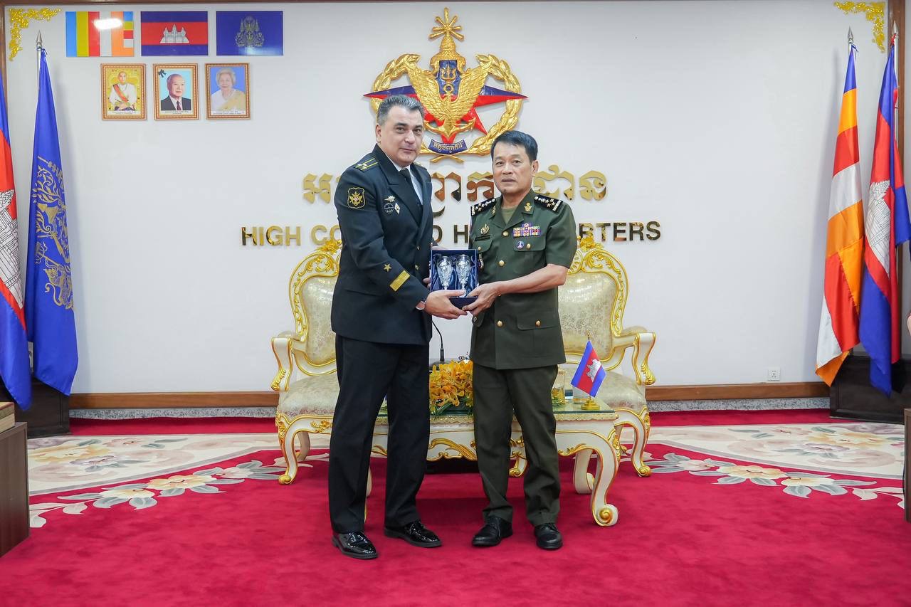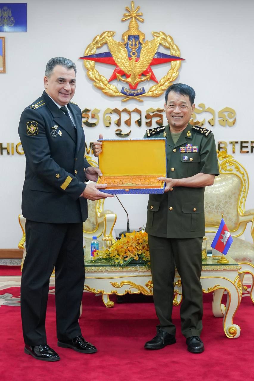 (ភ្នំពេញ)៖ ឯកឧត្តម នាយឧត្ដមសេនីយ៍ វង្ស ពិសេន អគ្គមេបញ្ជារការនៃកងយោធពលខេមរភូមិន្ទ បានអនុញ្ញាតឱ្យលោកវរនាវីឯក អីវ៉ាន់ ស្តាដឆេនកូ (Ivan STADCHENKO) នាយការិយាល័យអនុព័ន្ធយោធាសហព័ន្ធរុស្ស៊ីថ្មីប្រចាំកម្ពុជា ចូលជួបសម្តែងការគួរសម និងបង្ហាញមុខ នាព្រឹកថ្ងៃទី១៧ ខែតុលា ឆ្នាំ២០២៤ នៅអគ្គបញ្ជាការដ្ឋាន។