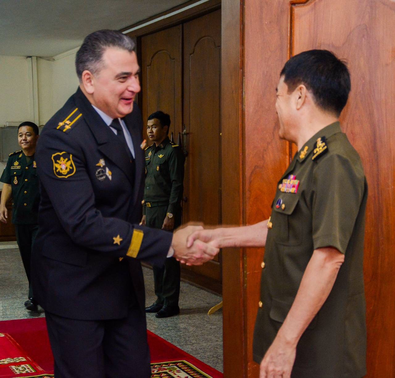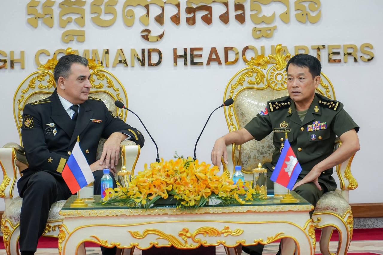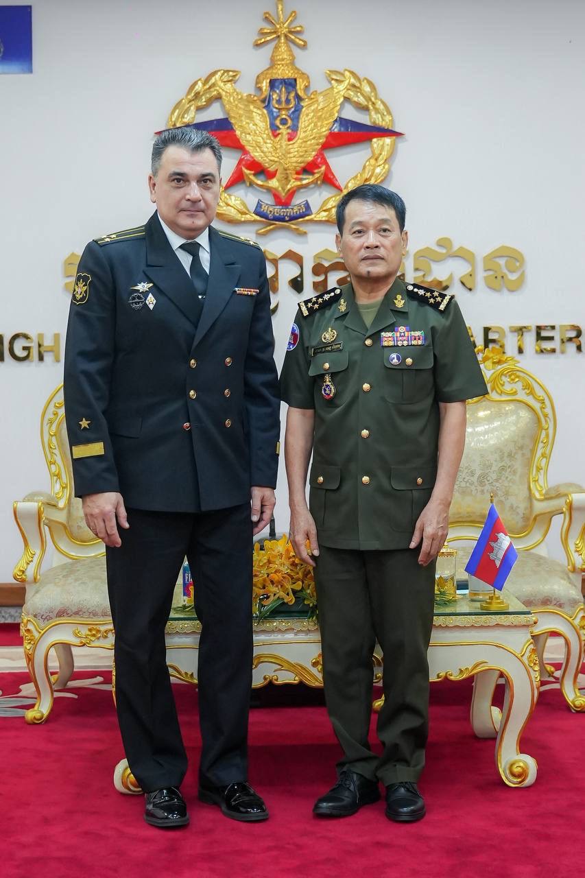(ភ្នំពេញ)៖ ឯកឧត្តម នាយឧត្ដមសេនីយ៍ វង្ស ពិសេន អគ្គមេបញ្ជារការនៃកងយោធពលខេមរភូមិន្ទ បានអនុញ្ញាតឱ្យលោកវរនាវីឯក អីវ៉ាន់ ស្តាដឆេនកូ (Ivan STADCHENKO) នាយការិយាល័យអនុព័ន្ធយោធាសហព័ន្ធរុស្ស៊ីថ្មីប្រចាំកម្ពុជា ចូលជួបសម្តែងការគួរសម និងបង្ហាញមុខ នាព្រឹកថ្ងៃទី១៧ ខែតុលា ឆ្នាំ២០២៤ នៅអគ្គបញ្ជាការដ្ឋាន។