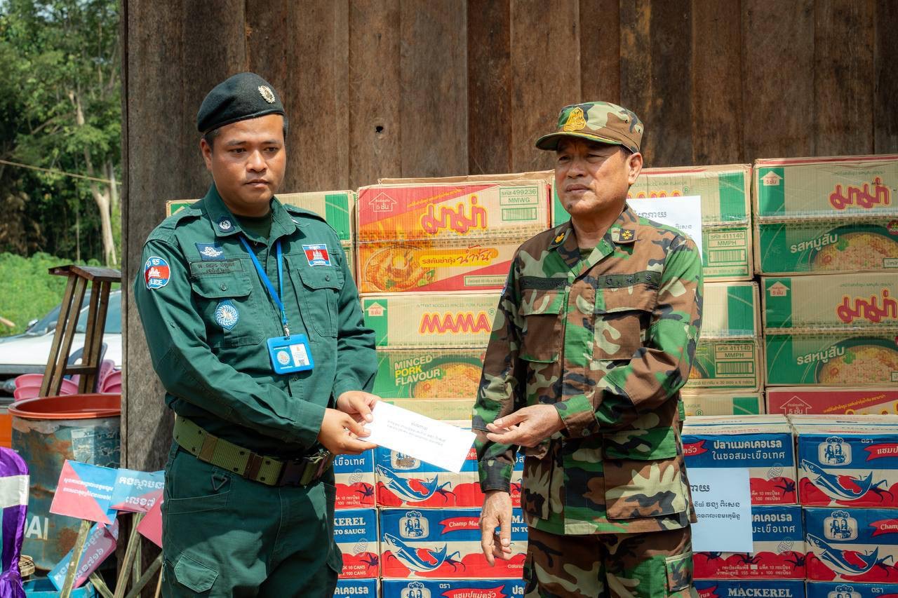 ឯកឧត្តម នាយឧត្តមសេនីយ៍ អគ្គមេបញ្ជាការ ក៏បាននាំយកអំណោយដ៏ថ្លៃថ្លារបស់ សម្ដេចមហាបវរធិបតី ហ៊ុន ម៉ាណែត នាយករដ្ឋមន្ត្រីនៃព្រះរាជាណាចក្រកម្ពុជា និងលោកជំទាវបណ្ឌិត ជាថវិកានិងគ្រឿងឧបភោគបរិភោគមួយចំនួនជូនដល់កម្លាំងវិស្វកម្ម អគ្គបញ្ជាការ និងកម្លាំងប្រដាប់អាវុធដែលកំពុងបំពេញបេសកកម្មនៅតាមបន្ទាត់ព្រំដែនផងដែរ៕
