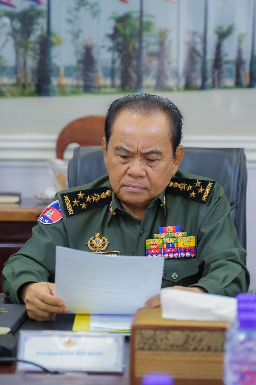 (ភ្នំពេញ)៖ នៅរសៀលថ្ងៃទី២៥ ខែតុលា ឆ្នាំ២០២៤ ឯកឧត្តម នាយឧត្ដមសេនីយ៍ វង្ស ពិសេន អគ្គមេបញ្ជាការ នៃកងយោធពលខេមរភូមិន្ទ បានដឹកនាំកិច្ចប្រជុំការអនុវត្តប្រសាសន៍ណែនាំរបស់សម្តេចមហាបវរធិបតី ហ៊ុន ម៉ាណែត នាយករដ្ឋមន្ត្រី ពាក់ព័ន្ធការដាក់យោធិនឲ្យចូលនិវត្តន៍ ដែលកិច្ចប្រជុំនេះបានប្រព្រឹត្តទៅនៅអគ្គបញ្ជាការដ្ឋាននៃកងយោធពលខេមរភូមិន្ទ។