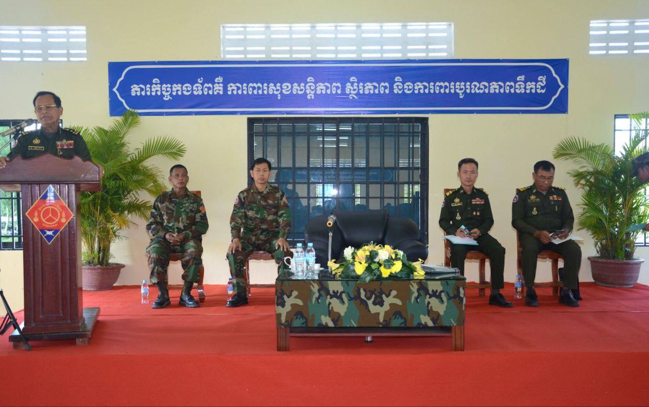 (ព្រៃវែង)៖ ឯកឧត្តម ឧត្តមសេនីយ៍ឯក ខឹម សន នាយរងសេនាធិការចម្រុះ នាយកទីចាត់ការឃោសនាព័ត៌មាន អគ្គបញ្ជាការ នៅព្រឹកថ្ងៃទី១១ ខែវិច្ឆិកា ឆ្នាំ២០២៤ បានអញ្ជើញចុះអប់រំចិត្តសាស្ត្រ និងផ្សព្វផ្សាយសភាពការណ៍ជាតិ-អន្តរជាតិថ្មីៗប្រចាំឆមាសទី២ ឆ្នាំ២០២៤ ដល់សិក្ខាកាមវគ្គហ្វឹកហ្វឺនបណ្ដុះបណ្ដាលជំនាញបើកបរ និងយន្តការី ជំនាន់ទី២២ នៅសាលាបើកបរ និងយន្តការី (ភ្នំឈើកាច់) ចំណុះទីចាត់ការចលនូប្បត្តម្ភ អគ្គបញ្ជាការ៕
