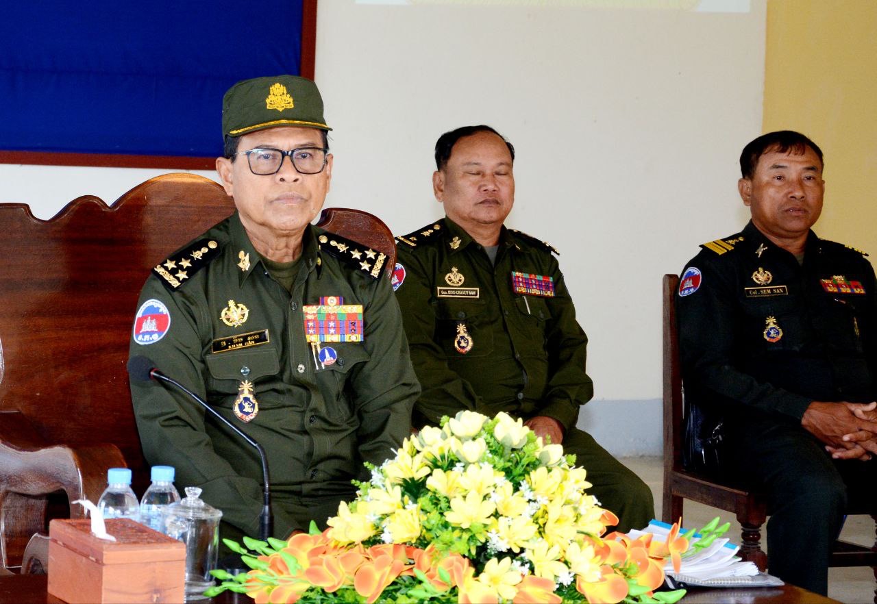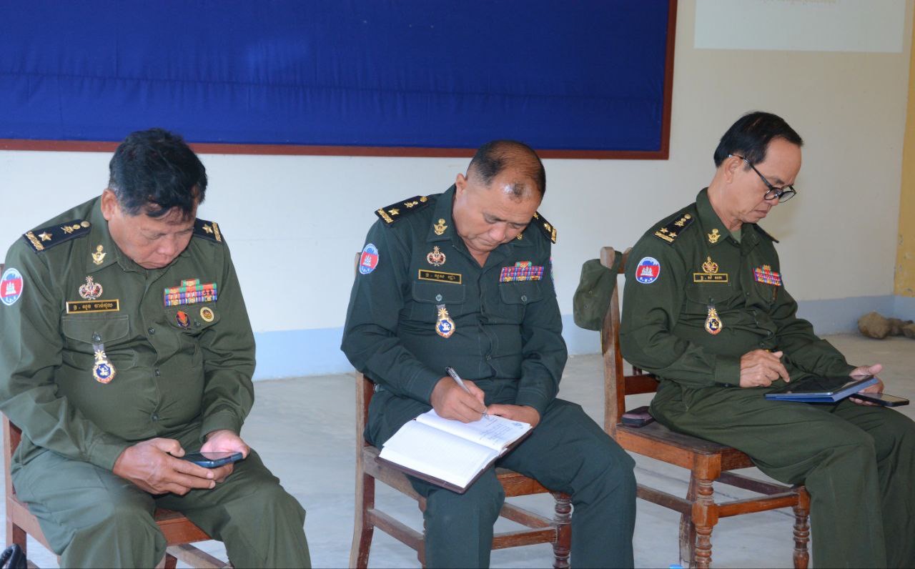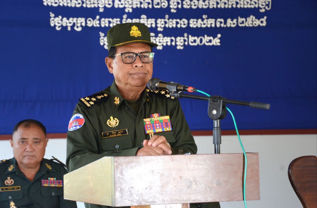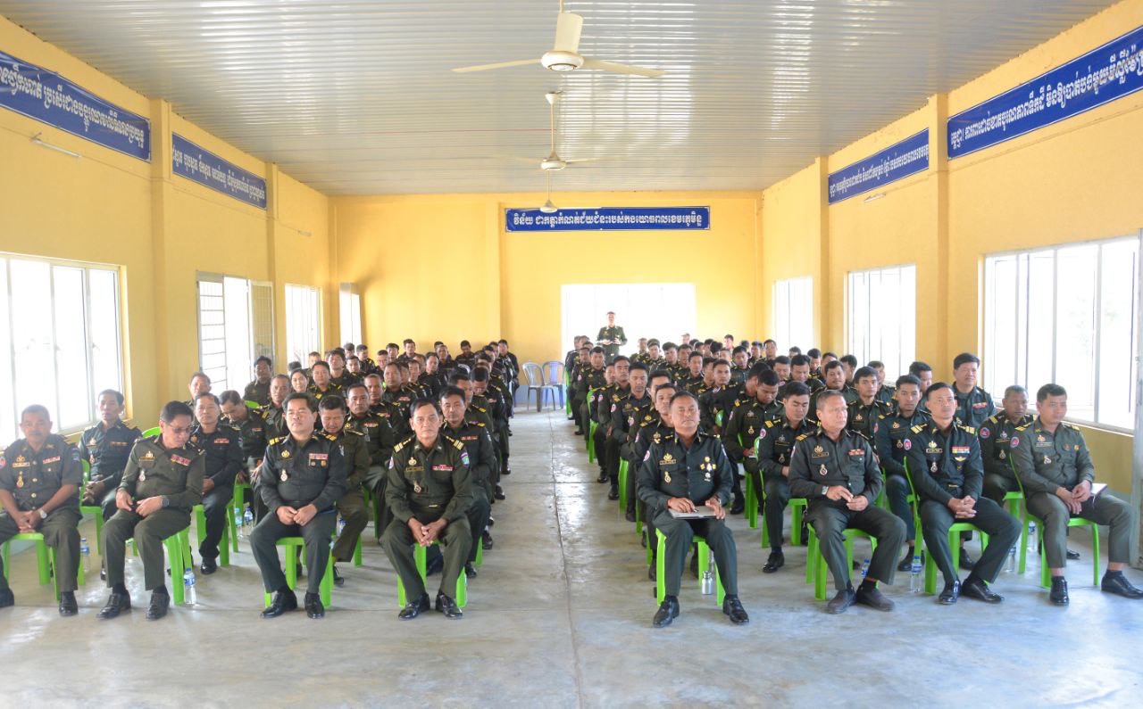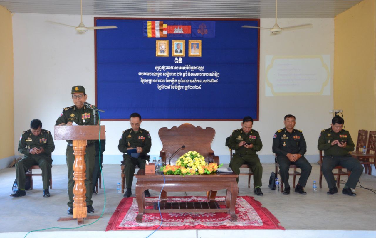 (កំពង់ស្ពឺ) ឯកឧត្តម ឧត្តមសេនីយ៍ឯក ខឹម សន នាយរងសេនាធិការចម្រុះ នាយកទីចាត់ការឃោសនាព័ត៌មាន អគ្គបញ្ជាការ នៅព្រឹកថ្ងៃទី២៩ ខែវិច្ឆិកា ឆ្នាំ២០២៤ បានអញ្ជើញចុះផ្សព្វផ្សាយការងារអប់រំចិត្តសាស្ត្រ និងសភាពការណ៍ថ្មីៗ ដល់នាយ នាយទាហាន នាយទាហានរង និងពលទាហាន ចំនួន ១៣៥នាក់ នៅបញ្ជាការដ្ឋានរថក្រោះ អគ្គបញ្ជាការ។