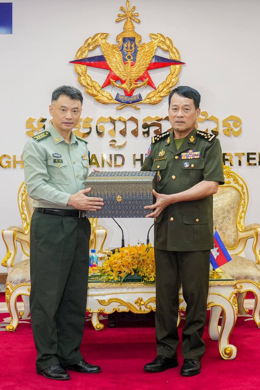 លើវិស័យយោធា ឯកឧត្តម អគ្គមេបញ្ជាការ បានថ្លែងអំណរគុណដល់កងទ័ពរំដោះប្រជាជនចិន ដែលបានផ្តល់កិច្ចសហការលើច្រើនវិស័យ ក្នុងនោះរួមមាន៖ ការជួយបណ្ដុះបណ្ដាលធនធានមនុស្ស ការផ្លាស់ប្ដូរទស្សនកិច្ច ការផ្ដល់សម្ភារបរិក្ខារ ការកសាងហេដ្ឋារចនាសម្ព័ន្ធ ការធ្វើសមយុទ្ធយោធារួមគ្នា និងការធ្វើទំនើបកម្មមូលដ្ឋានសមុទ្ររាមជាដើម។
