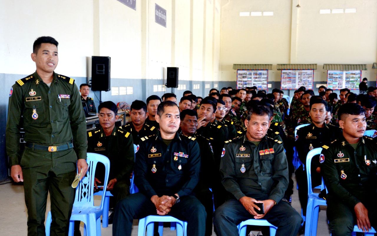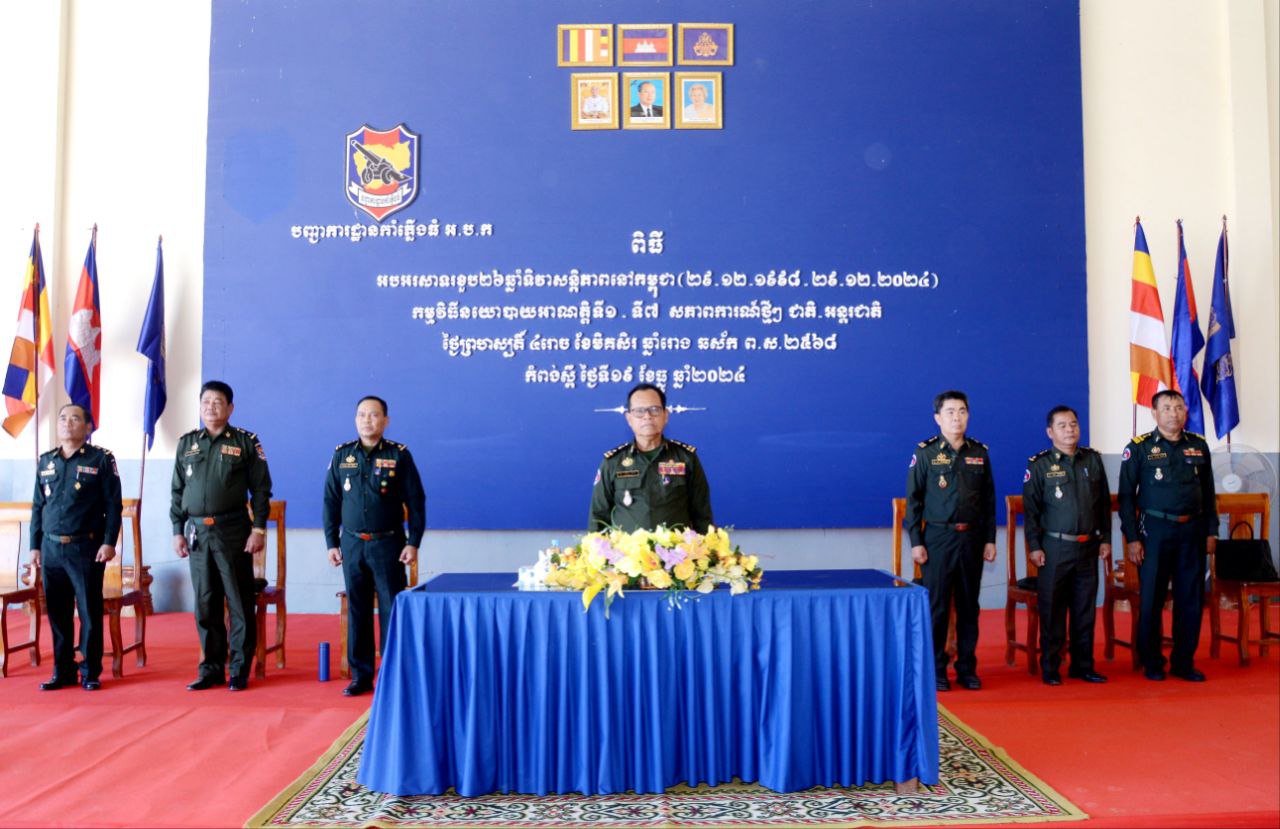 (កំពង់ស្ពឺ)៖ ឯកឧត្តម ឧត្តមសេនីយ៍ឯក ខឹម សន នាយរងសេនាធិការចម្រុះ នាយកទីចាត់ការឃោសនាព័ត៌មាន អគ្គបញ្ជាការ រសៀលថ្ងៃទី១៩ ខែ ធ្នូ ឆ្នាំ២០២៤ បានសម្ដែងនូវអំណរសាទរ ខួបលើកទី២៦ នៃ ”ទិវាសន្តិភាពនៅកម្ពុជា” ( ២៩ ធ្នូ ១៩៩៨-២៩ ធ្នូ ២០២៤) ក្នុងឱកាសចុះផ្សព្វផ្សាយការងារអប់រំចិត្តសាស្ត្រ និងសភាពការណ៍ថ្មីៗ ជាតិ-អន្តរជាតិ ដល់នាយទាហាន នាយទាហានរង និងពលទាហាន ចំណុះបញ្ជាការរដ្ឋានកាំភ្លើងធំ អគ្គបញ្ជាការដ្ឋាន៕