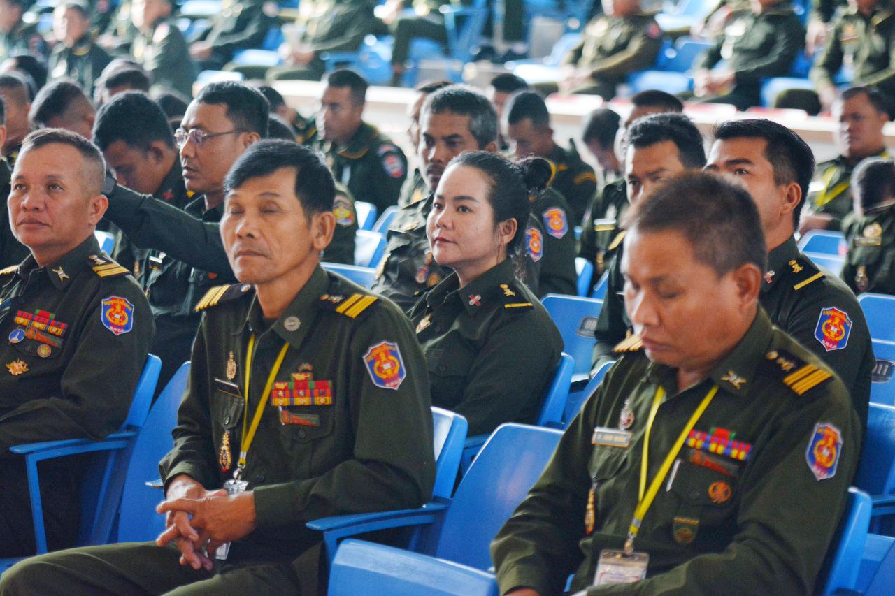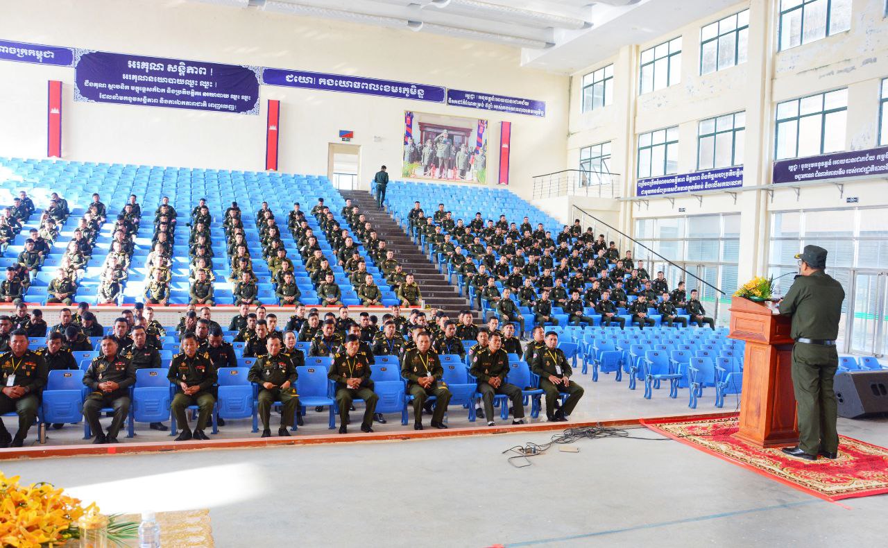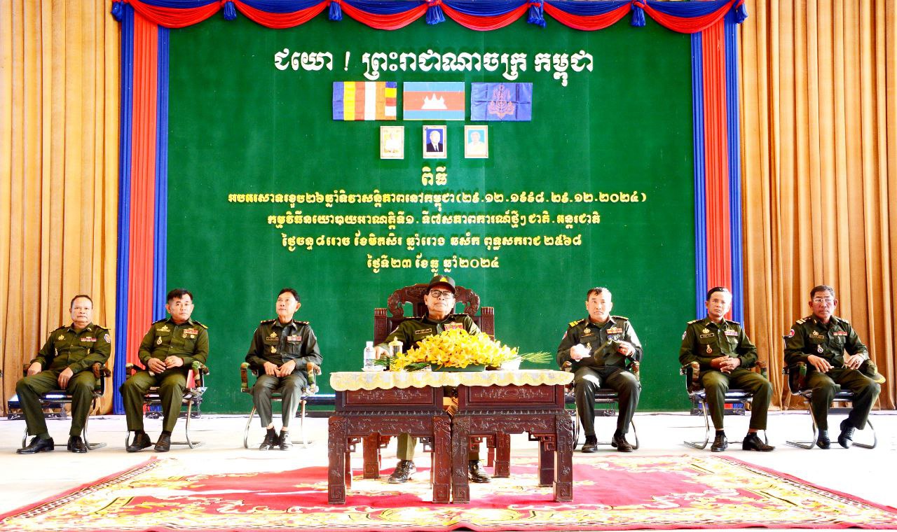 (កំពង់ស្ពឺ)៖ ឯកឧត្តម ឧត្តមសេនីយ៍ឯក ខឹម សន នាយរងសេនាធិការចម្រុះ នាយកទីចាត់ការឃោសនាព័ត៌មាន អគ្គបញ្ជាការ ព្រឹកថ្ងៃទី ២៣ ខែ ធ្នូ ឆ្នាំ២០២៤ បានសម្ដែងនូវអំណរសាទរ ខួបលើកទី២៦ នៃ ”ទិវាសន្តិភាពនៅកម្ពុជា” ( ២៩ ធ្នូ ១៩៩៨-២៩ ធ្នូ ២០២៤) ក្នុងឱកាសចុះផ្សព្វផ្សាយការងារអប់រំចិត្តសាស្ត្រ និងសភាពការណ៍ថ្មីៗ ជាតិ-អន្តរជាតិ ដល់នាយទាហាន នាយទាហានរង និង ពលទាហាន វិទ្យាស្ថាននាយទាហានចម្រុះ។