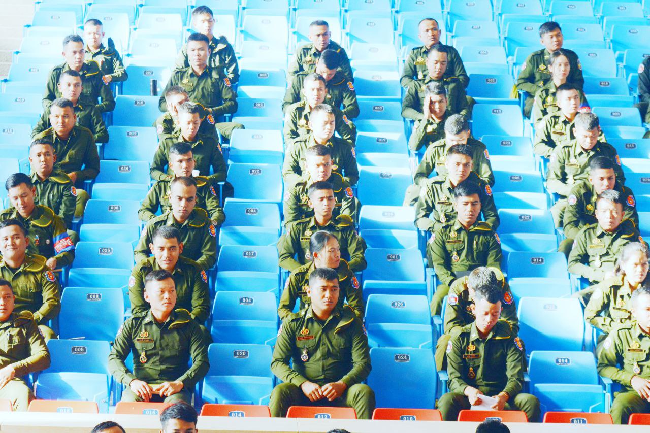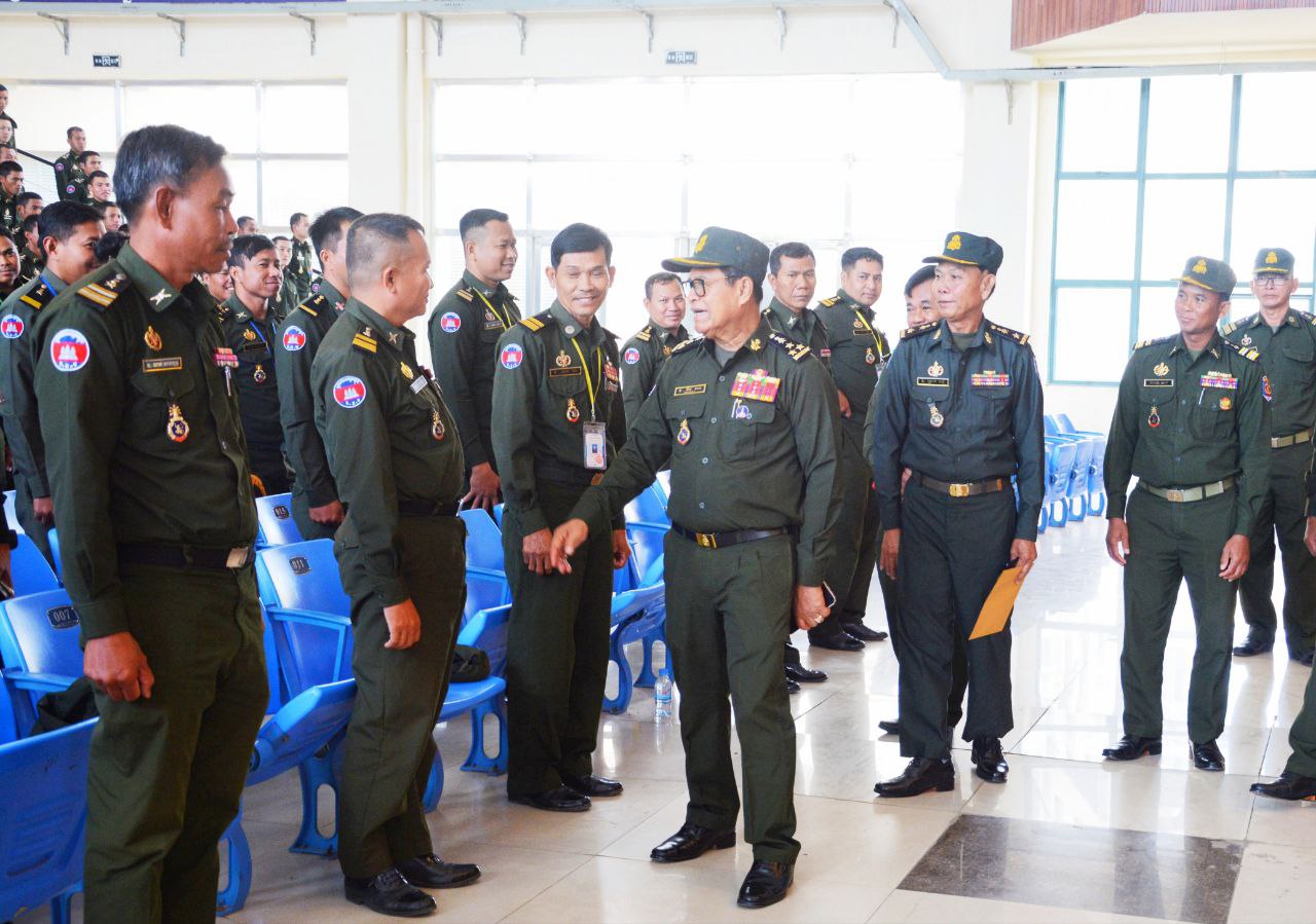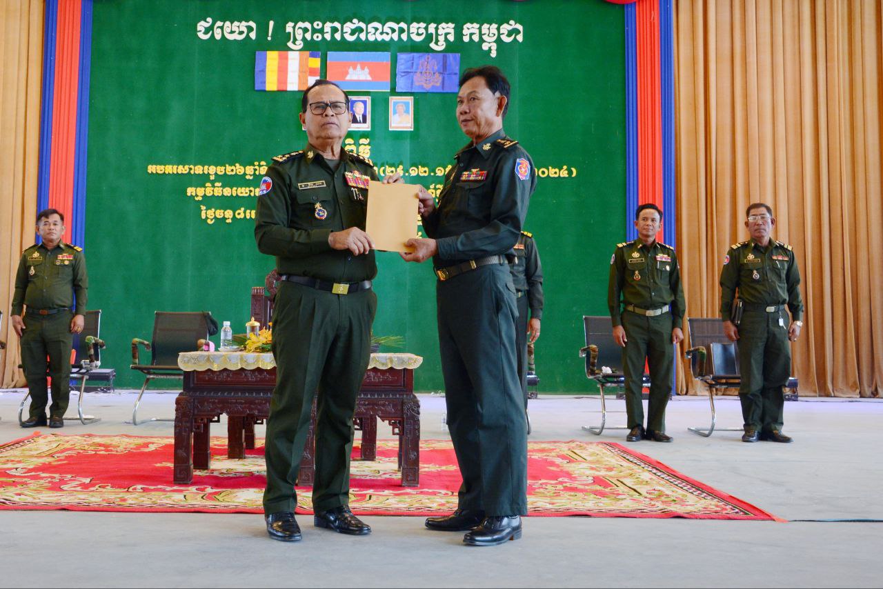(កំពង់ស្ពឺ)៖ ឯកឧត្តម ឧត្តមសេនីយ៍ឯក ខឹម សន នាយរងសេនាធិការចម្រុះ នាយកទីចាត់ការឃោសនាព័ត៌មាន អគ្គបញ្ជាការ ព្រឹកថ្ងៃទី ២៣ ខែ ធ្នូ ឆ្នាំ២០២៤ បានសម្ដែងនូវអំណរសាទរ ខួបលើកទី២៦ នៃ ”ទិវាសន្តិភាពនៅកម្ពុជា” ( ២៩ ធ្នូ ១៩៩៨-២៩ ធ្នូ ២០២៤) ក្នុងឱកាសចុះផ្សព្វផ្សាយការងារអប់រំចិត្តសាស្ត្រ និងសភាពការណ៍ថ្មីៗ ជាតិ-អន្តរជាតិ ដល់នាយទាហាន នាយទាហានរង និង ពលទាហាន វិទ្យាស្ថាននាយទាហានចម្រុះ។