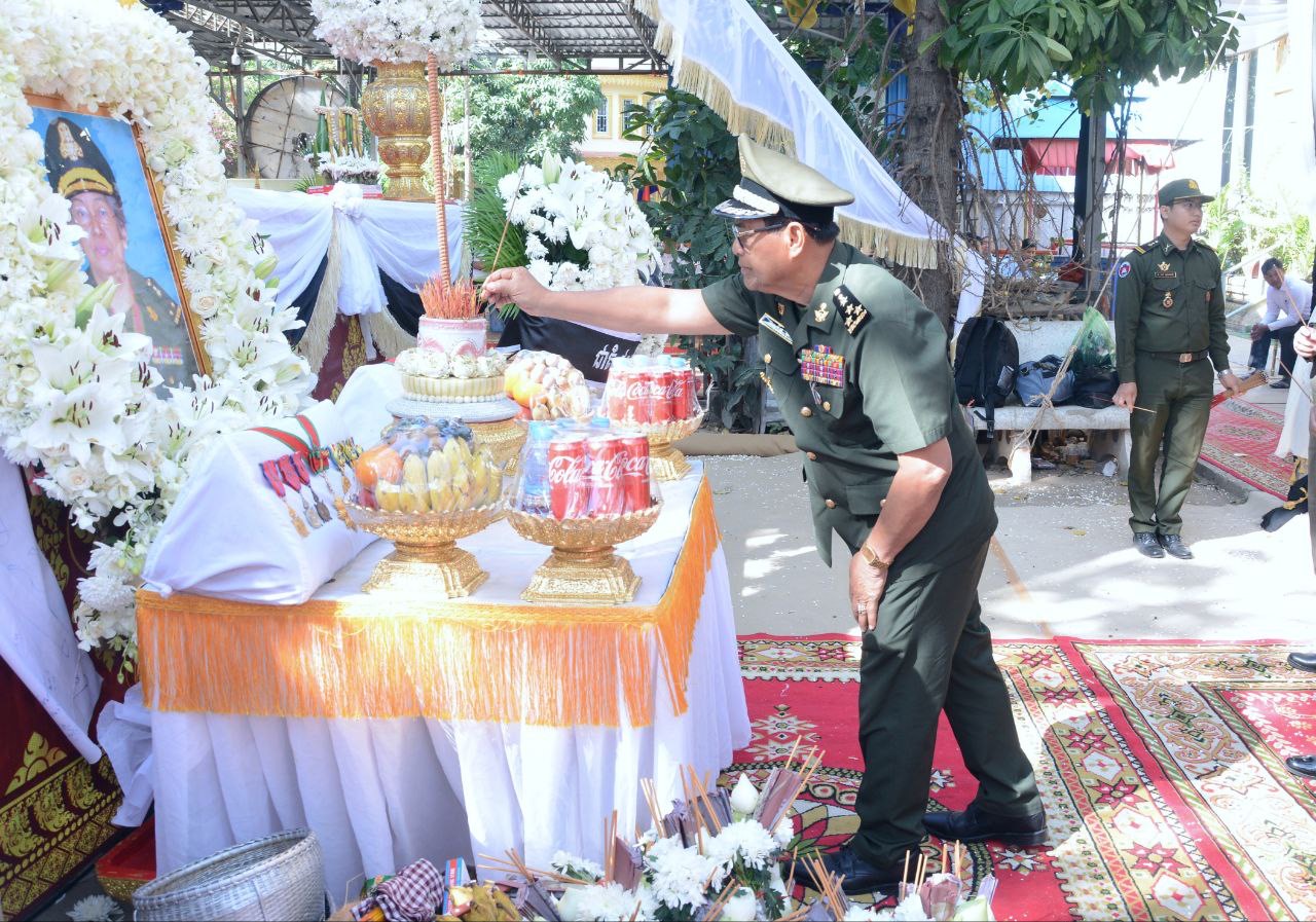 (ភ្នំពេញ)៖ ឯកឧត្ដម ឧត្ដមសេនីយ៍ឯក ខឹម សន នាយរងសេនាធិការចម្រុះ នាយកទីចាត់ការឃោសនាព័ត៌មាន អគ្គបញ្ជាការ តំណាងដ៏ខ្ពង់ខ្ពស់ ឯកឧត្តម នាយឧត្តមសេនីយ៍ វង្ស ពិសេន អគ្គមេបញ្ជាការនៃកងយោធពលខេមរភូមិន្ទ បានអញ្ជើញប្រទានភ្លើងបូជាសពលោកជំទាវ ឧត្តមសេនីយ៍ទោ ហ៊ុន សារិន ញ៉ឹកហួន ដែលបានទទួលមរណភាពនាថ្ងៃទី២៩ ខែធ្នូ ឆ្នាំ២០២៤ វេលាម៉ោង ១១:០៩យប់ ក្នុងជន្មាយុ ៧៤ឆ្នាំ ដោយរោគគាពាធ។