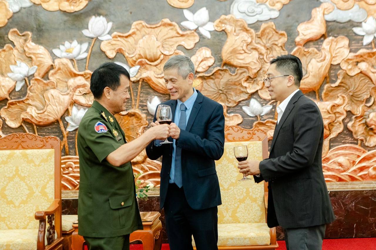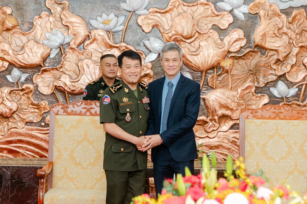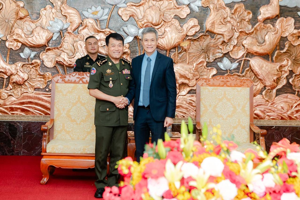 (ភ្នំពេញ)៖ នៅព្រឹកថ្ងៃទី២២ ខែមករា ឆ្នាំ២០២៥ ឯកឧត្តម នាយឧត្តមសេនីយ៍ វង្ស ពិសេន អគ្គមេបញ្ជាការ នៃកងយោធពលខេមរភូមិន្ទ បានដឹកនាំប្រតិភូជូនពរឆ្នាំថ្មីប្រពៃណីជាតិវៀតណាម ឆ្នាំ២០២៥ នៅស្ថានទូតសាធារណរដ្ឋសង្គមនិយមវៀតណាម ប្រចាំព្រះរាជាណាចក្រកម្ពុជា។