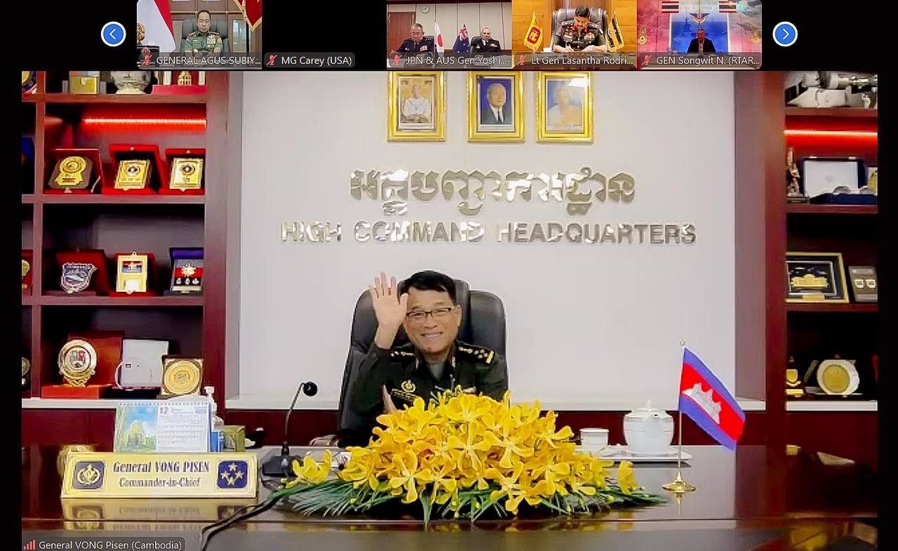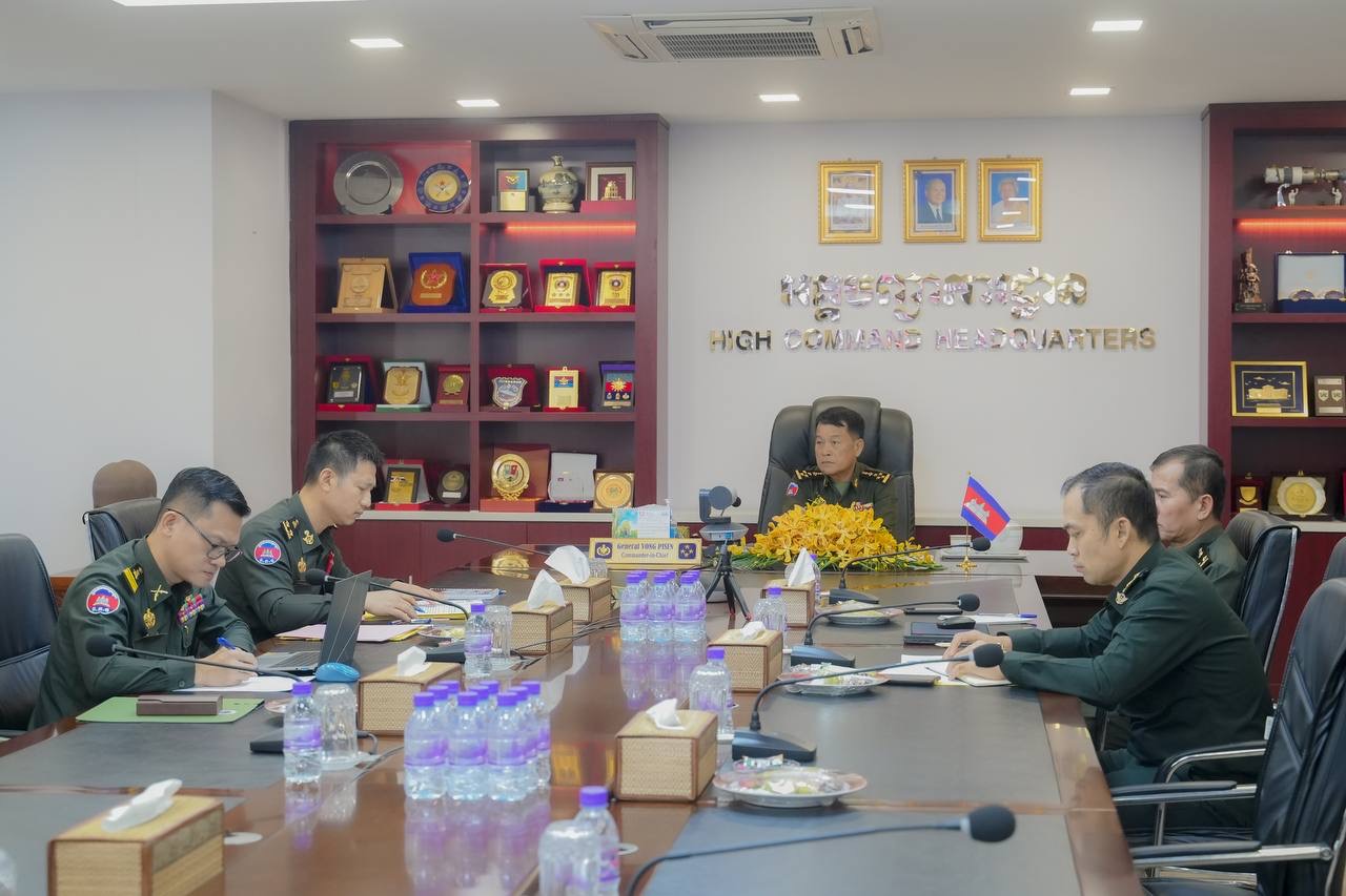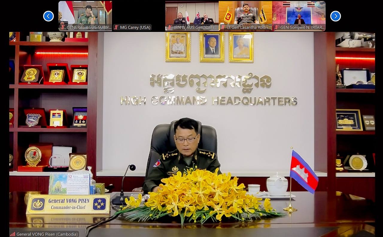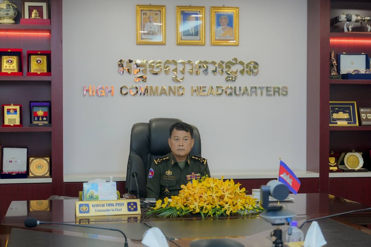 (ភ្នំពេញ)៖ នាយឧត្តមសេនីយ៍ វង្ស ពិសេន អគ្គមេបញ្ជាការ នៃកងយោធពលខេមរភូមិន្ទ អញ្ជើញចូលរួមកិច្ចប្រជុំអគ្គមេបញ្ជាការកងទ័ពឥណ្ឌូ–ប៉ាស៊ីហ្វិក (CHODs) នាថ្ងៃទី០៥ ខែកុម្ភៈ ឆ្នាំ២០២៥ វេលាម៉ោង ១០ព្រឹក (ម៉ោងនៅកម្ពុជា) តាមប្រព័ន្ធវីដេអូ។