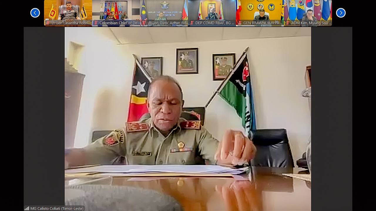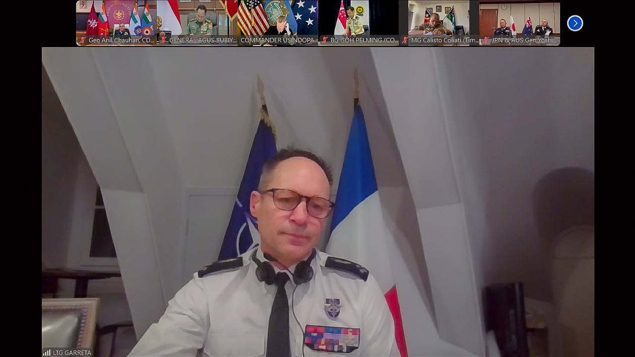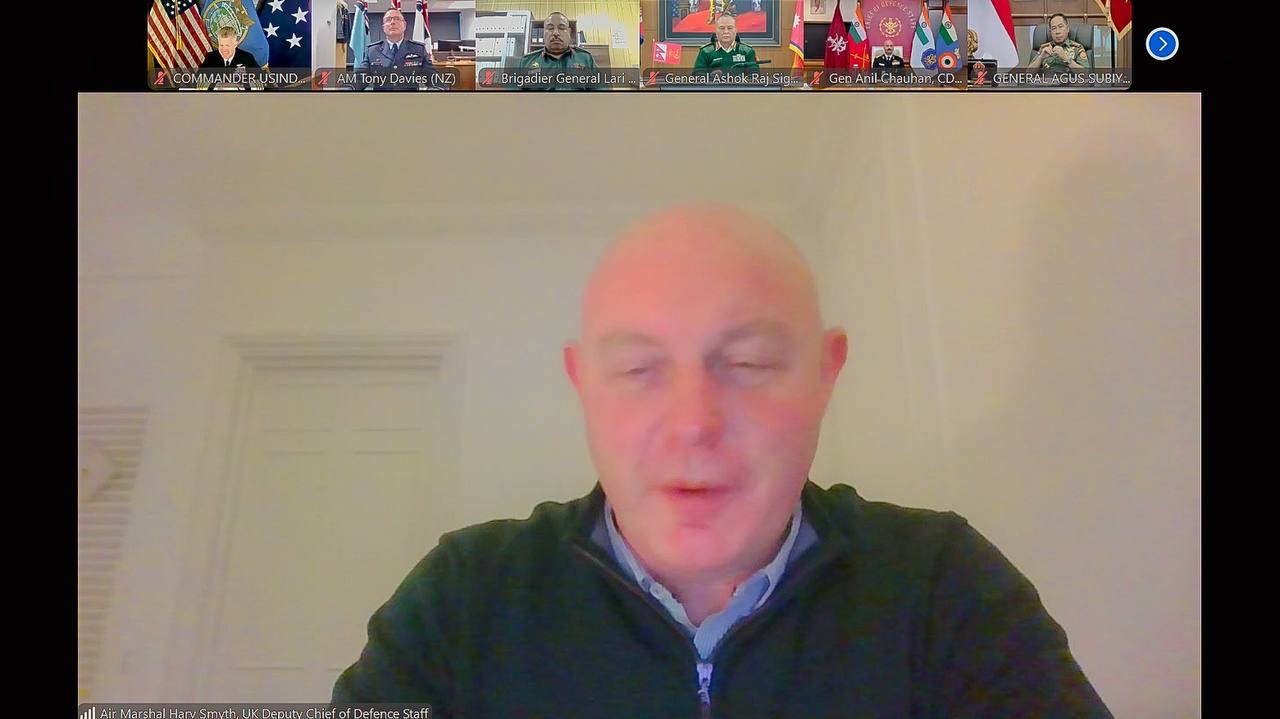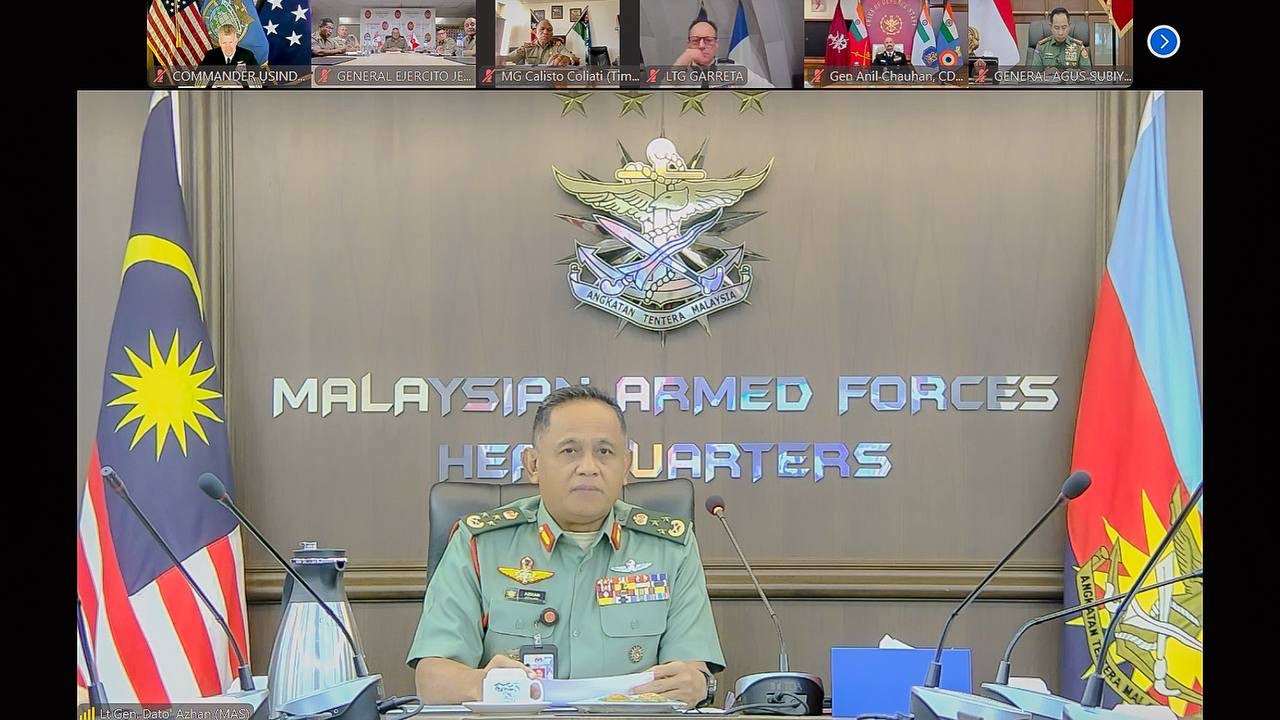 (ភ្នំពេញ)៖ នាយឧត្តមសេនីយ៍ វង្ស ពិសេន អគ្គមេបញ្ជាការ នៃកងយោធពលខេមរភូមិន្ទ អញ្ជើញចូលរួមកិច្ចប្រជុំអគ្គមេបញ្ជាការកងទ័ពឥណ្ឌូ–ប៉ាស៊ីហ្វិក (CHODs) នាថ្ងៃទី០៥ ខែកុម្ភៈ ឆ្នាំ២០២៥ វេលាម៉ោង ១០ព្រឹក (ម៉ោងនៅកម្ពុជា) តាមប្រព័ន្ធវីដេអូ។