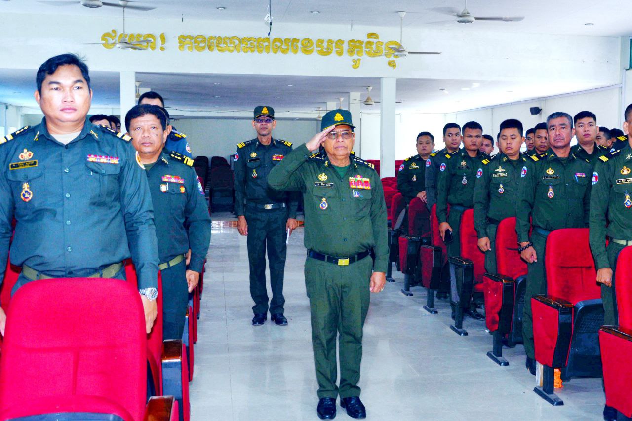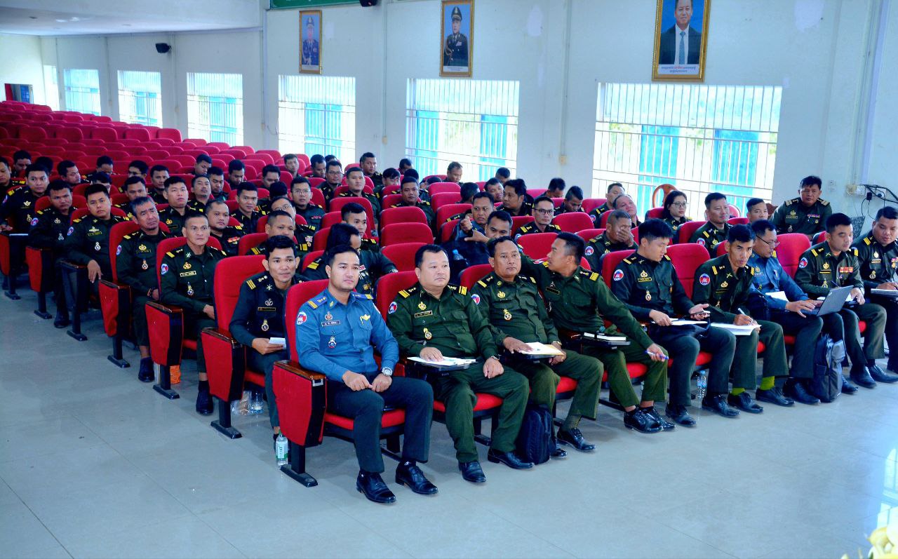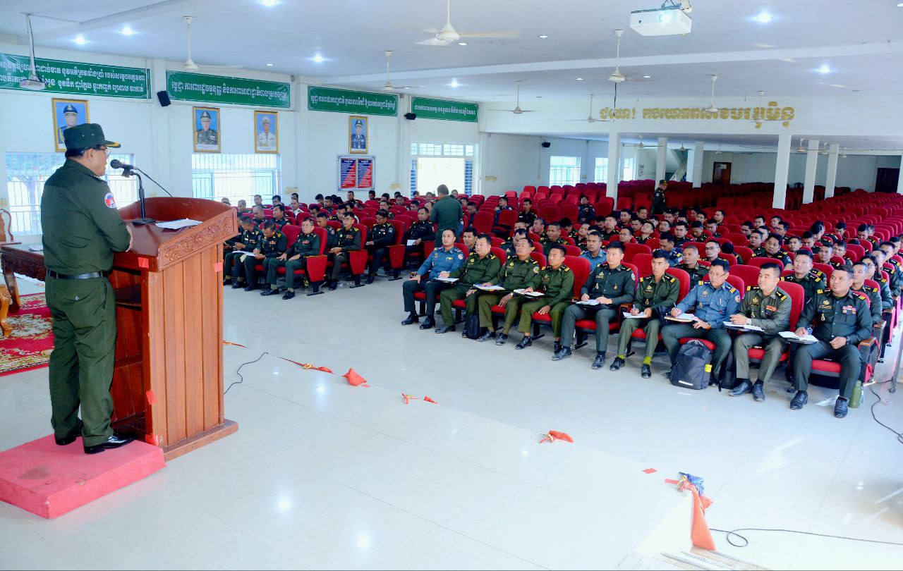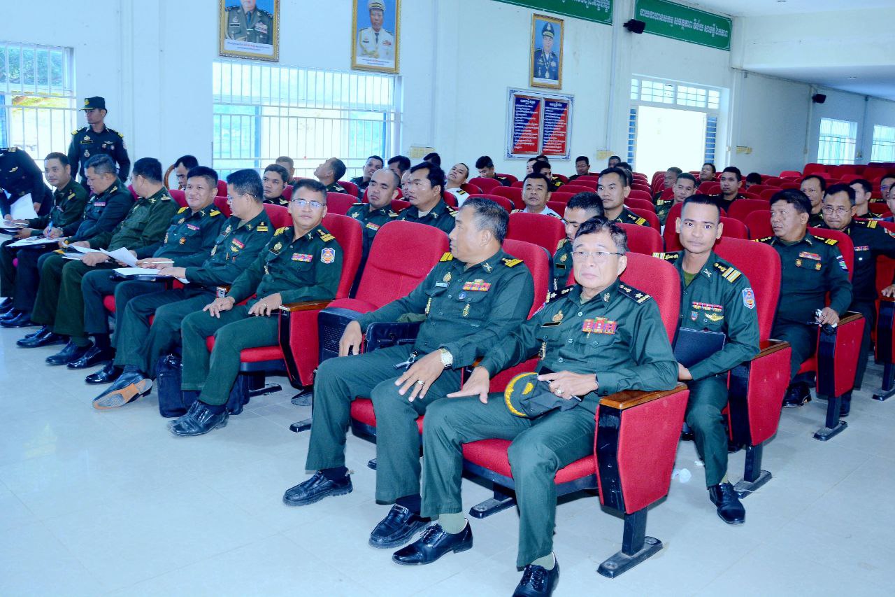 (កំពង់ស្ពឺ)៖ ឯកឧត្តម ឧត្តមសេនីយ៍ឯក ខឹម សន នាយរងសេនាធិការចម្រុះ នាយកទីចាត់ការឃោសនាព័ត៌មាន អគ្គបញ្ជាការ នាព្រឹក ៧ ខែកុម្ភៈ ឆ្នាំ ២០២៥ បានអញ្ជើញចុះផ្សព្វផ្សាយអប់រំចិត្តសាស្ត្រ កម្មវិធីនយោបាយរបស់រាជរដ្ឋាភិបាល និងសមិទ្ធិផលនានារបស់រាជរដ្ឋាភិបាល ព្រមទាំងសភាពការណ៍ថ្មីៗ ជាតិ-អន្តរជាតិ ដល់សិក្ខាកាម វគ្គវិក្រិត្យការ និងវគ្គបញ្ជាការសេនាធិការ ជំនាន់ទី២៣ នៅវិទ្យាស្ថានបញ្ជាការសេនាធិការ ដែលមានទីតាំងស្ថិតនៅភូមិពោធិ៍ ឃុំដំណាក់រាំង ស្រុកសាមគ្គីមុនីជ័យ ខេត្តកំពង់ស្ពឺ៕