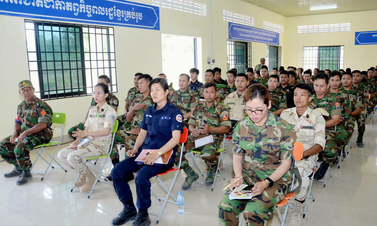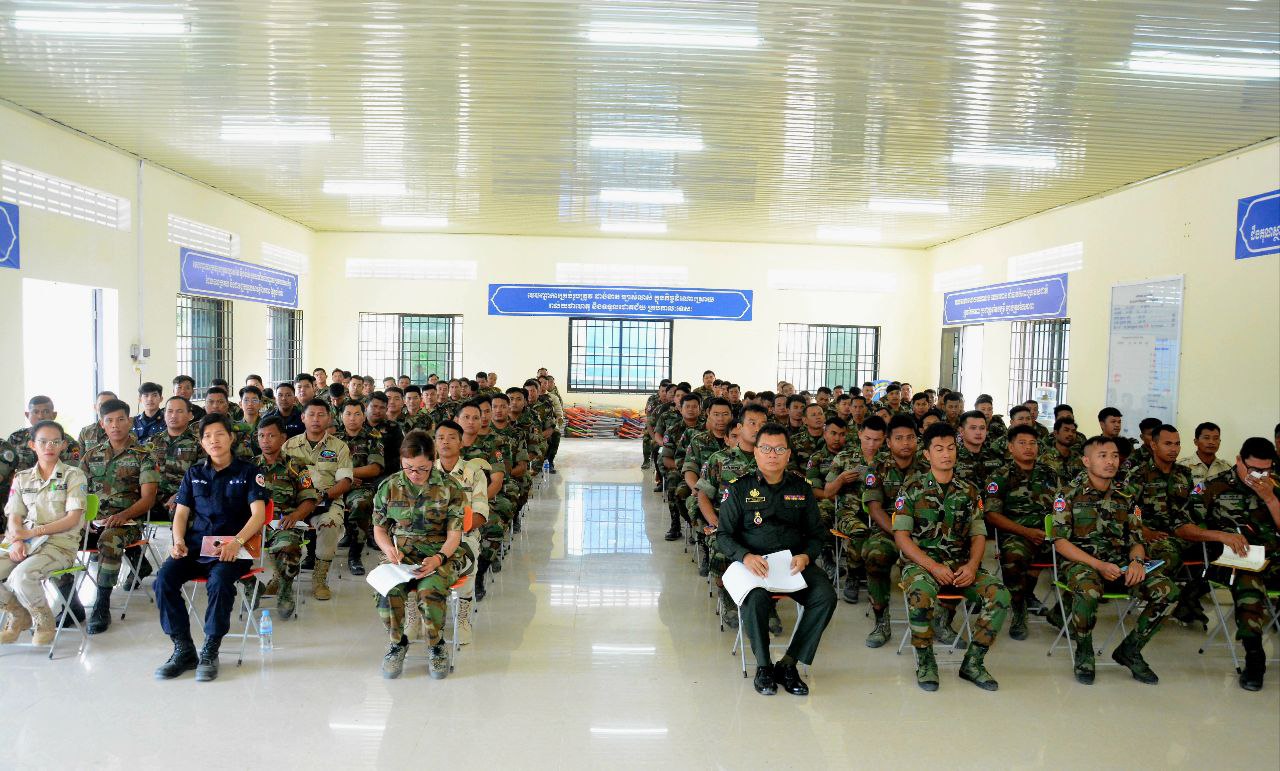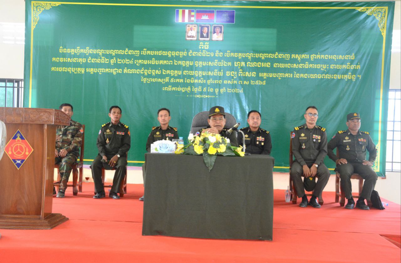 ឧត្តមសេនីយ៍ឯក ខឹម សន ចុះអប់រំផ្សព្វផ្សាយសភាពការណ៍ថ្មីៗ ព្រមទាំងកម្មវិធីនយោបាយ និងសមិទ្ធផលនានារបស់រាជរដ្ឋាភិបាលដល់សិក្ខាកាមសាលាបើកបរ និងយន្តការី (ភ្នំឈើកាច់)