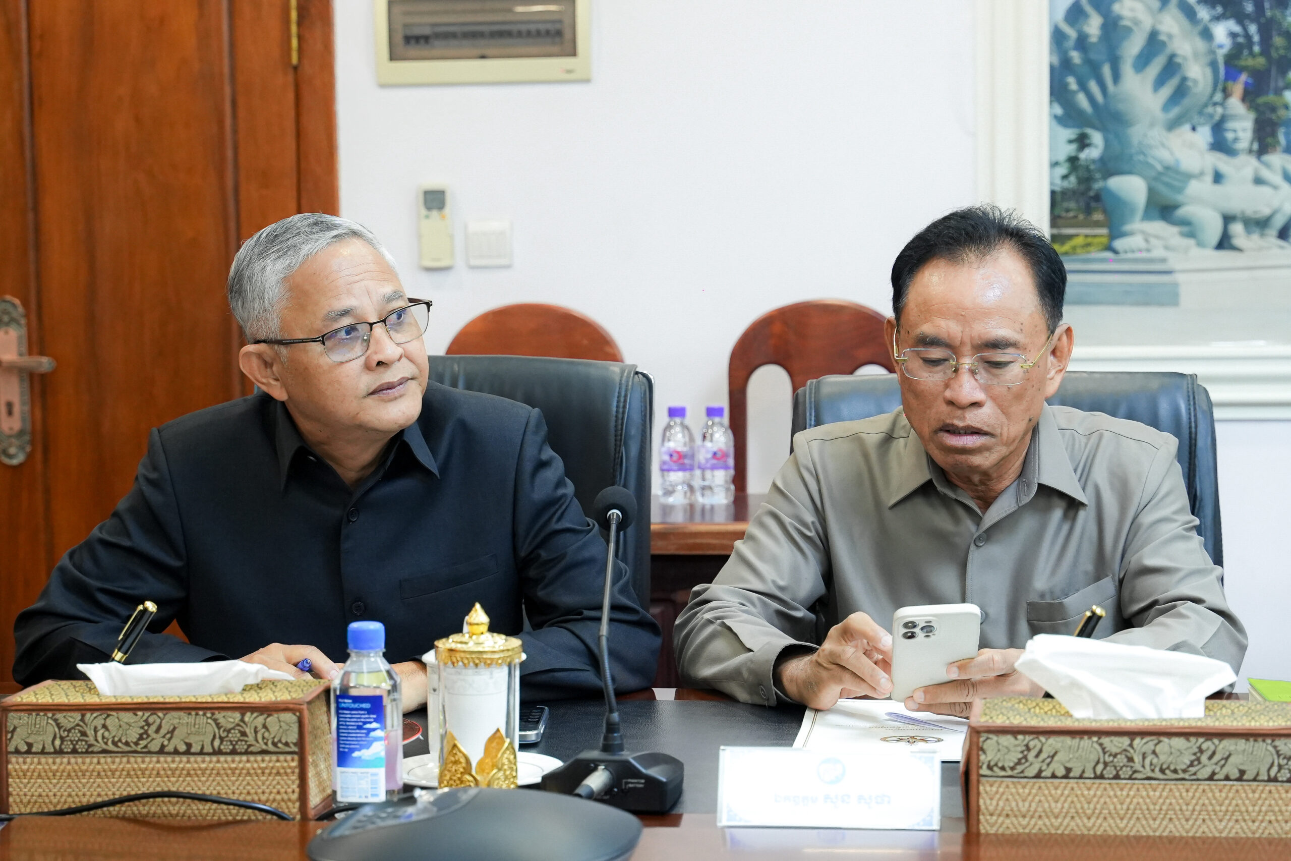 (ភ្នំពេញ)៖ ឯកឧត្តម ឧបនាយករដ្ឋមន្ត្រី សាយ សំអាល់ ឧបនាយករដ្ឋមន្ត្រី រដ្ឋមន្ត្រីក្រសួងរៀបចំដែនដីនគរូបនីយកម្ម និងសំណង់ បានអញ្ជើញជួបពិភាក្សាជាមួយ ឯកឧត្តម នាយឧត្តមសេនីយ៍ វង្ស ពិសេន អគ្គមេបញ្ជាការនៃកងយោធពលខេមរភូមិន្ទ ពាក់ព័ន្ធការជំរុញក្នុងការចុះបញ្ជីអចលនទ្រព្យរបស់កងយោធពលខេមរភូមិន្ទ និងការយកចិត្តទុកដាក់គិតគូរដល់ជីវភាព ការហូបចុករបស់កងយោធពលខេមរភូមិន្ទ។