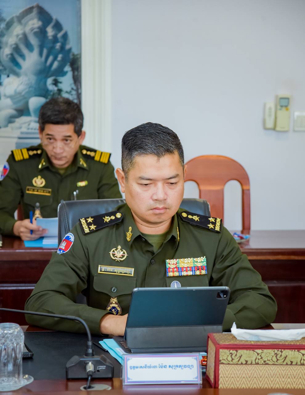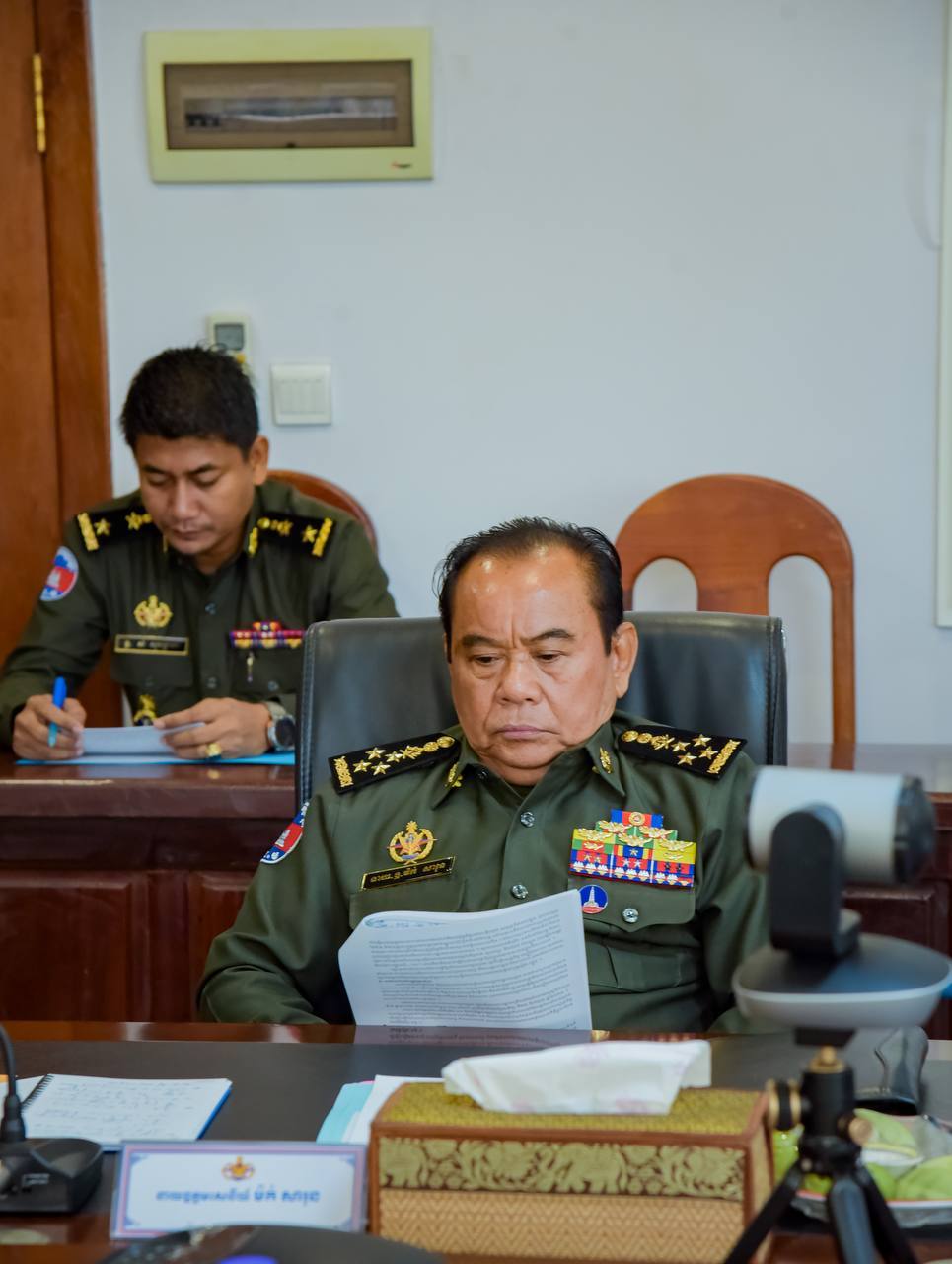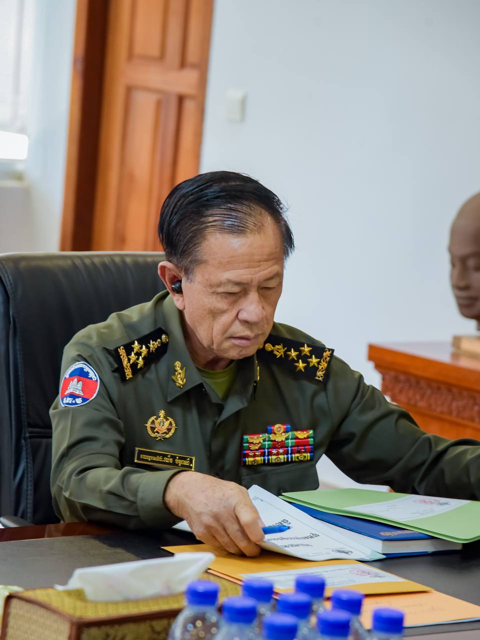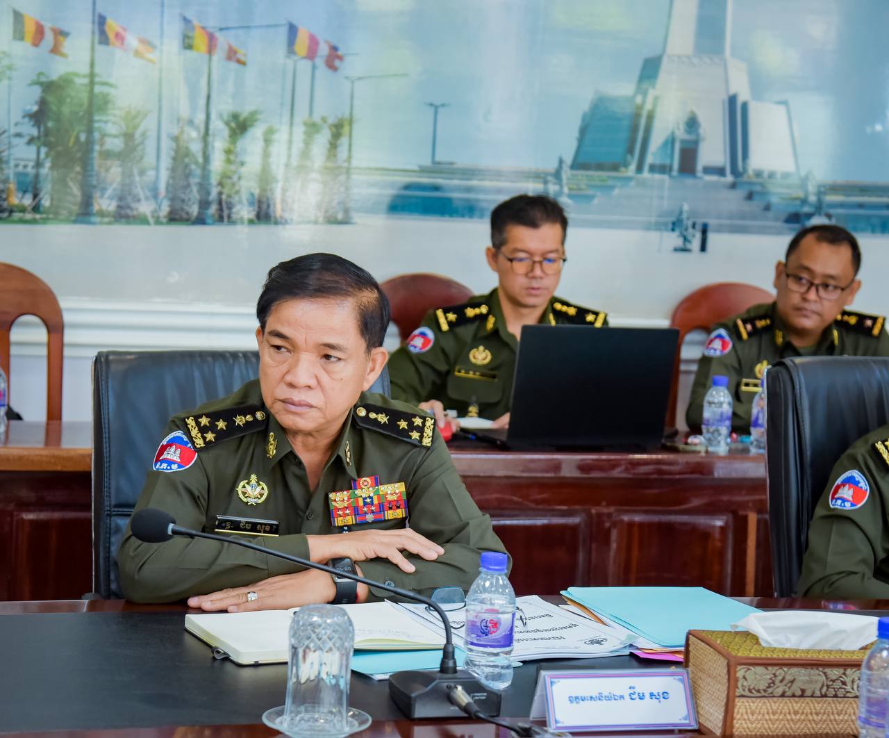 ឯកឧត្ដម នាយឧត្តមសេនីយ៍ វង្ស ពិសេន អគ្គមេបញ្ជាការនៃកងយោធពលខេមរភូមិន្ទ បានអញ្ជើញជាអធិបតីដឹកនាំកិច្ចប្រជុំត្រួតពិនិត្យការងារផ្ទៃក្នុងរបស់អគ្គបញ្ជាការដ្ឋាន។ កិច្ចប្រជុំនេះបានប្រព្រឹត្តទៅ នាព្រឹកថ្ងៃទី២៣ ខែមិថុនា ឆ្នាំ២០២៣ នៅសាលប្រជុំអគ្គបញ្ជាការដ្ឋាននៃកងយោធពលខេមរភូមិន្ទ៕