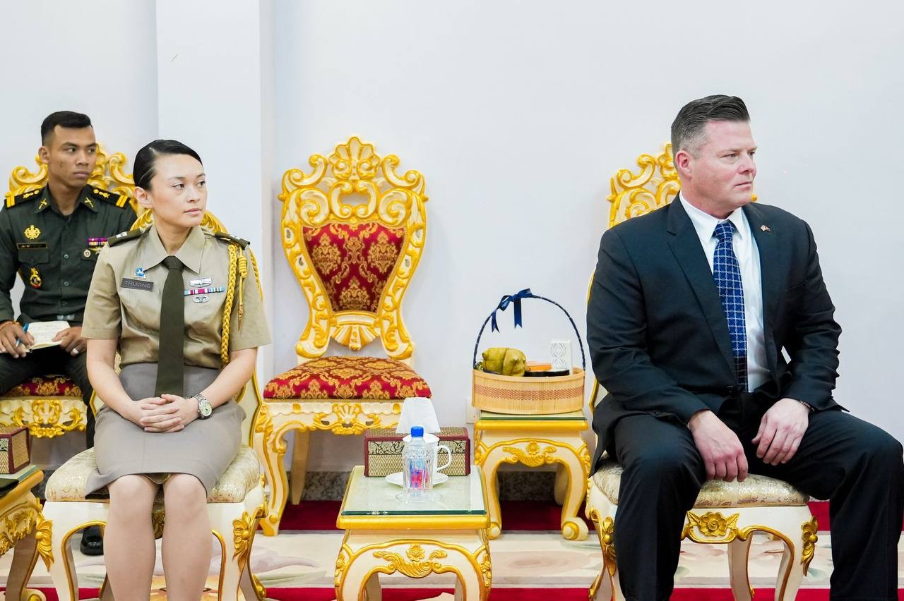 (ភ្នំពេញ)៖ លោកវរសេនីយ៍ទោ Kyle Saltzman នាយការិយាល័យអនុព័ន្ធយោធាសហរដ្ឋអាមេរិកប្រចាំកម្ពុជា និងសហការី នៅព្រឹកថ្ងៃទី២៥ មីនា ឆ្នាំ២០២៥ បានចូលជួបសម្តែងការគួរសម និងជូនពរឆ្នាំថ្មី ជូនឯកឧត្តម នាយឧត្តមសេនីយ៍ វង្ស ពិសេន អគ្គមេបញ្ជាការនៃកងយោធពលខេមរភូមិន្ទ ។