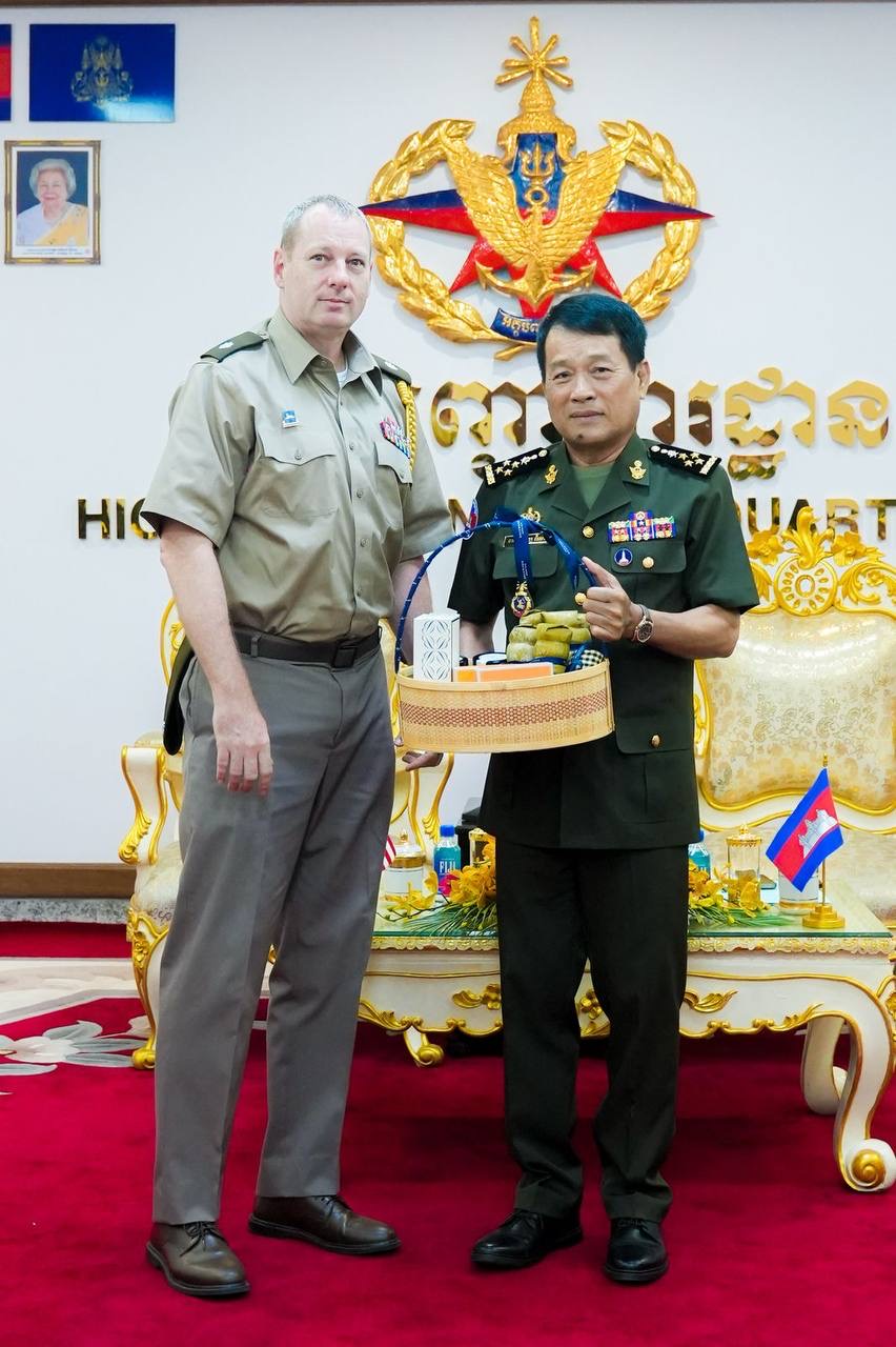លោកវរសេនីយ៍ទោ បានថ្លែងអំណរគុណឯកឧត្តមអគ្គមេបញ្ជាការក្នុងការគាំទ្រដល់អនុព័ន្ធយោធអាមេរិក ដែលកំពុងធ្វើការដើម្បីពង្រឹងទំនាក់ទំនងប្រទេសទាំងពីរឲ្យប្រសើរឡើងវិញ ហើយកិច្ចការនេះស្តែងឡើងតាមរយៈការទទួលស្វាគមន៍ដល់ដំណើរទស្សនកិច្ចនៅកម្ពុជារបស់មេបញ្ជាការឥណ្ឌូប៉ាស៊ីហ្វិក និងមេបញ្ជាការកងទ័ពជើងគោកសហរដ្ឋអាមេរិកប្រចាំតំបន់ប៉ាស៊ីហ្វិក កាលពីពេលថ្មីៗនេះ។