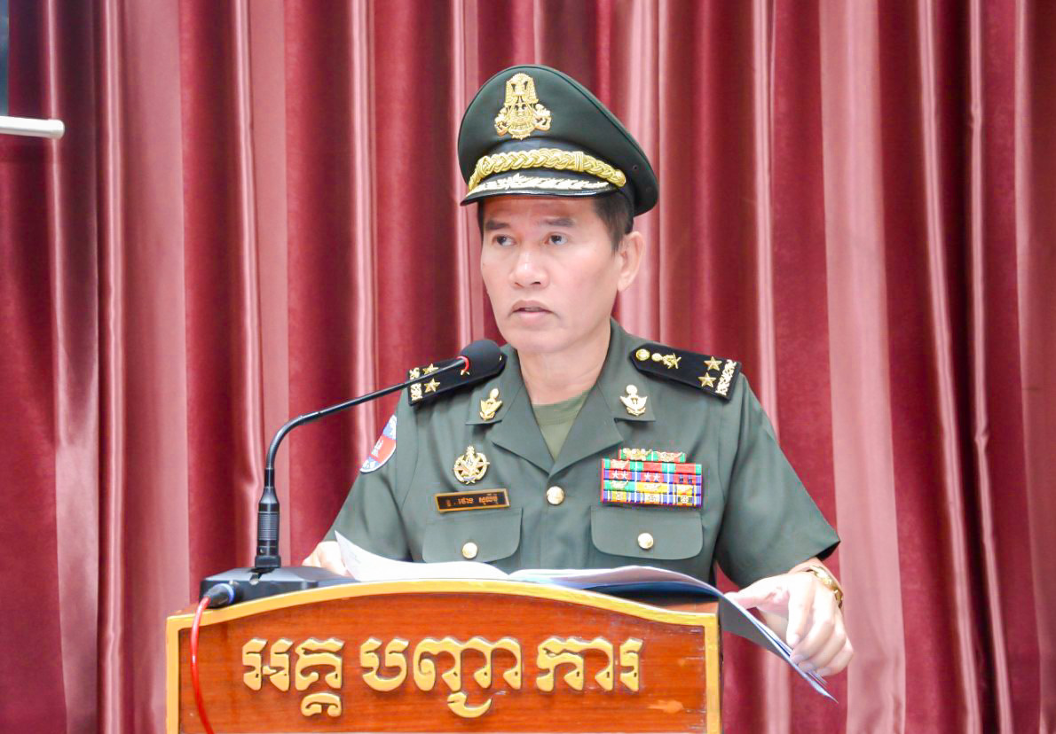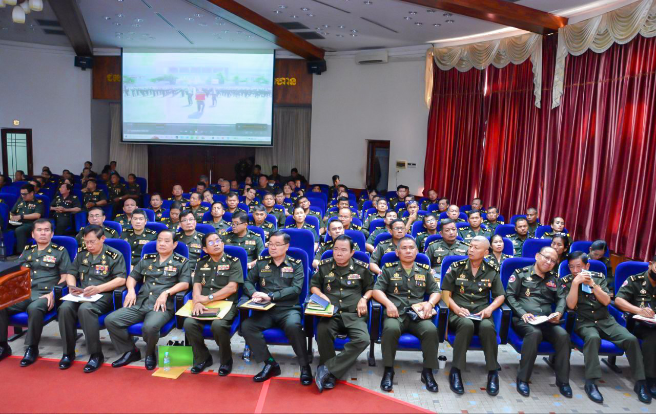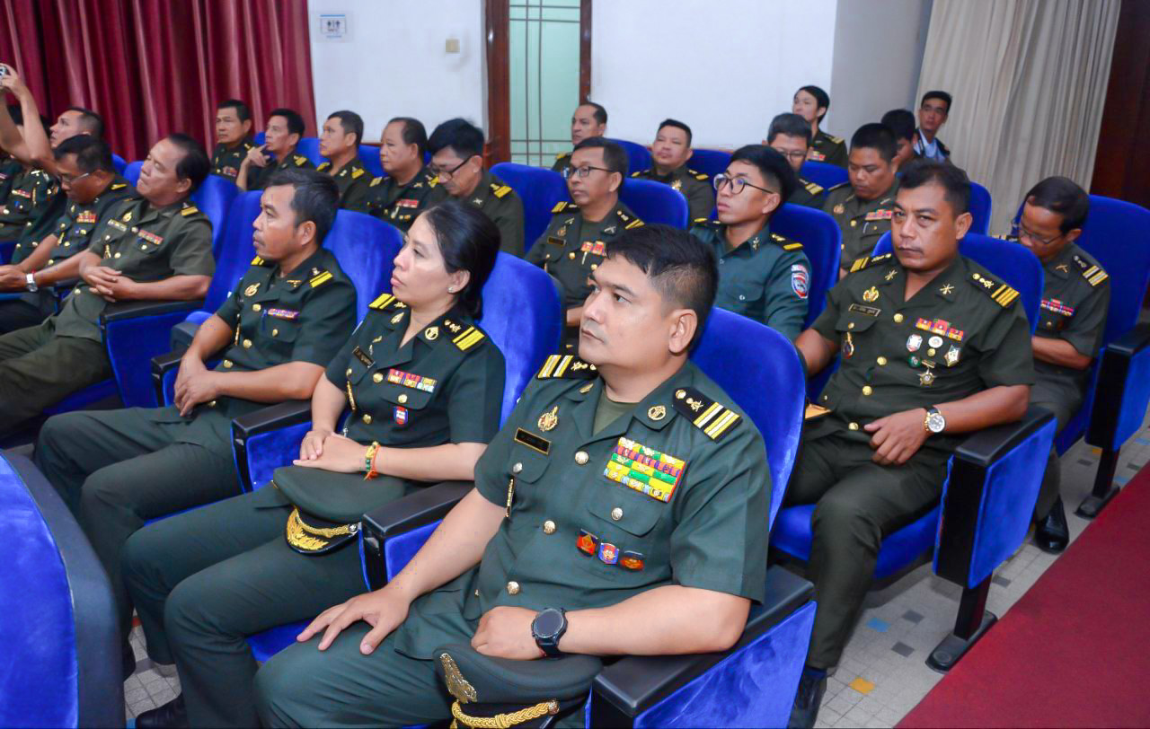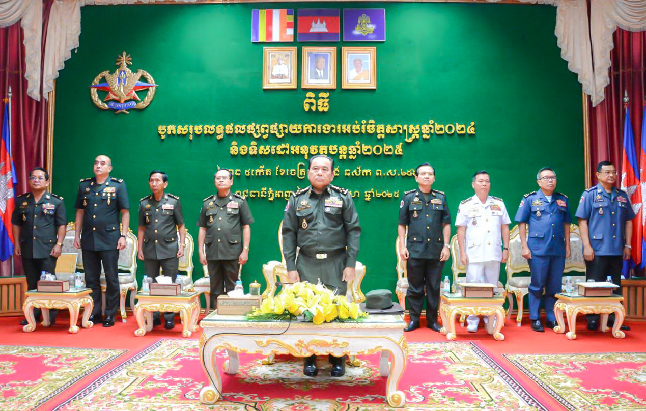 (ភ្នំពេញ)៖ នាយឧត្តមសេនីយ៍ ម៉ក់ សារុន អគ្គមេបញ្ជាការរងនៃកងយោធពលខេមរភូមិន្ទ តំណាងដ៏ខ្ពង់ខ្ពស់នាយឧត្តមសេនីយ៍ វង្យ ពិសេន អគ្គមេបញ្ជាការ បានអញ្ជើញជាអធិបតីភាពក្នុងពិធីបូកសរុបលទ្ធផលផ្សព្វផ្សាយការងារអប់រំចិត្តសាស្ត្រឆ្នាំ២០២៤ និងទិសដៅអនុវត្តបន្តឆ្នាំ២០២៥ របស់ទីចាត់ការឃោសនា-ព័ត៌មាន កាលពីព្រឹកថ្ងៃទី២ ខែមេសា ឆ្នាំ២០២៥ នៅអគ្គបញ្ជាការដ្ឋាន។