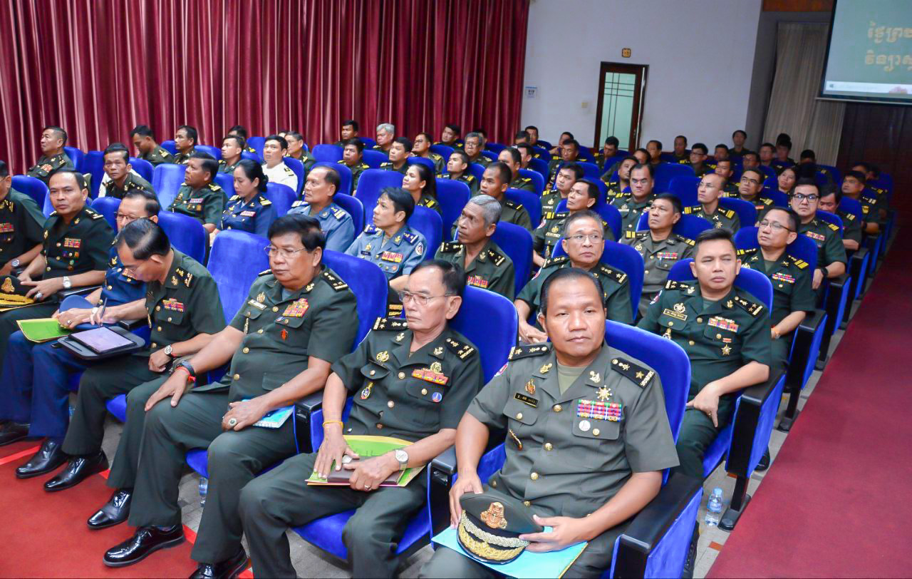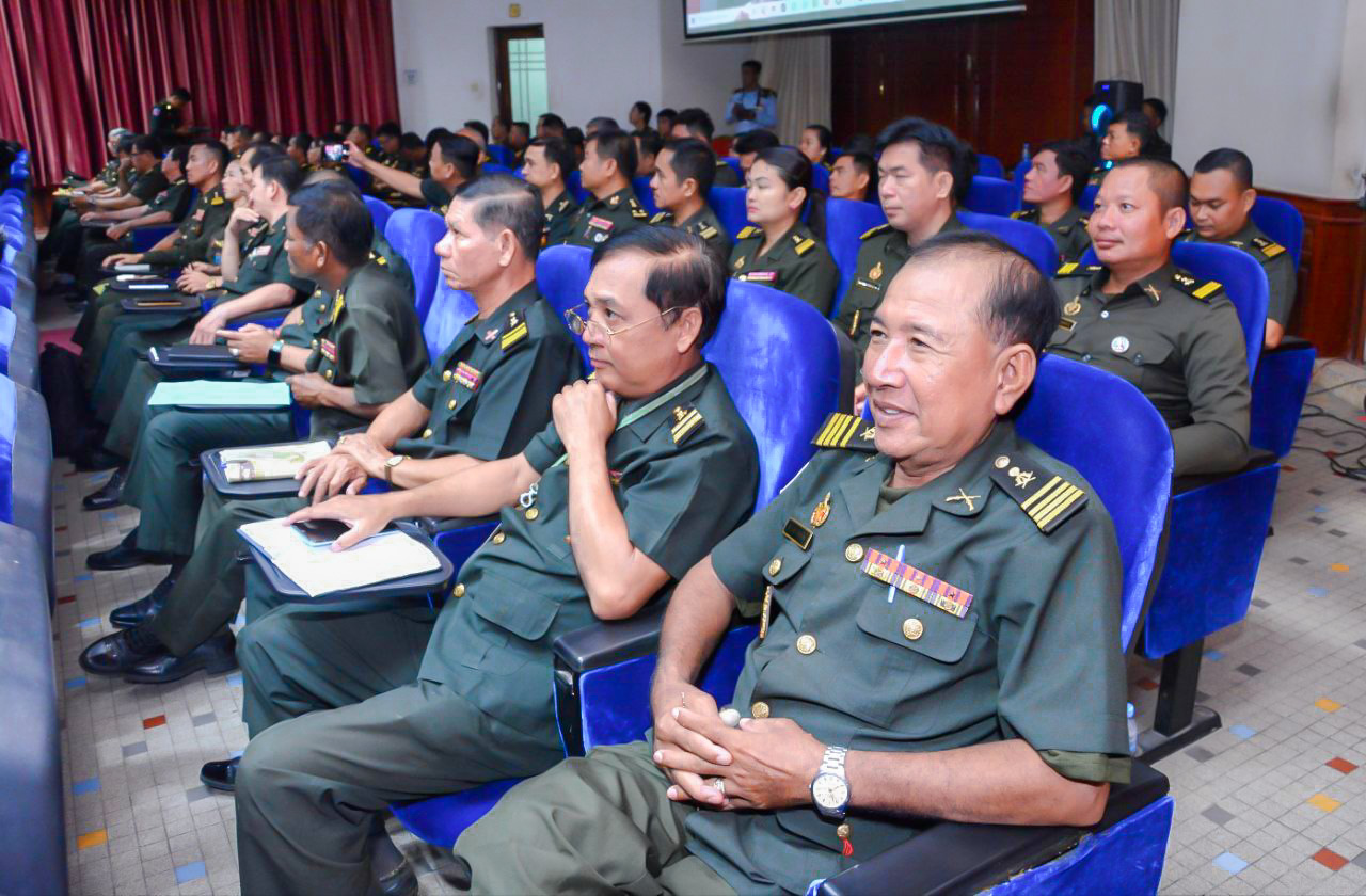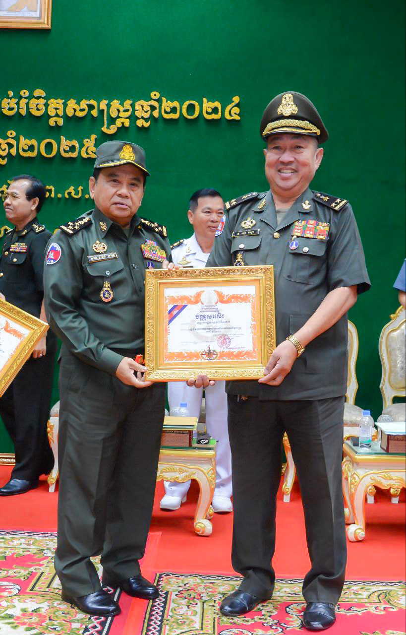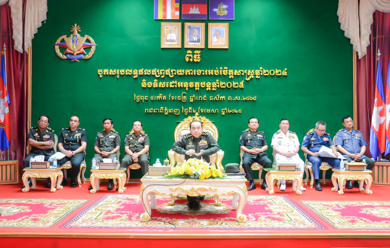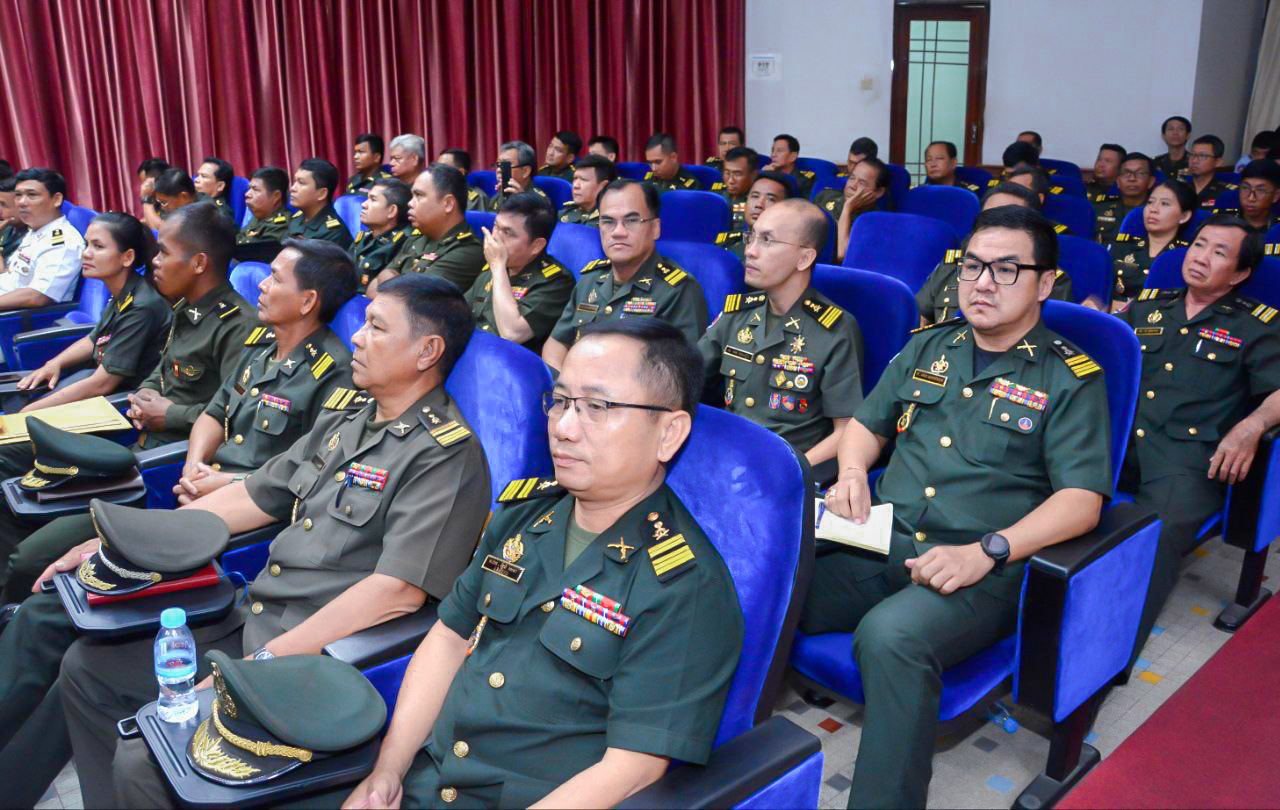 (ភ្នំពេញ)៖ នាយឧត្តមសេនីយ៍ ម៉ក់ សារុន អគ្គមេបញ្ជាការរងនៃកងយោធពលខេមរភូមិន្ទ តំណាងដ៏ខ្ពង់ខ្ពស់នាយឧត្តមសេនីយ៍ វង្យ ពិសេន អគ្គមេបញ្ជាការ បានអញ្ជើញជាអធិបតីភាពក្នុងពិធីបូកសរុបលទ្ធផលផ្សព្វផ្សាយការងារអប់រំចិត្តសាស្ត្រឆ្នាំ២០២៤ និងទិសដៅអនុវត្តបន្តឆ្នាំ២០២៥ របស់ទីចាត់ការឃោសនា-ព័ត៌មាន កាលពីព្រឹកថ្ងៃទី២ ខែមេសា ឆ្នាំ២០២៥ នៅអគ្គបញ្ជាការដ្ឋាន។