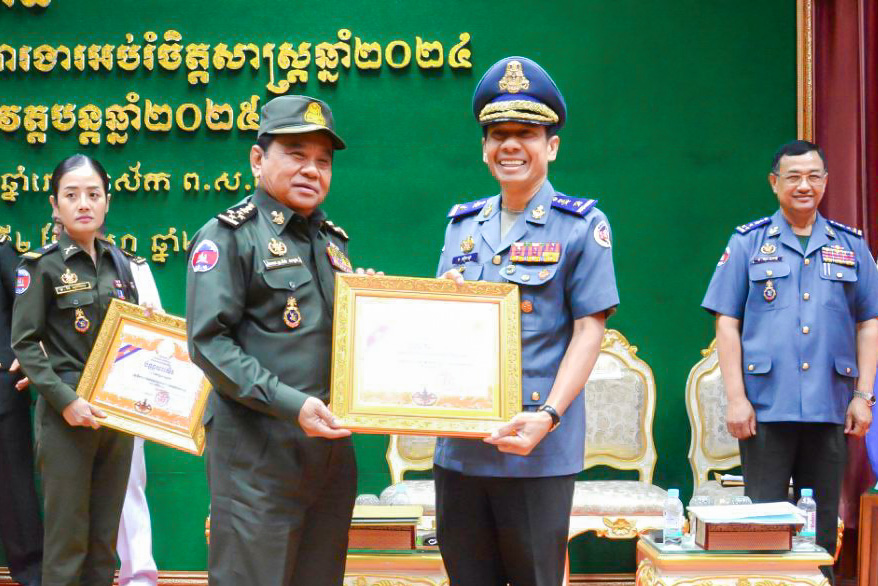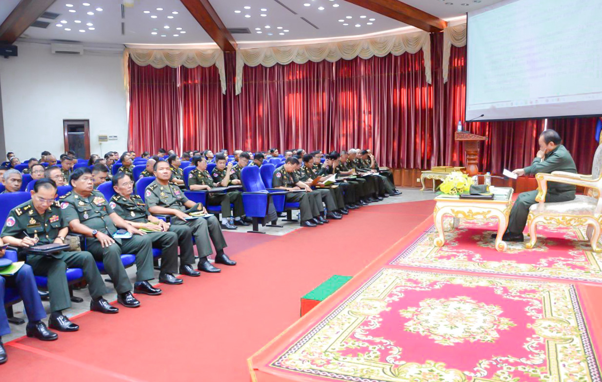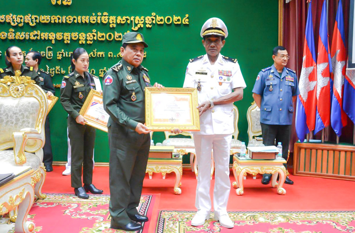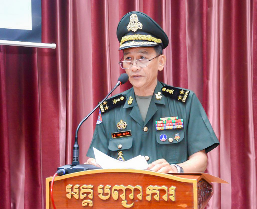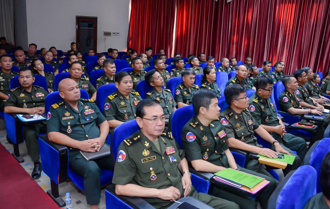 (ភ្នំពេញ)៖ នាយឧត្តមសេនីយ៍ ម៉ក់ សារុន អគ្គមេបញ្ជាការរងនៃកងយោធពលខេមរភូមិន្ទ តំណាងដ៏ខ្ពង់ខ្ពស់នាយឧត្តមសេនីយ៍ វង្យ ពិសេន អគ្គមេបញ្ជាការ បានអញ្ជើញជាអធិបតីភាពក្នុងពិធីបូកសរុបលទ្ធផលផ្សព្វផ្សាយការងារអប់រំចិត្តសាស្ត្រឆ្នាំ២០២៤ និងទិសដៅអនុវត្តបន្តឆ្នាំ២០២៥ របស់ទីចាត់ការឃោសនា-ព័ត៌មាន កាលពីព្រឹកថ្ងៃទី២ ខែមេសា ឆ្នាំ២០២៥ នៅអគ្គបញ្ជាការដ្ឋាន។