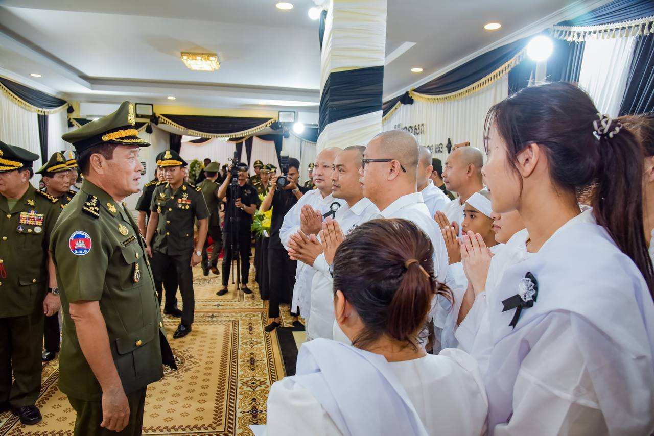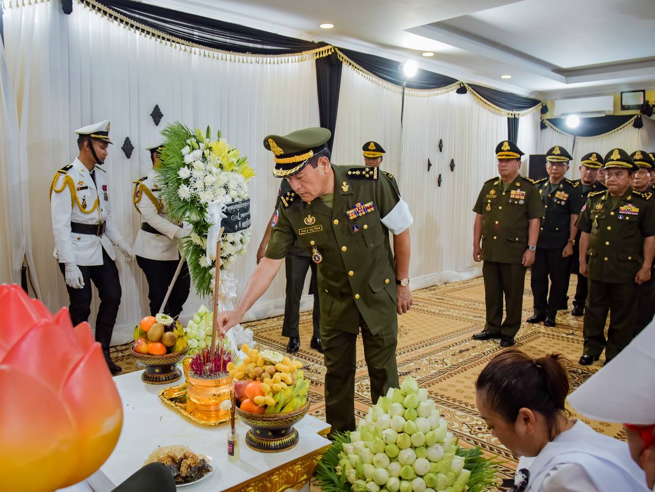 ក្នុងនាមថ្នាក់ដឹកនាំអគ្គបញ្ជាការ ឯកឧត្តម នាយឧត្តមសេនីយ៍ វង្ស ពិសេន បានសំដែងការចូលរួមរំលែកទុក្ខជាមួយក្រុមគ្រួសារនៃសព ចំពោះការបាត់បង់ឧត្តមស្វាមី ឪពុក ជាទីស្រឡាញ់ និងជាការបាត់បង់នាយទាហានជាន់ខ្ពស់មួយរូប ដែលកន្លងមកបានលះបង់ បូជាជីវិត ដើម្បីបុព្វហេតុជាតិមាតុភូមិ និងប្រជាជន។