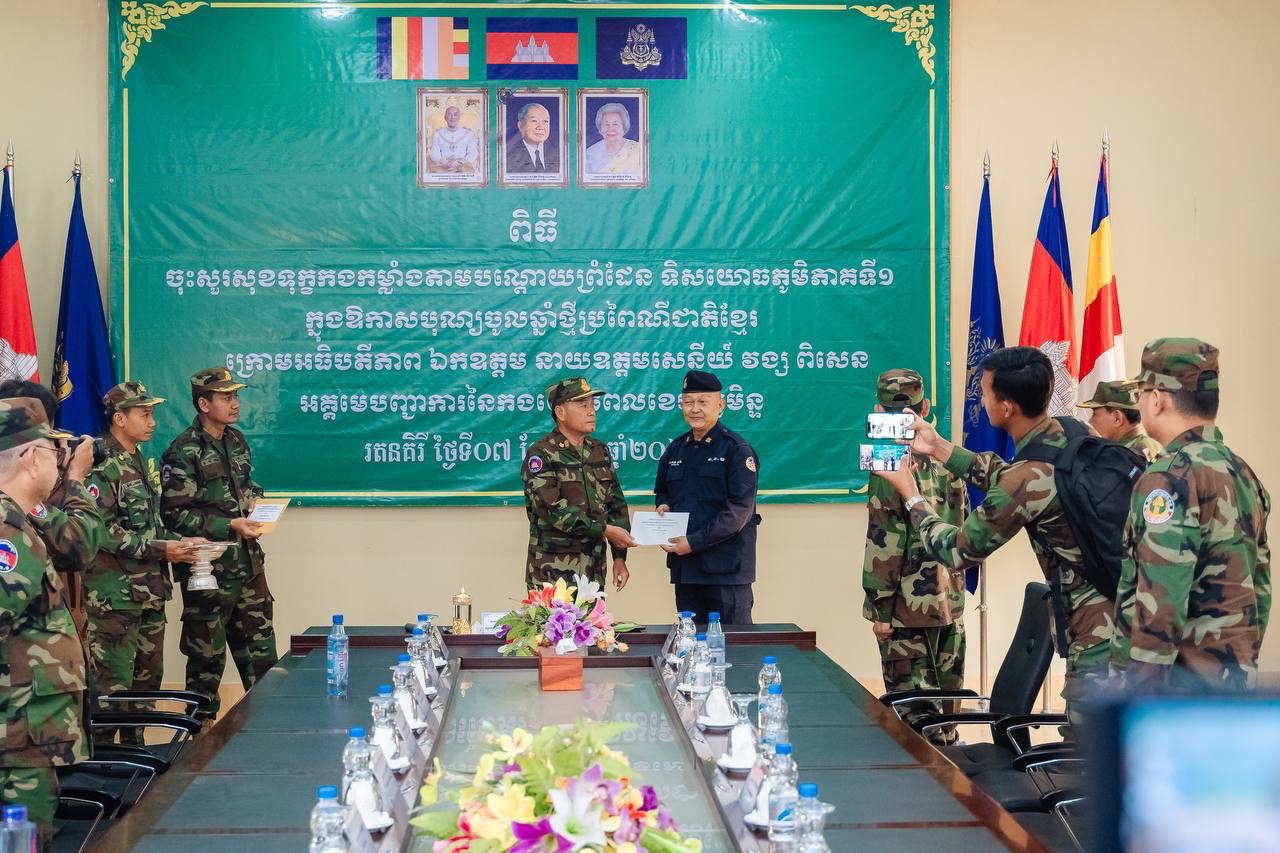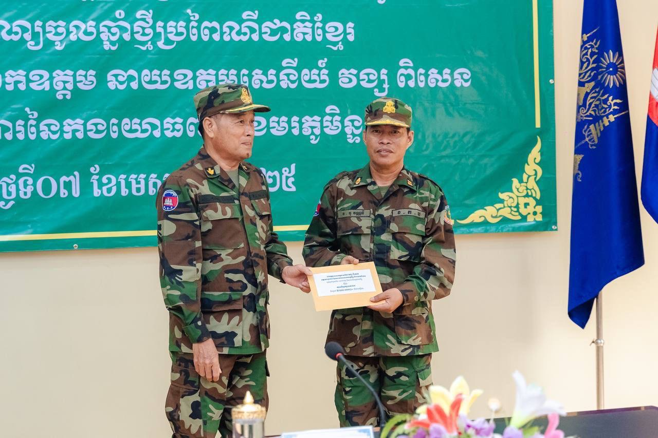 ជាមួយនោះ ឯកឧត្តម អគ្គមេបញ្ជាការ ក៏បាននាំយកនូវថវិកាមួយចំនួនទៅផ្ដល់ជូនកងកម្លាំងកងទ័ព កងនគរបាលជាតិ កងរាជអាវុធហត្ថ និងកងកម្លាំងវិស្វកម្ម នៅតំបន់ព្រំដែនដើម្បីរួមចំណែកក្នុងការជួបជុំទទួលទានអាហារសាមគ្គី នៅមុន ឬក្រោយនៃវិធីបុណ្យចូលឆ្នាំថ្មីប្រពៃណីខ្មែរ៕