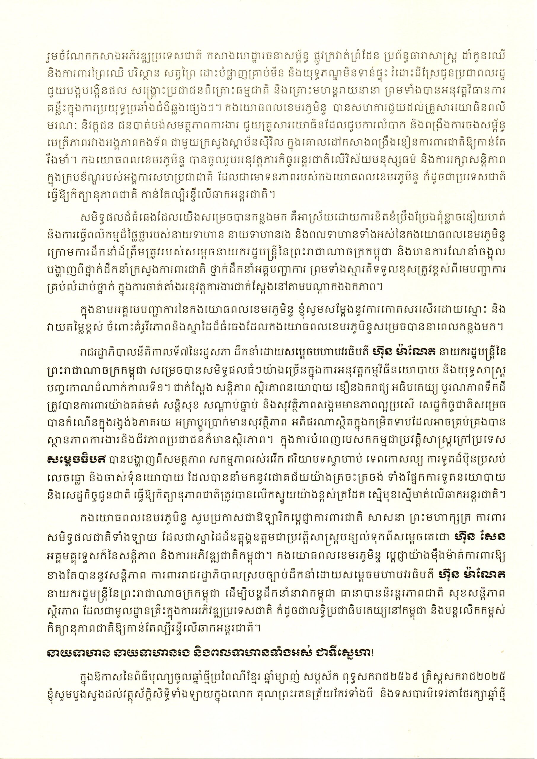 ខាងក្រោមនេះជាសារលិខិតរបស់ ឯកឧត្ដម នាយឧត្តមសេនីយ៍ វង្ស ពិសេន៖