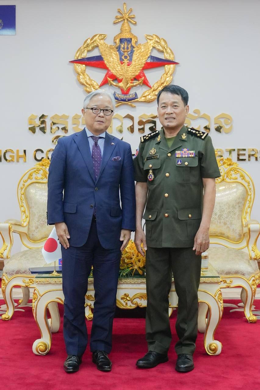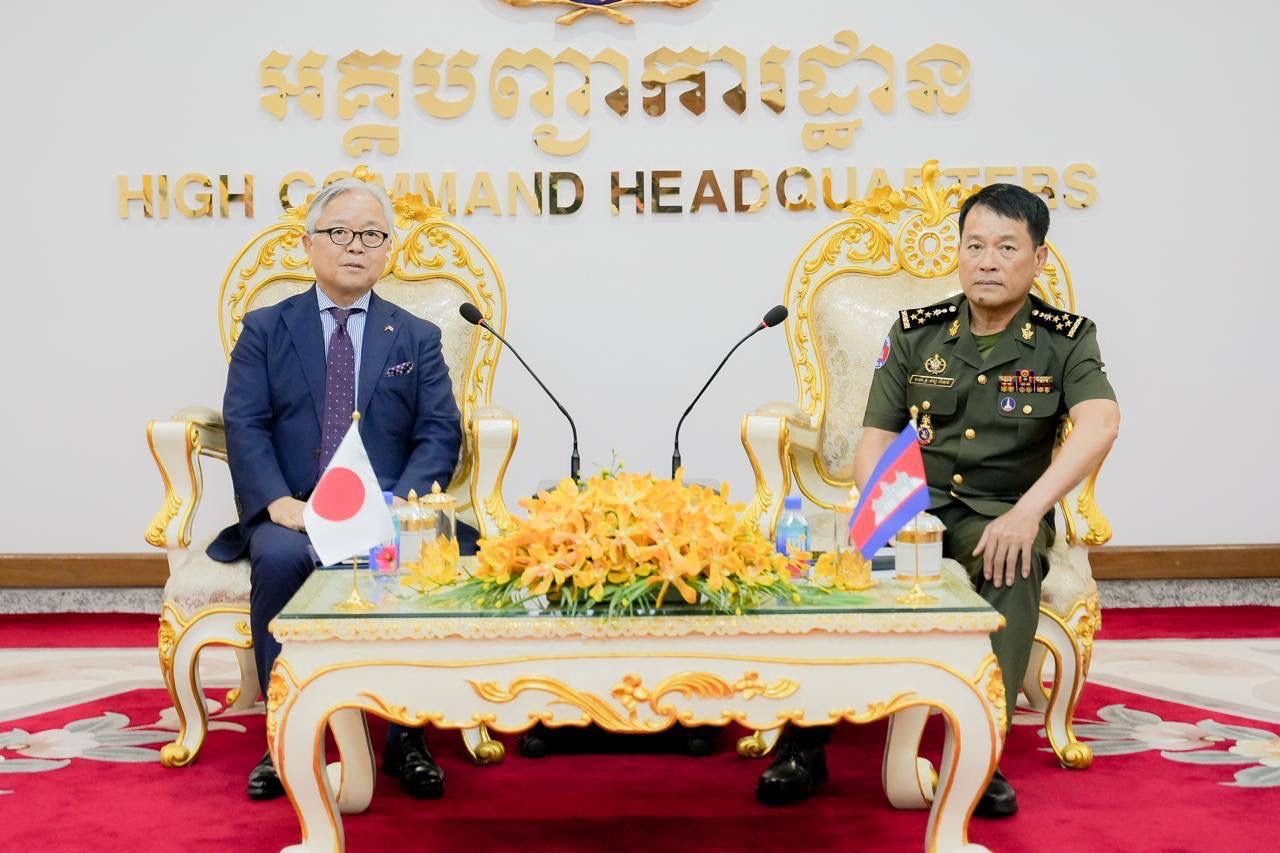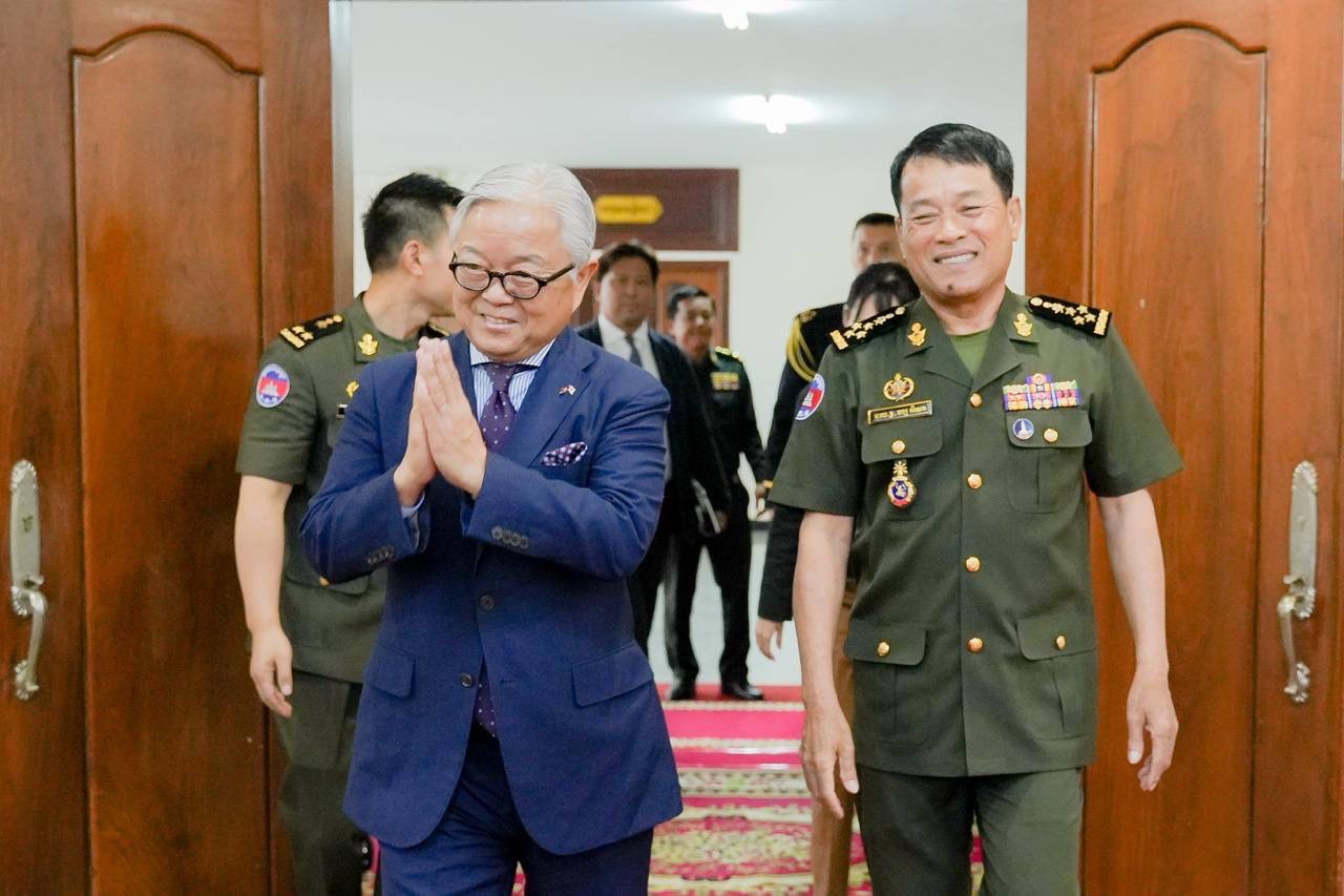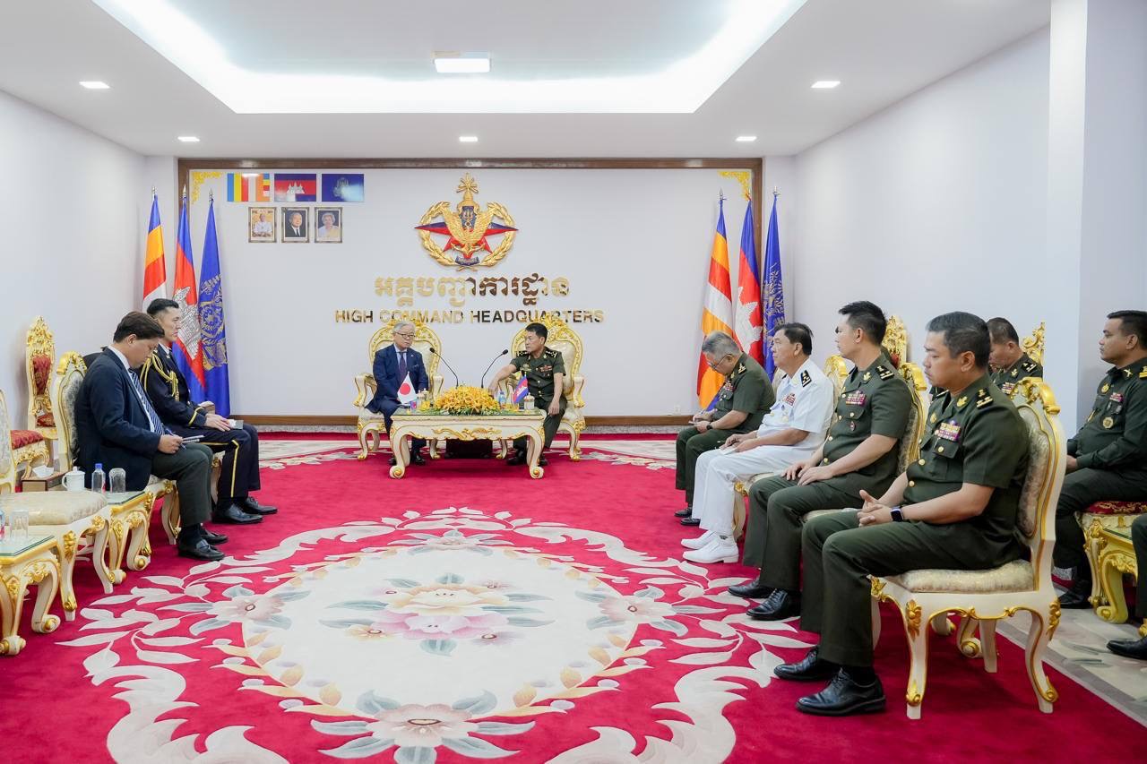 (ភ្នំពេញ)៖ ឯកឧត្តម នាយឧត្ដមសេនីយ៍ វង្ស ពិសេន អគ្គមេបញ្ជាការ នៃកងយោធពលខេមរភូមិន្ទ នៅរសៀលថ្ងៃទី៩ ខែមេសា ឆ្នាំ២០២៥ បានអនុញ្ញាតឲ្យឯកឧត្តម អុអីណូ អេសូស៊ី ឯកអគ្គរាជទូតជប៉ុន និងសេនានុព័ន្ធជប៉ុនប្រចាំកម្ពុជា ចូលជួបសម្ដែងការគួរសម និងថ្លែងអំណរគុណ ។