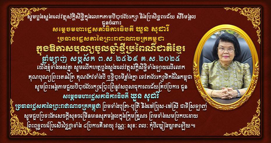 ជាថ្មីម្ដងទៀត យើងខ្ញុំទាំងអស់គ្នា សូមគោរពប្រសិទ្ធពរជ័យ សិរីមង្គល វិបុលសុខ បវរមហាប្រសើរ ជូនសម្តេចប្រធានរដ្ឋសភា ព្រមទាំងក្រុមគ្រួសារ សូមប្រកបដោយពរទាំងឡាយប្រាំប្រការគឺ អាយុ វណ្ណៈ សុខៈ ពលៈ និងបដិភាណៈ កុំបីឃ្លៀងឃ្លាតឡើយ៕