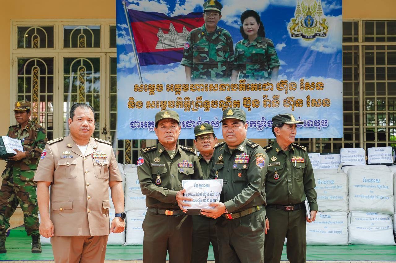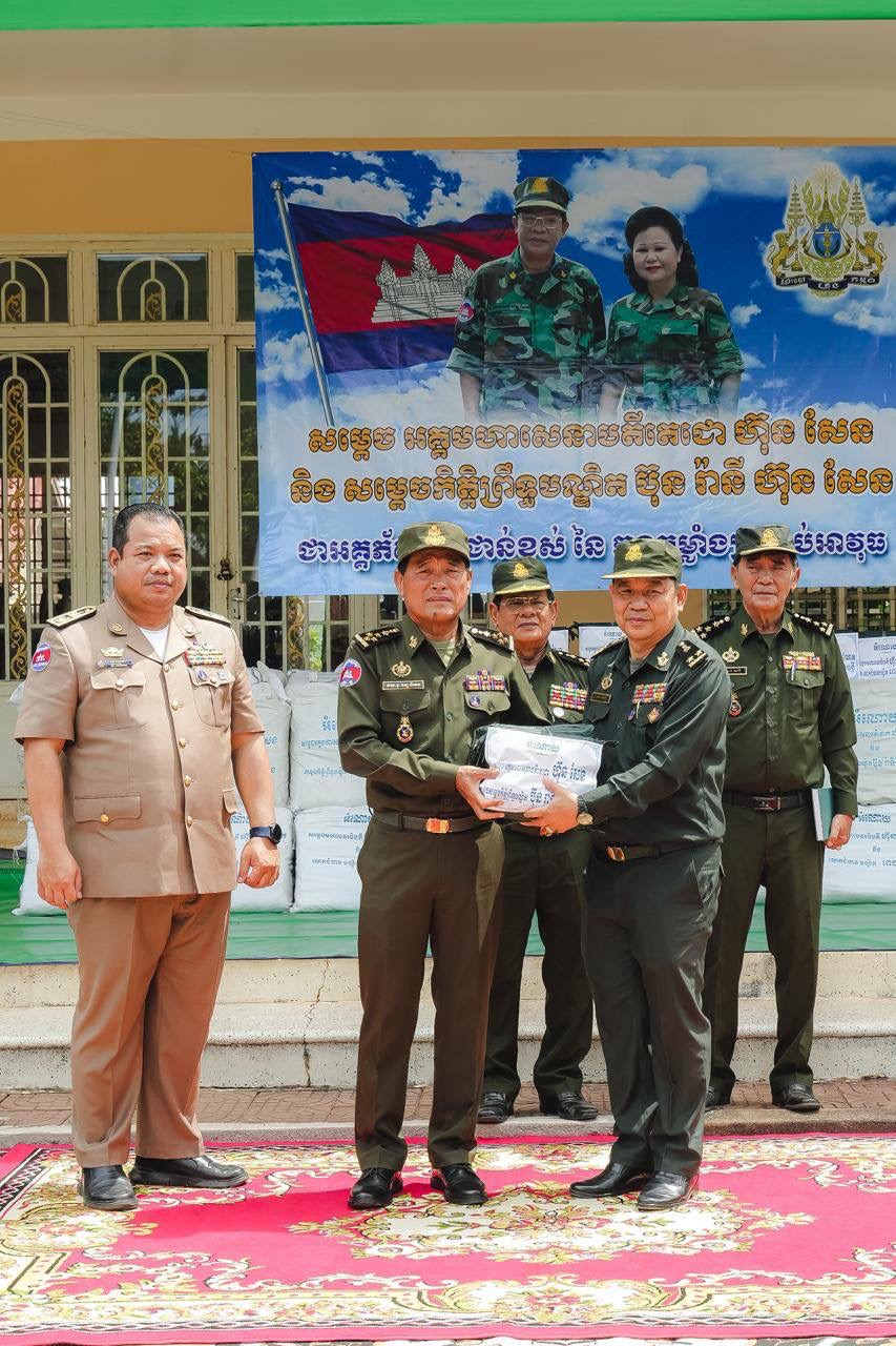 ក្នុងពិធីចែកអាវភ្លៀងនេះដែរ នាយឧត្តមសេនីយ៍ អគ្គមេបញ្ជាការ បានពាំនាំប្រសាសន៍ផ្តាំផ្ញើសួរសុខទុក្ខពីសម្តេចតេជោ ហ៊ុន សែន និងសម្តេចកិតិ្តព្រឹទ្ធបណ្ឌិត, សម្តេចមហាបវរធិបតី ហ៊ុន ម៉ាណែត នាយករដ្ឋមន្ត្រី និងលោកជំទាវបណ្ឌិត, ឯកឧត្តមឧបនាយករដ្ឋមន្ត្រី រដ្ឋមន្ត្រីក្រសួងការពារជាតិ ចំពោះកងកម្លាំងគ្រប់ប្រភេទ ដែលឈរជើងការការពារបូរណភាពទឹកដី ការពារសន្តិភាព និងស្ថិរភាពជូនប្រជាពលរដ្ឋ។