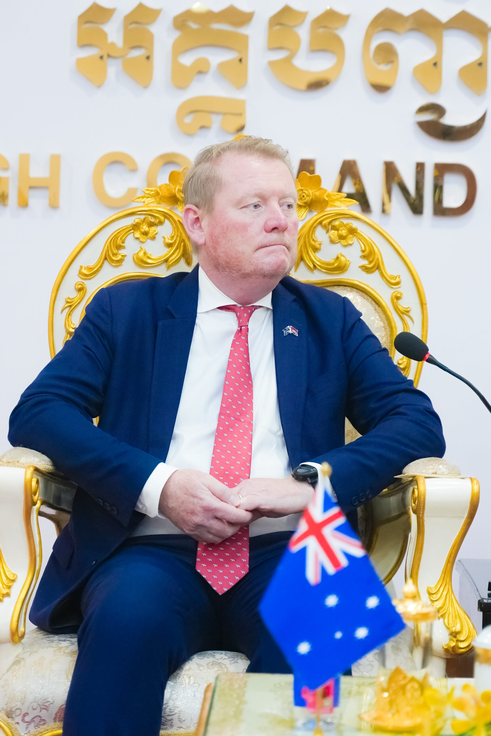 (ភ្នំពេញ)៖ ក្នុងឱកាសចូលជួបសម្ដែងការគួរសមជាមួយ ឯកឧត្តម នាយឧត្តមសេនីយ៍វង្ស ពិសេន អគ្គមេបញ្ជាការនៃកងយោធពលខេមរភូមិន្ទ នាព្រឹកថ្ងៃទី៥ មិថុនា ឆ្នាំ២០២៥ ឯកឧត្តម Bernard Philip ជំនួយការលេខាទី១ផ្នែកគោលនយោបាយអន្តរជាតិអូស្ត្រាលី បានអះអាងពីការបន្តពង្រឹងកិច្ចសហប្រតិបត្តិការជាមួយកម្ពុជាដើម្បីផលប្រយោជន៍ទៅវិញទៅមករវាងប្រទេសទាំងពីរ។