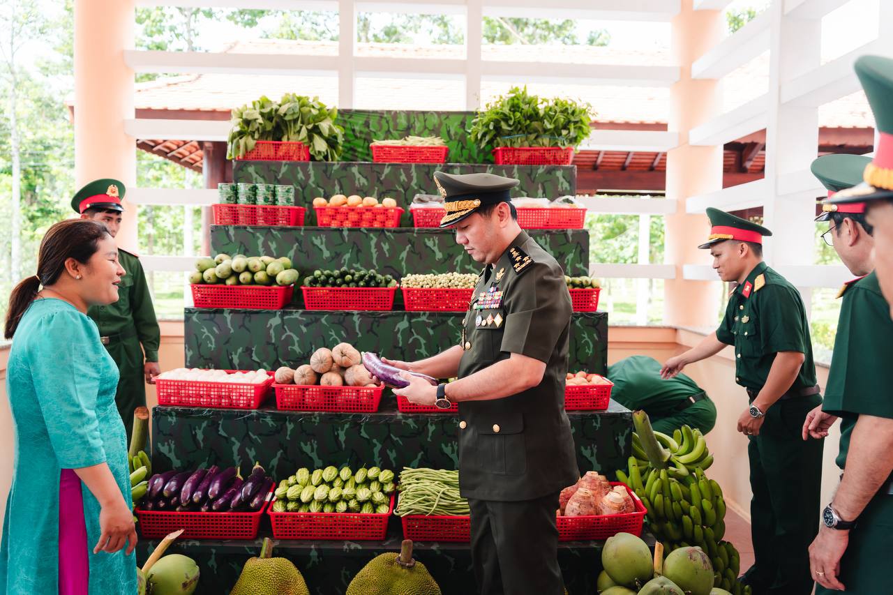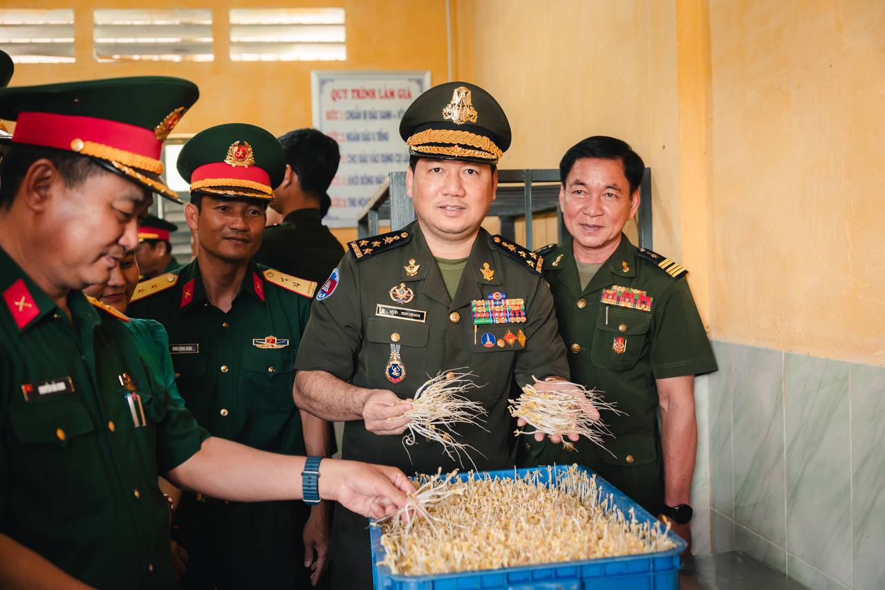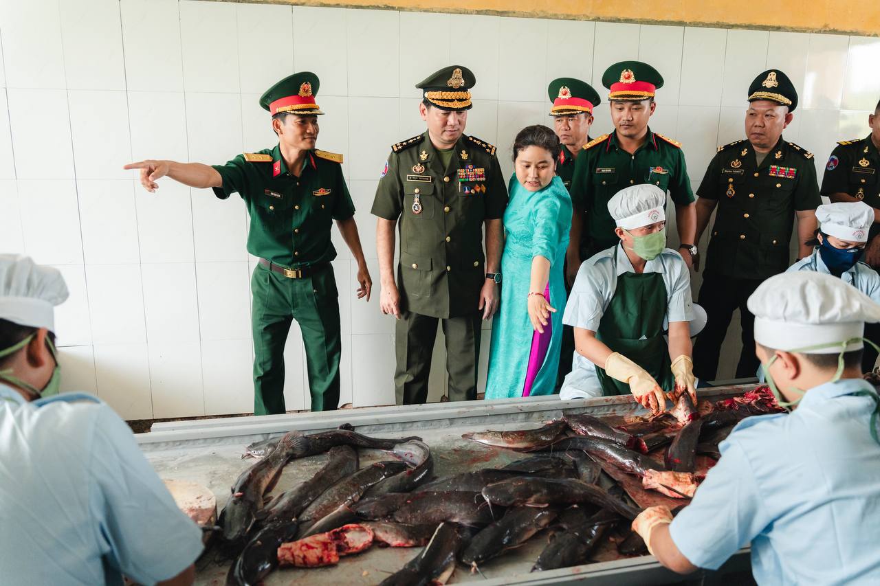 យោងតាមការបញ្ជាក់របស់ប្រធានគណៈប្រតិភូ ឧត្ដមសេនីយ៍ឯក ហួត ឈាងអន “ក្នុងដំណើរទស្សនកិច្ចនៅទីបញ្ជាការកងពលធំទី៥ ចំណុះយោធភូមិភាគទី៧ គណៈប្រតិភូបានស្ដាប់ការធ្វើបទបង្ហាញចែករំលែកបទពិសោធន៍អំពីការចិញ្ចឹមទ័ព, ការងារដាំដុះ បង្កបង្កើនផល, ការងារចិញ្ចឹមសត្វ ចិញ្ចឹមត្រី ការធ្វើកសិកម្មបែបទំនើប និងសិប្បកម្មកែច្នៃសាច់កំប៉ុង”។