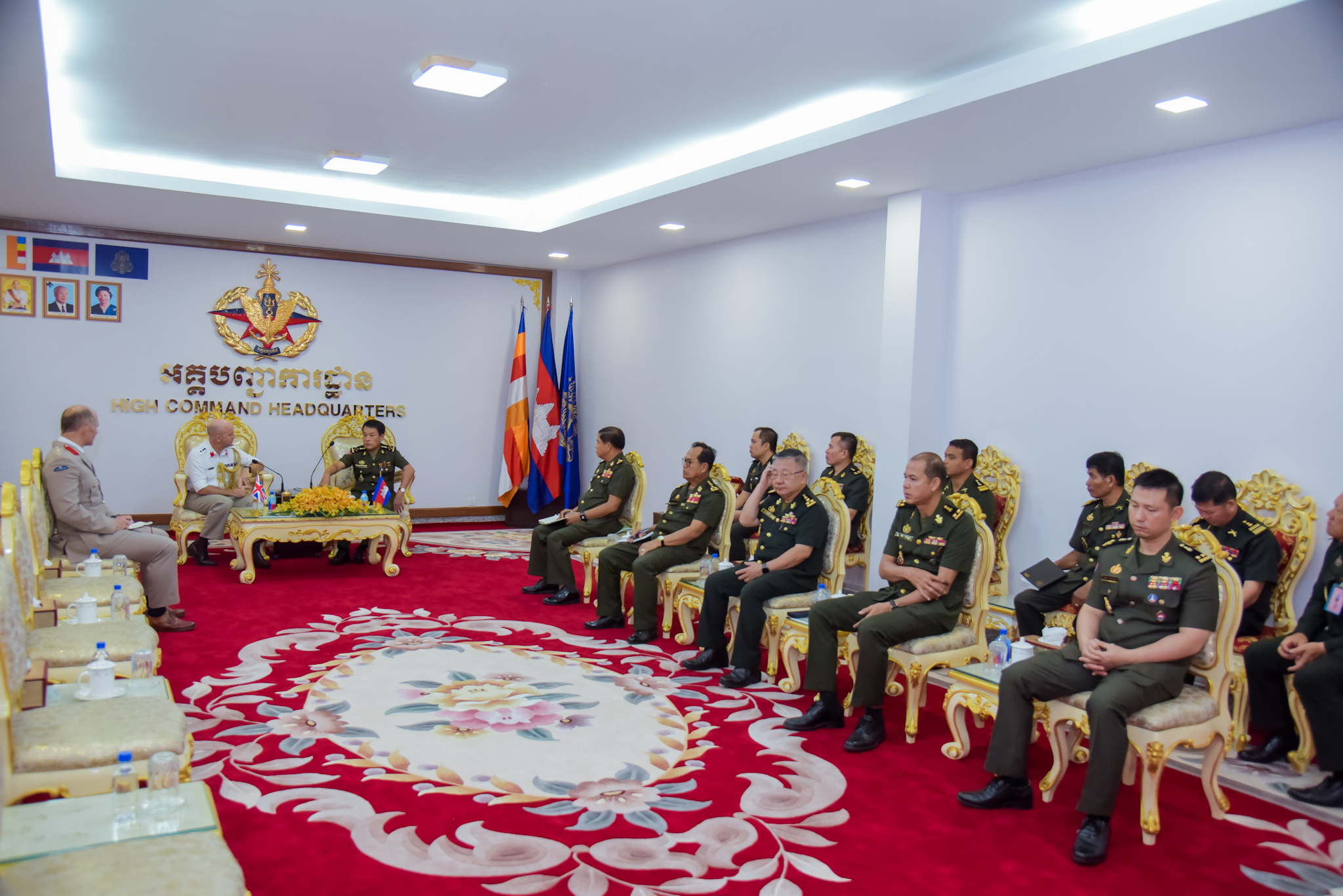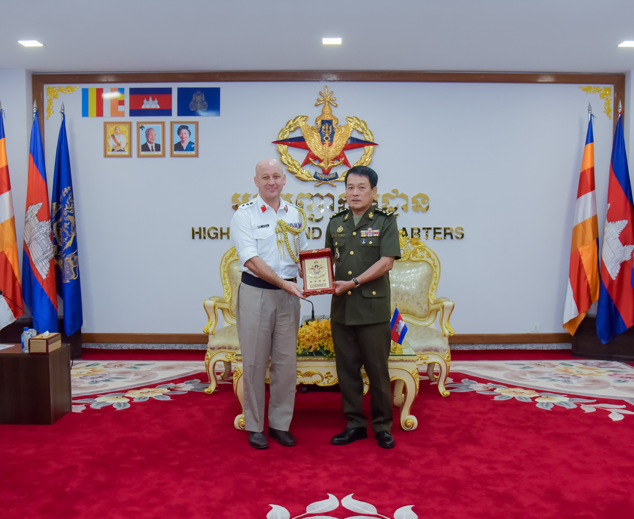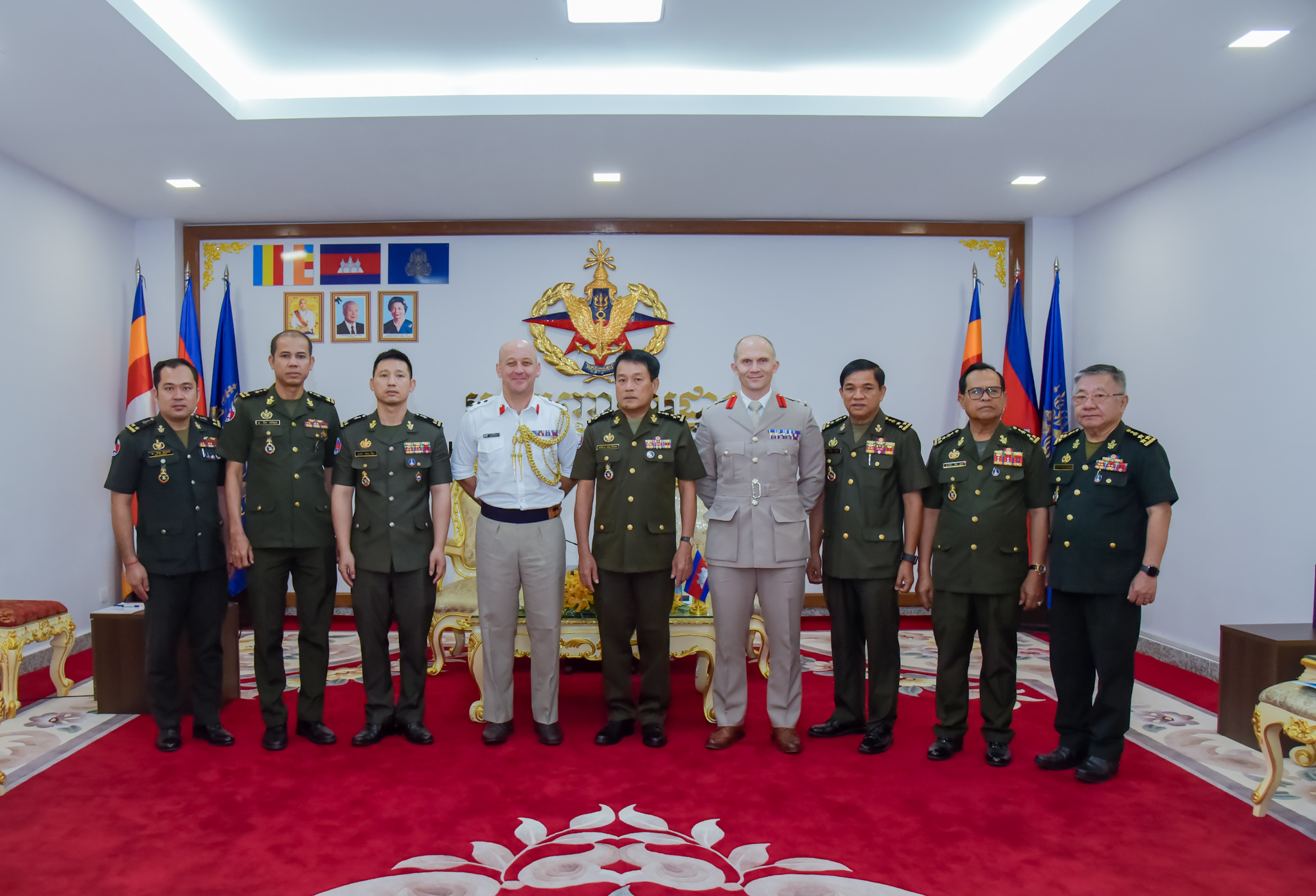 (ភ្នំពេញ)៖ ព្រឹកថ្ងៃទី២៧ ខែកក្កដា ឆ្នាំ២០២៣ នាយឧត្តមសេនីយ៍ វង្ស ពិសេន អគ្គមេបញ្ជាការនៃកងយោធពលខេមរភូមិន្ទ បានអនុញ្ញាតឲ្យលោកវរសេនីយ៍ឯក ជេមី មូរ៉េ នាយការិយាល័យសេនានុព័ន្ធអង់គ្លេសប្រចាំកម្ពុជា មាននិវេសនដ្ឋាននៅប្រទេសសឹង្ហបុរី ទើបបញ្ចប់អាណត្តិចូលជួបសម្តែងការគួរសមជម្រាបលា និងបង្ហាញមុខនាយការិយាល័យសេនានុព័ន្ធថ្មី វរសេនីយ៍ឯក អេឌី ម៉ាស់ខែល ភីតដឺសិន នៅអគ្គបញ្ជាការដ្ឋាន។
