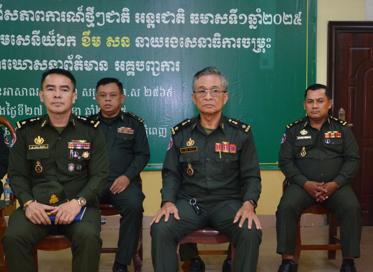 (ភ្នំពេញ)៖ ឯកឧត្តម ឧត្តមសេនីយ៍ឯក ខឹម សន នាយរងសេនាធិការចម្រុះនាយកទីចាត់ការឃោសនាព័ត៌មាន អគ្គបញ្ជាការ បានអញ្ជើញចុះផ្សព្វផ្សាយសភាពការណ៍ថ្មីៗជាតិ-អន្តរជាតិ ពិធីរំលឹកខួបលើកទី៤៨ ទិវានៃការចងចាំដំណើរឆ្ពោះទៅការផ្តួលរំលំរបបប្រល័យពូជសាសន៍ ប៉ុល ពត (២០ មិថុនា ១៩៧៧ – ២០ មិថុនា ២០២៥) ខួប២៧ឆ្នាំនៃការអនុវត្តនយោបាយឈ្នះឈ្នះ សមិទ្ធផលនានារបស់រាជរដ្ឋាភិបាល ព្រឹត្តិការណ៍នៅមុំបីថ្ងៃទី២៨ ខែ ឧសភា ឆ្នាំ២០២៥ ស្ដីពីវីរភាពរបស់កងយោធពលខេមរៈភូមិន្ទ ជូនដល់នាយទាហាន នាយទាហានរង បញ្ជាការដ្ឋានបញ្ជូនសារ អគ្គបញ្ជាការ។