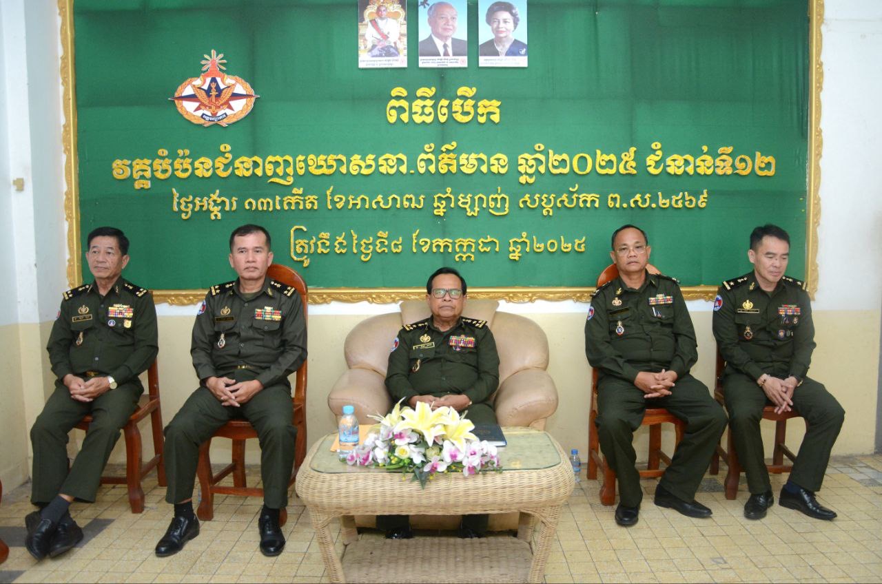 (ភ្នំពេញ)៖ ឯកឧត្តម ឧត្តមសេនីយ៍ឯក ខឹម សន នាយរងសេនាធិការចម្រុះនាយកទីចាត់ការឃោសនាព័ត៌មាន អគ្គបញ្ជាការ បានអញ្ជើញជាអធិបតីក្នុង ពិធីបើកវគ្គហ្វឹកហ្វឺនបំប៉នជំនាញឃោសនាព័ត៌មាន ជំនាន់ទី១២ ឆ្នាំ ២០២៥ ដល់នាយទាហាន នាយទាហានរង ចំណុះទីចាត់ការឃោសនាព័ត៌មាន អគ្គបញ្ជាការដ្ឋាន។