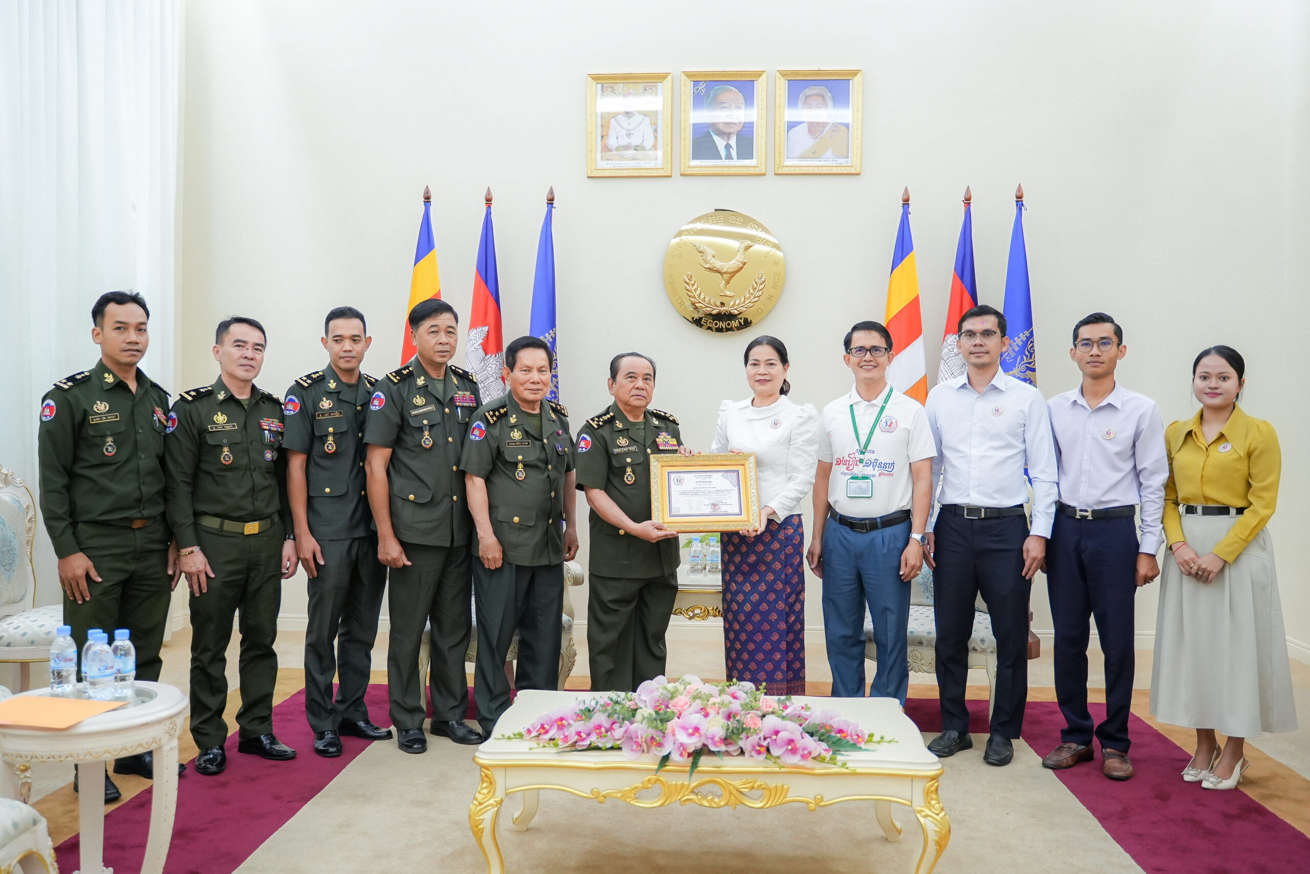 (ភ្នំពេញ)៖ ថវិកាចំនួន ១៦២.១៨០.០០០រៀល ដែលជាការបរិច្ចាគរបស់ថ្នាក់ដឹកនាំ នាយទាហាន នាយទាហានរង និងពលទាហាន អគ្គបញ្ជាការដ្ឋាន កងយោធពលខេមរភូមិន្ទ ប្រចាំត្រីមាសទី២ ឆ្នាំ២០២៥ ត្រូវបានប្រគល់ជូនមូលនិធិគន្ធបុប្ផាកម្ពុជា នាព្រឹកថ្ងៃទី១០ ខែកក្កដា ឆ្នាំ២០២៥។