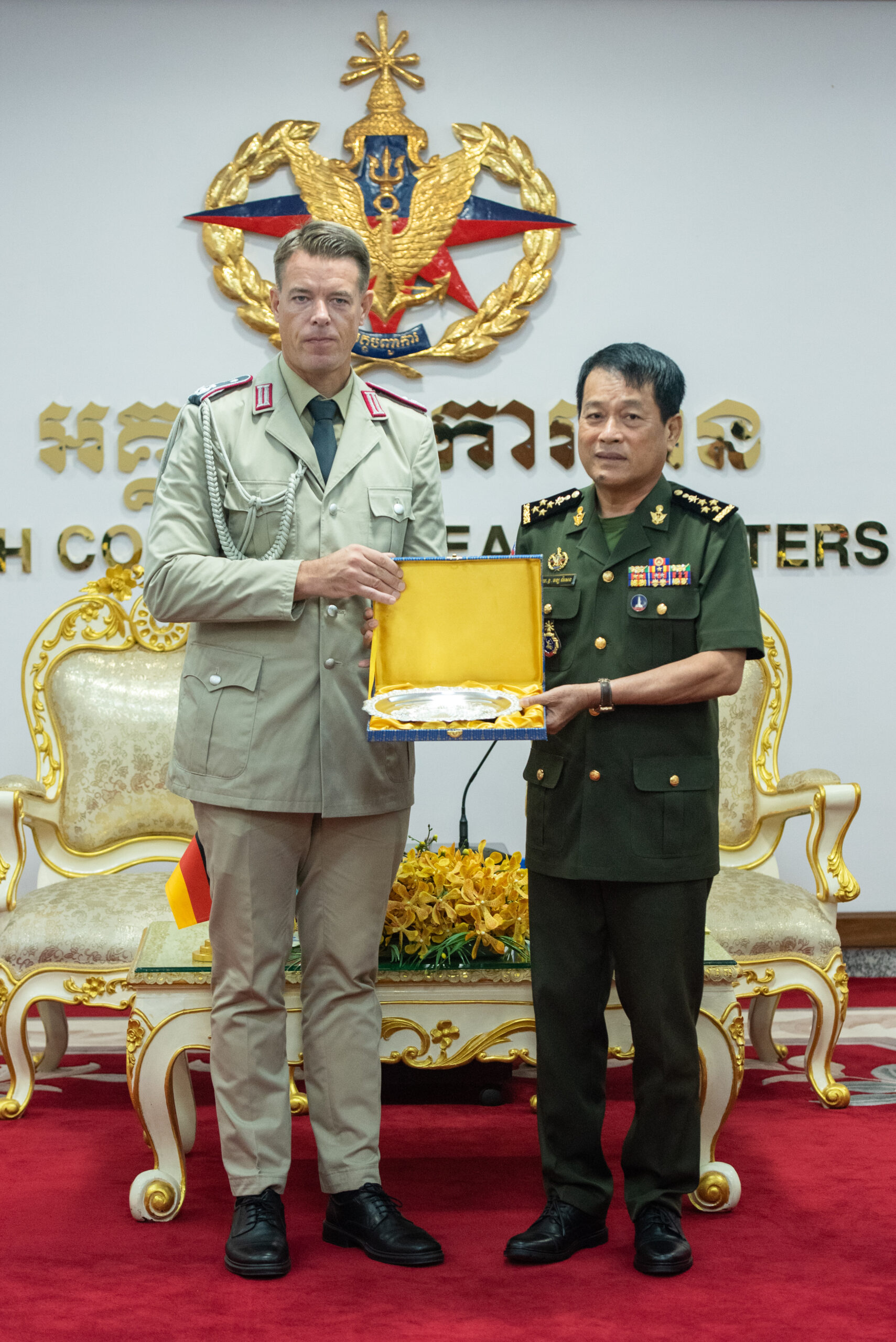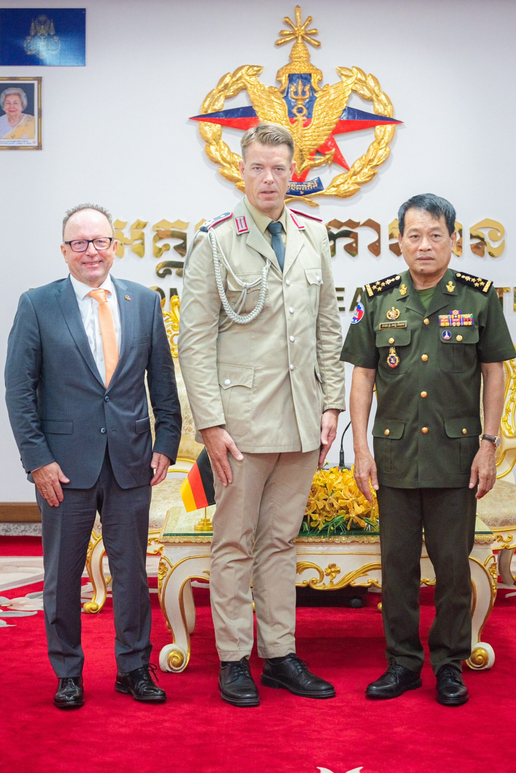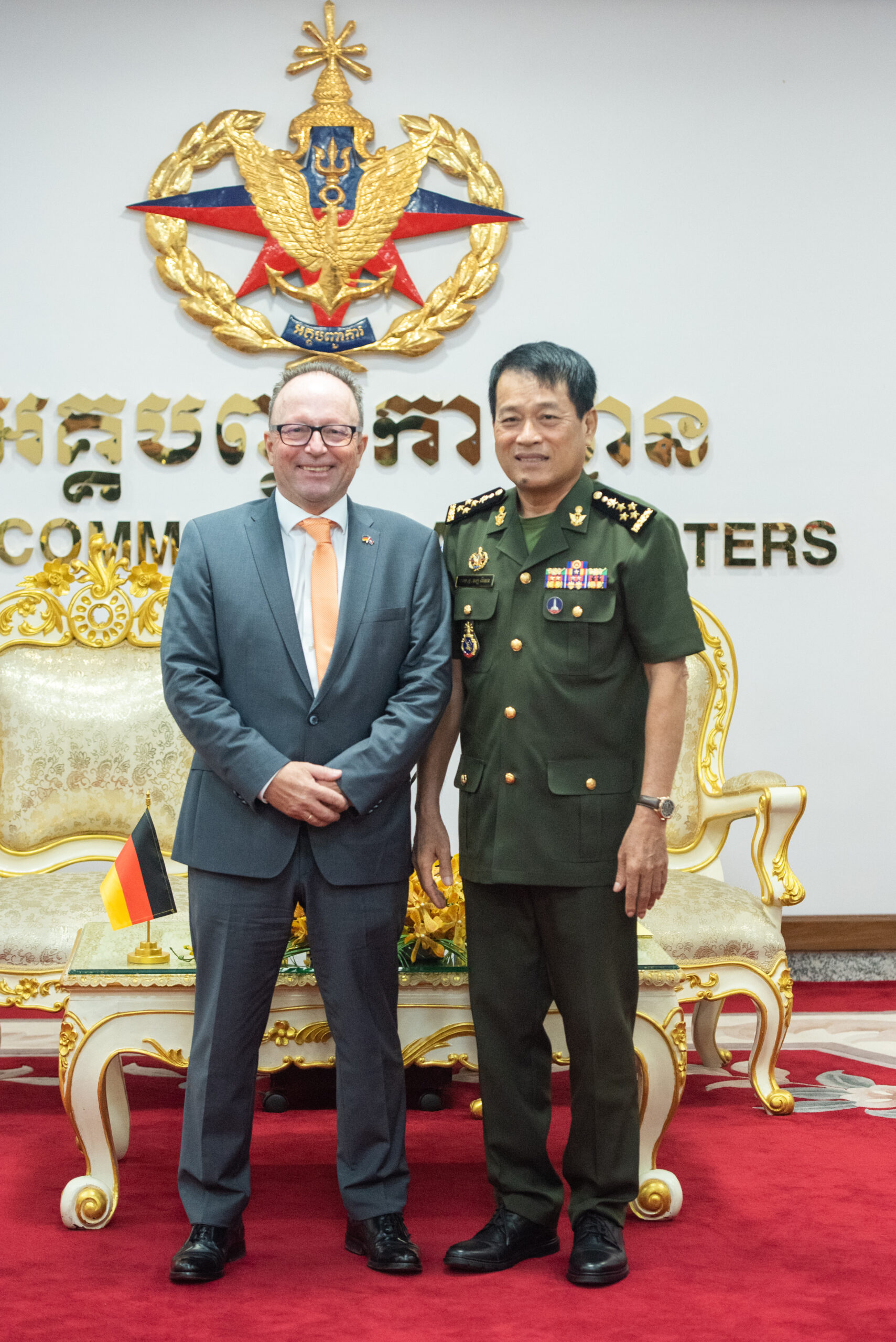 ឯកឧត្តមអគ្គមេបញ្ជាការ ក៏បានលើកឡើងពីការខិតខំប្រឹងប្រែងរបស់សាធារណរដ្ឋសហព័ន្ធអាល្លឺម៉ង់ នៅក្នុងកិច្ចខិតខំប្រឹងប្រែងជាមួយកម្ពុជាតាំងពីការបញ្ជូនកងកម្លាំងមកស្វែងរកសន្តិភាព ក្នុងអំឡុងឆ្នាំ១៩៩១ រហូតដល់ចប់សង្គ្រាម អាល្លឺម៉ង់បានចូលរួមចំណែកជួយកសាង អភិវឌ្ឍកម្ពុជាលើច្រើនវិស័យដល់ពេលបច្ចុប្បន្ននេះ។