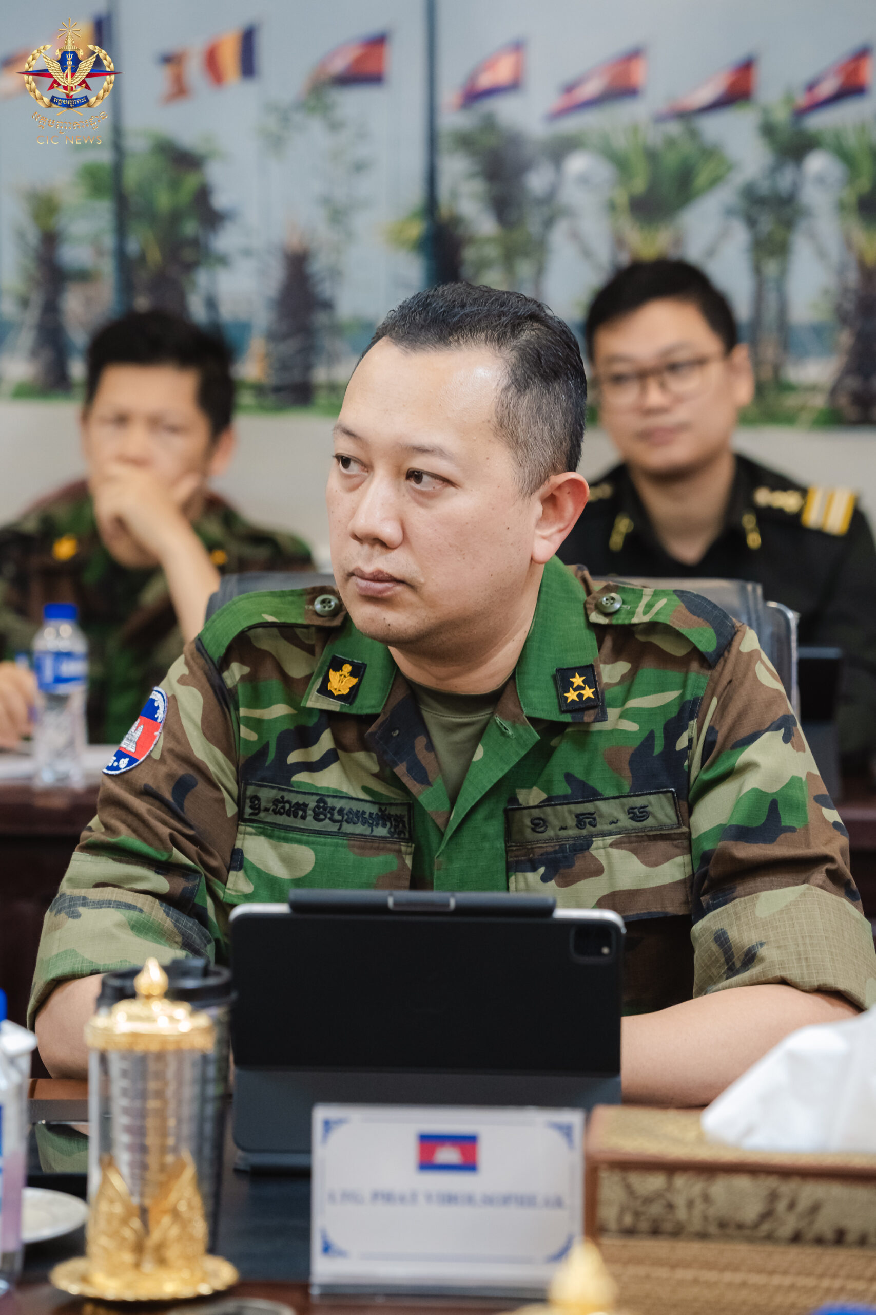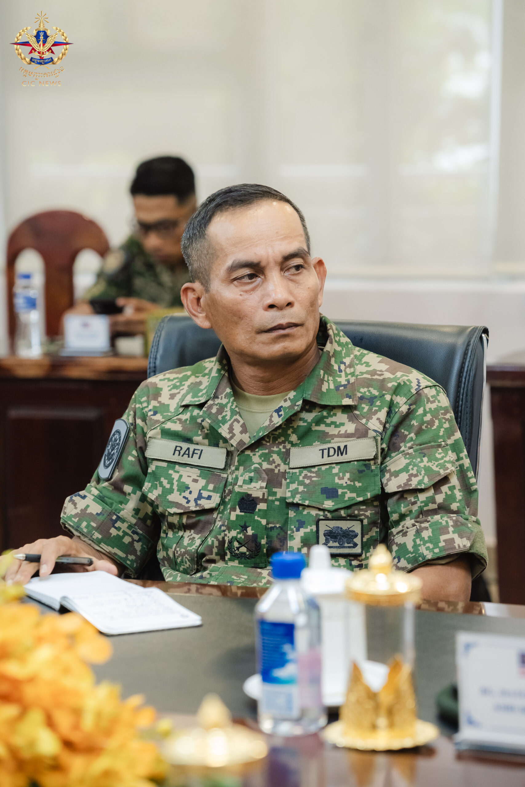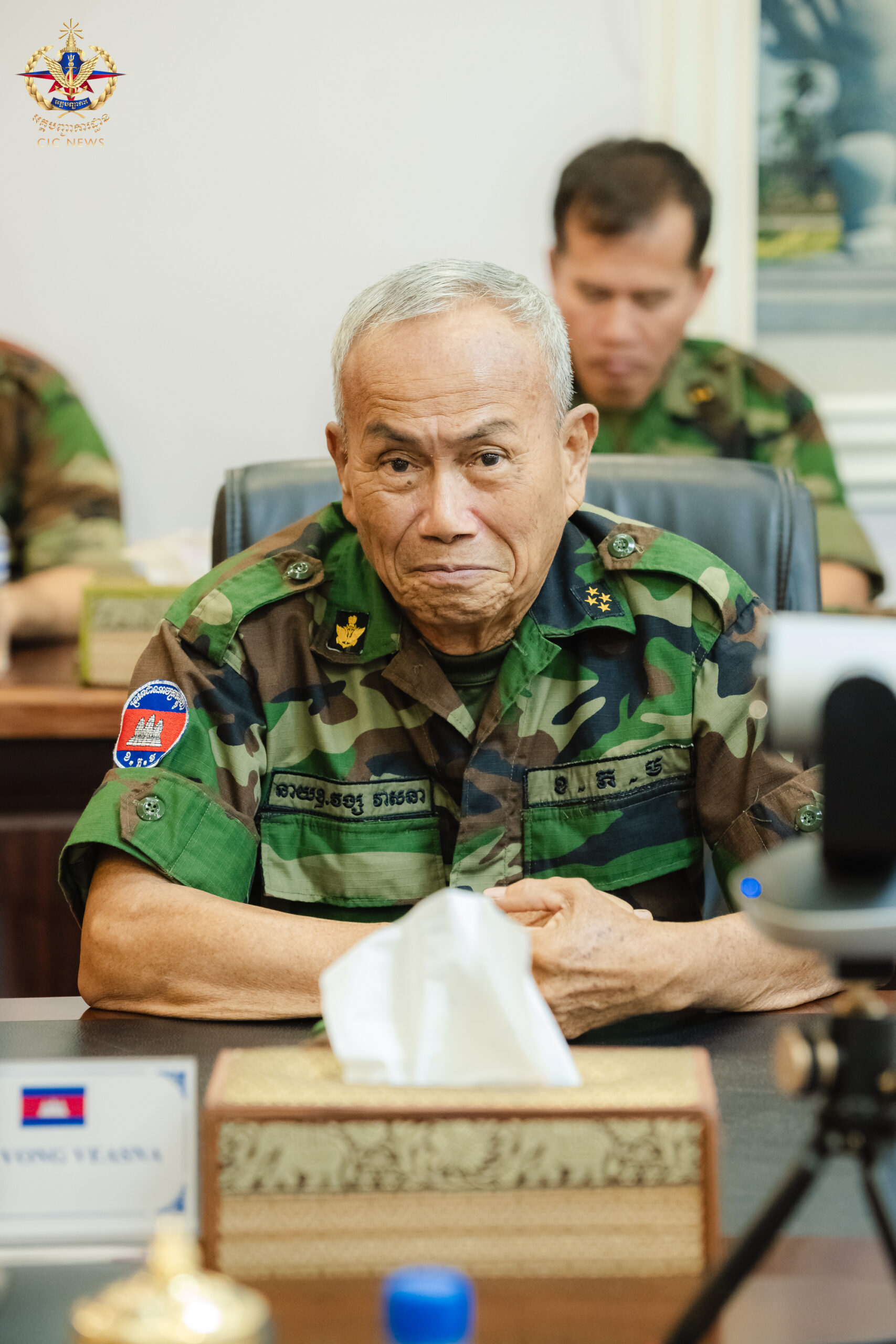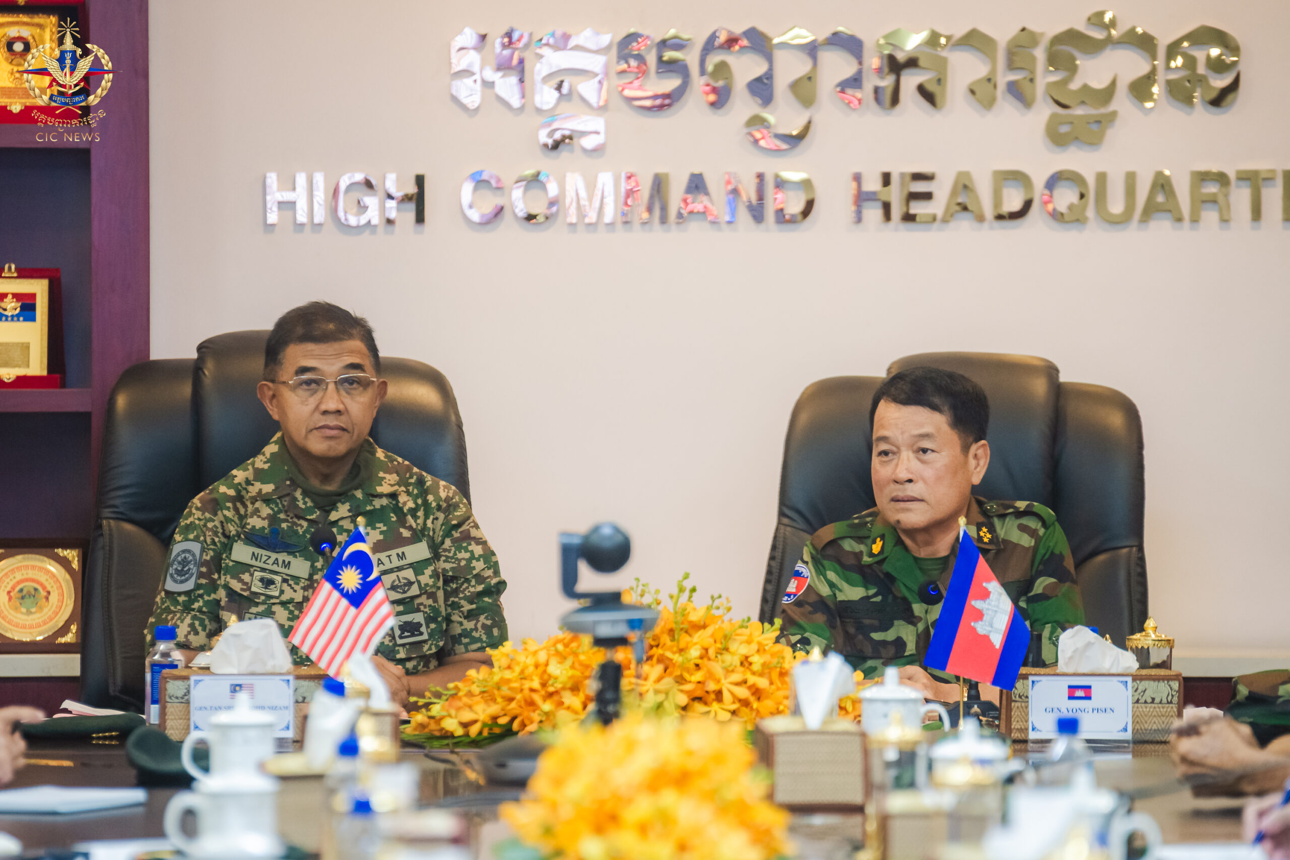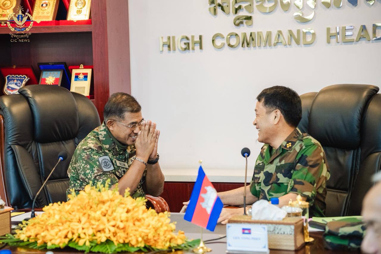 (ភ្នំពេញ)៖ រសៀលថ្ងៃទី២៩ ខែកក្កដា ឆ្នាំ២០២៥ ឯកឧត្តម នាយឧត្តមសេនីយ៍ វង្ស ពិសេន អគ្គមេបញ្ជាការ នៃកងយោធពលខេមរភូមិន្ទ បានទទួលជួបពិភាក្សាការងារជាមួយឯកឧត្តម នាយឧត្តមសេនីយ៍ តាន់ស្រុី អេចជេ ម៉ូដ នីហ្សាមប៊ីន អេចជេ ចាហ្វា អគ្គមេបញ្ជាការកងទ័ពម៉ាឡេស៊ី ក្នុងឱកាសដែលឯកឧត្តមបានដឹកនាំគណៈប្រតិភូបំពេញទស្សនកិច្ចការងារនៅព្រះរាជាណាចក្រកម្ពុជា។