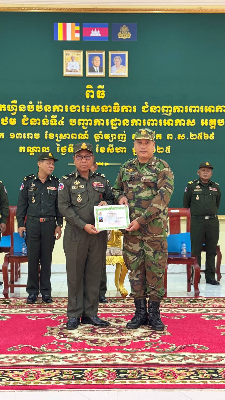 (កណ្តាល) ឯកឧត្តម ឧត្តមសេនីយ៍ទោ អឿ សំអុល មេបញ្ជាការ បញ្ជាការដ្ឋានការពារអាកាស អគ្គបញ្ជាការដ្ឋាន បានអញ្ជើញជាអធិបតីក្នុងពិធីបិទវគ្គហ្វឹកហ្វឺនបំប៉នការងារសេនាធិការ ជំនាញការពារអាកាស នាយទាហានបឋម ជំនាន់ទី៤ នារសៀលថ្ងៃទី២២ ខែសីហា ឆ្នាំ២០២៥ នៅទីបញ្ជាការដ្ឋានការពារអាកាស៕