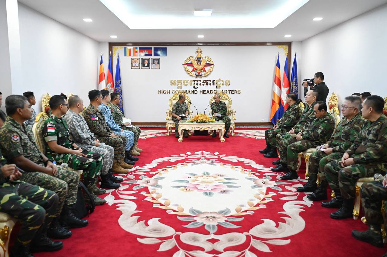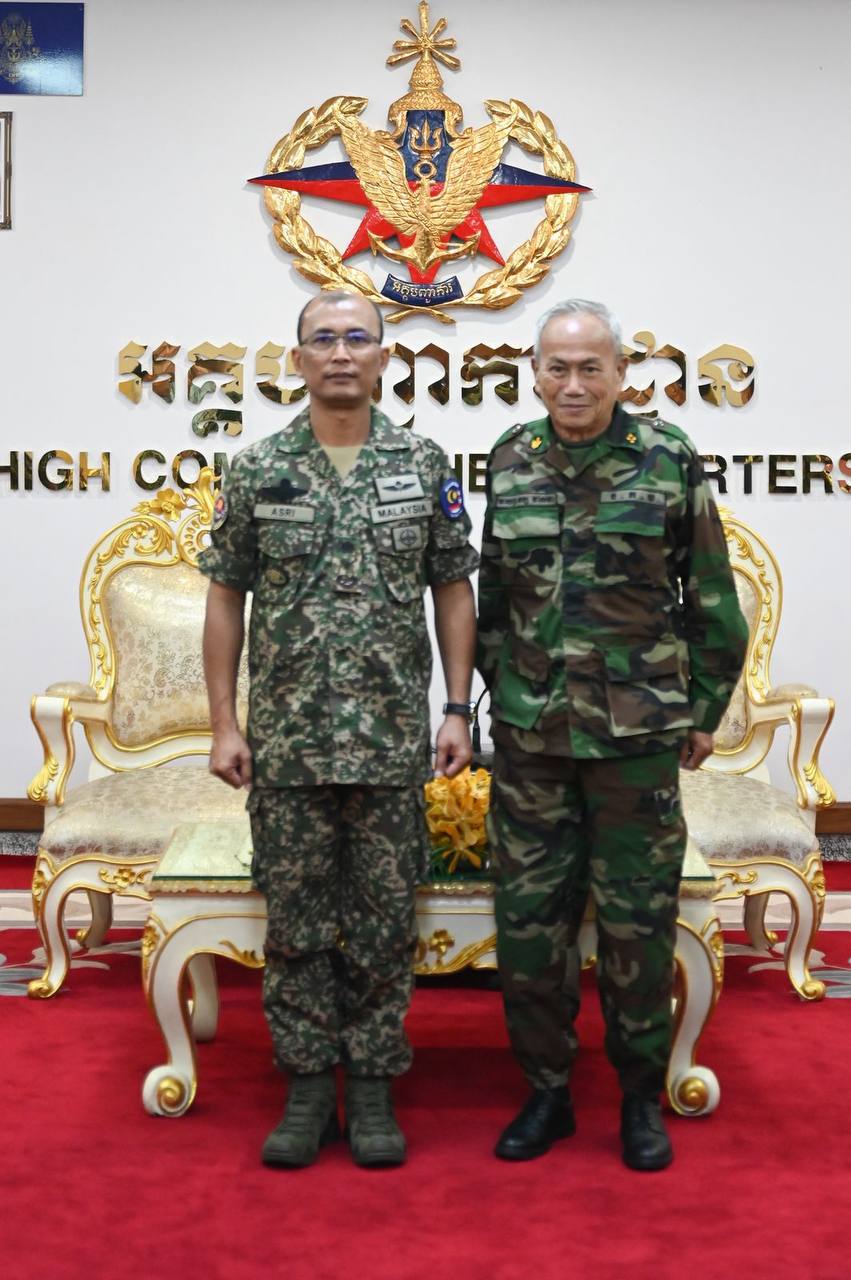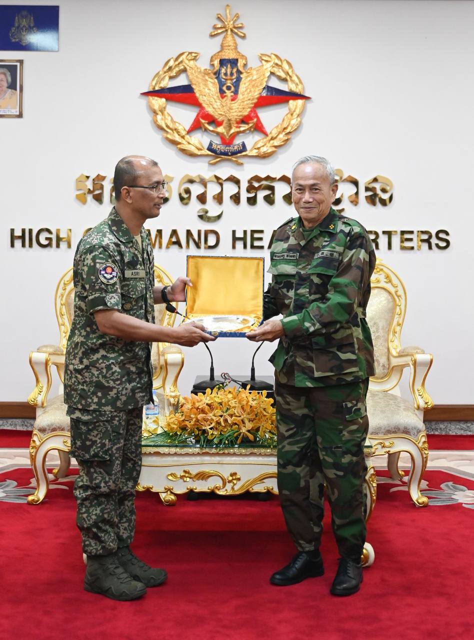 (ភ្នំពេញ)៖ ឯកឧត្តម នាយឧត្តមសេនីយ៍ វង្ស វាសនា អគ្គមេបញ្ជាការស្តីទី នៃកងយោធពលខេមរភូមិន្ទ នៅព្រឹកថ្ងៃទី១១ ខែកញ្ញា ឆ្នាំ២០២៥ បានទទួលស្វាគមន៍ ឯកឧត្តម ឧត្តមសេនីយ៍ត្រី DATO’ PAHLAWAN SHRI BIN SHUKOR មេបញ្ជាការបេសកកម្ម IOT (HOD) ប្រទេសម៉ាឡេស៊ី ក្នុងឱកាសដែលឯកឧត្តមដឹកនាំគណៈប្រតិភូក្រុមអ្នកសង្កេតការណ៍អន្តរកាល (IOT) ចូលជួបសម្តែងការគួរសម នៅអគ្គបញ្ជាការដ្ឋាន៕
