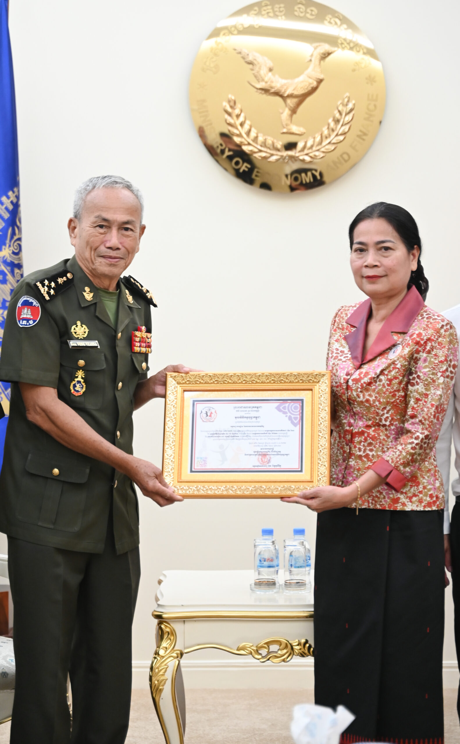 ពិធីប្រគល់ និងទទួលថវិកា ធ្វើឡើងនៅទីស្តីការក្រសួងសេដ្ឋកិច្ច និងហិរញ្ញវត្ថុ ក្រោមវត្តមាន ឯកឧត្តម នាយឧត្តមសេនីយ៍ វង្ស វាសនា អគ្គមេបញ្ជាការរង កងយោធពលខេមរភូមិន្ទ និង លោកជំទាវ ប៉ែន សុបភា រដ្ឋលេខាធិការក្រសួងសេដ្ឋកិច្ច និងហិរញ្ញវត្ថុ៕