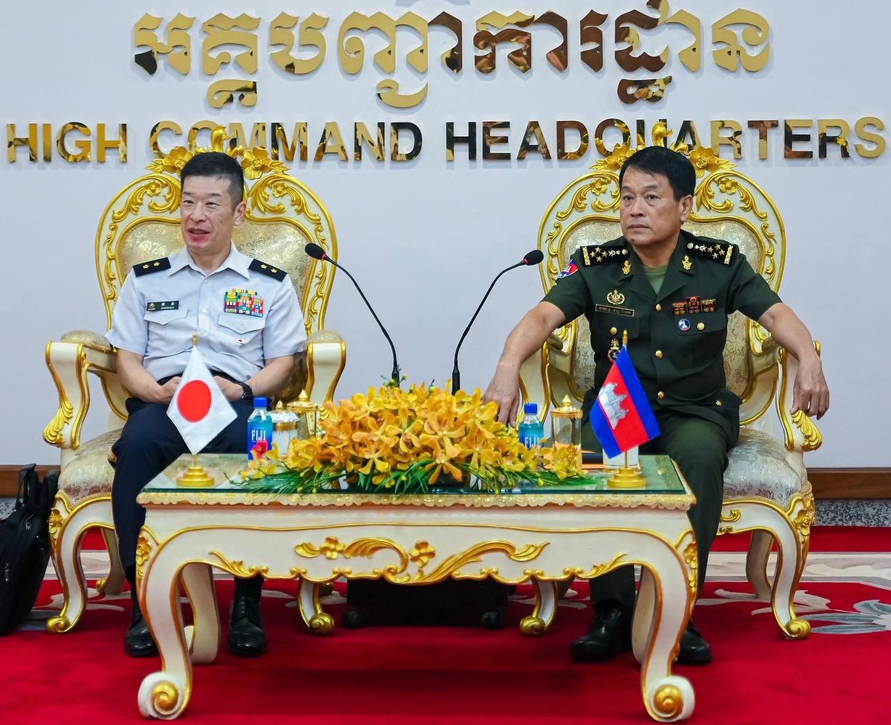 (ភ្នំពេញ)៖ នៅព្រឹកថ្ងៃទី០៧ ខែតុលា ឆ្នាំ២០២៥ ឯកឧត្តម នាយឧត្តមសេនីយ៍ វង្ស ពិសេន អគ្គមេបញ្ជាការ នៃកងយោធពលខេមរភូមិន្ទ បានអនុញ្ញាតឱ្យលោកឧត្តមសេនីយ៍ទោ SUENAGA MASANORI អគ្គនាយក អគ្គនាយកដ្ឋានកម្មវិធីគោលនយោបាយកងស្វ័យការពារជើងគោកជប៉ុន ចូលជួបសម្តែងការគួរសម និងពិភាក្សាការងារ នៅអគ្គបញ្ជាការដ្ឋាន។