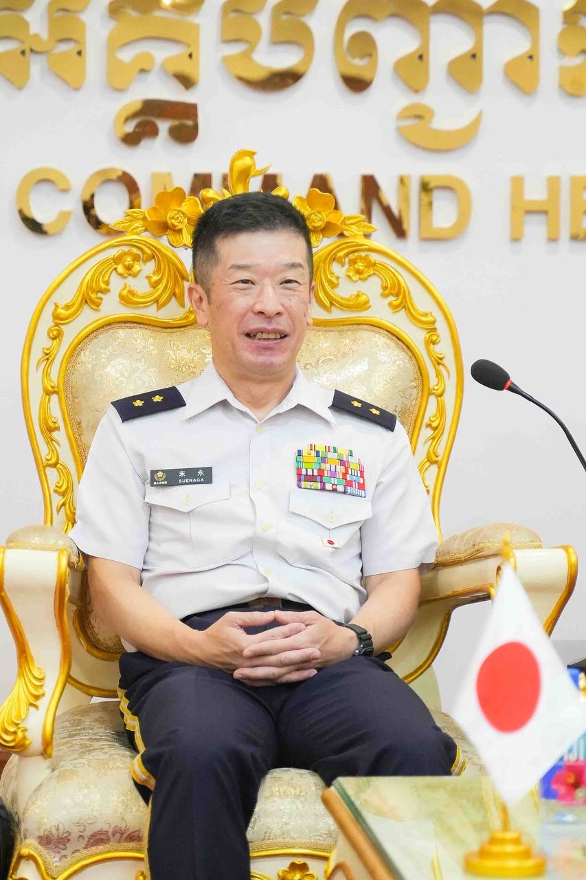 ជាការឆ្លើយតប លោកឧត្តមសេនីយ៍ទោ SUENAGA MASANORI បានវាយតម្លៃខ្ពស់ចំពោះទំនាក់ទំនង និងកិច្ចសហប្រតិបត្តិការរវាងកម្ពុជា និងជប៉ុន ទាំងក្នុងក្របខណ្ឌជាតិ និងក្របខណ្ឌកងទ័ពប្រទេសទាំងពីរ។ លោកឧត្តមសេនីយ៍ទោ បានសម្ដែងការចាប់អារម្មណ៍ចំពោះភាពរីកចម្រើនលើគ្រប់វិស័យរបស់ព្រះរាជាណាចក្រកម្ពុជា។