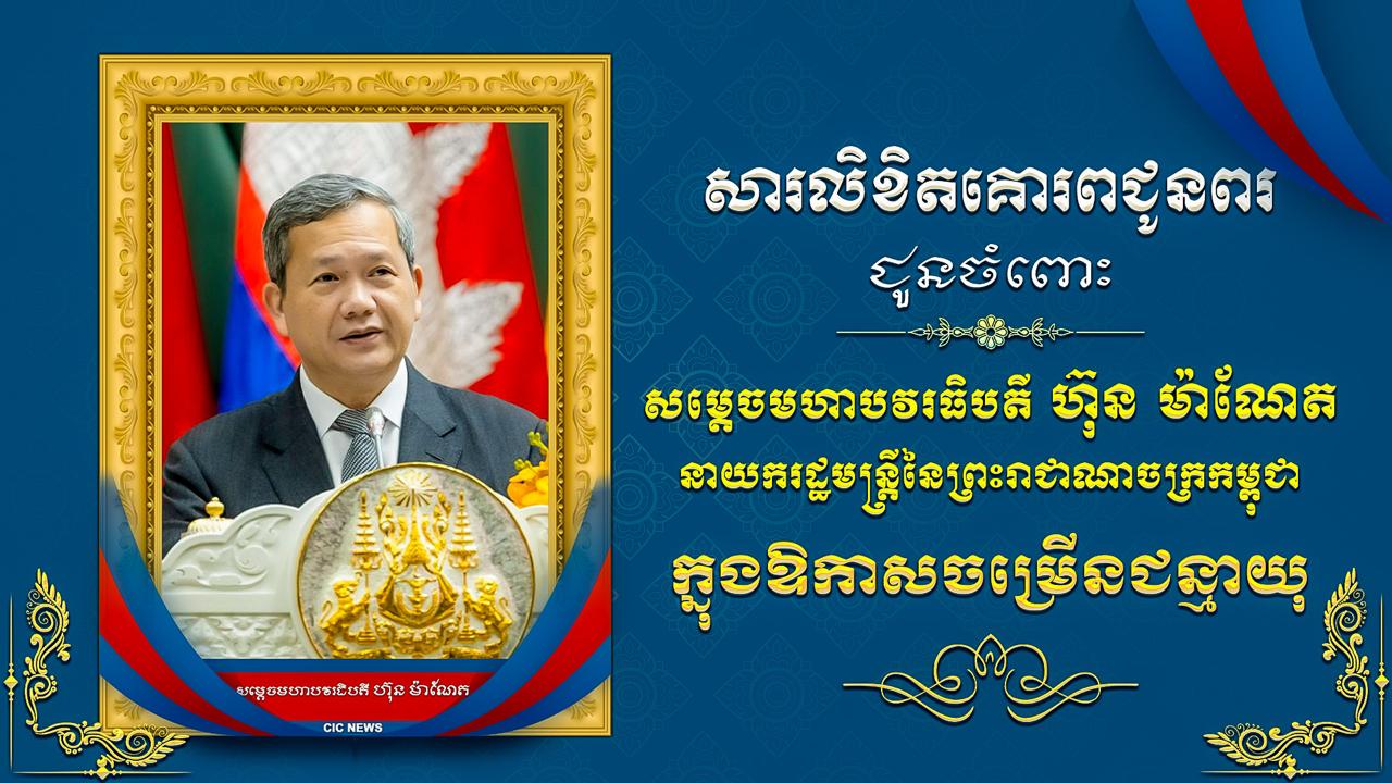 នាឱកាសដ៏ថ្លៃថ្លានេះ យើងខ្ញុំទាំងអស់គ្នា សូមគោរពកោតសរសើរចំពោះ សម្តេចមហាបវរធិបតី ហ៊ុន ម៉ាណែត ដែលបានខិតខំប្រឹងប្រែងអស់ពីកម្លាំងកាយចិត្ត ប្រាជ្ញាស្មារតី ដោយមិនខ្លាចនឿយហត់ដឹកនាំរាជរដ្ឋាភិបាលបម្រើឧត្តមប្រយោជន៍ជាតិ និងប្រជាជន ជាពិសេសបន្តថែរក្សានូវសុខសន្តិភាព ស្ថិរភាពនយោបាយ ស្ថិរភាពម៉ាក្រូសេដ្ឋកិច្ច កំណើនសេដ្ឋកិច្ចខ្ពស់ ការពារបូរណភាពទឹកដី និងអធិបតេយ្យភាពជាតិ ដែលជាមូលដ្ឋានគ្រឹះដ៏សំខាន់ក្នុងការអភិវឌ្ឍប្រទេសជាតិលើគ្រប់វិស័យ។