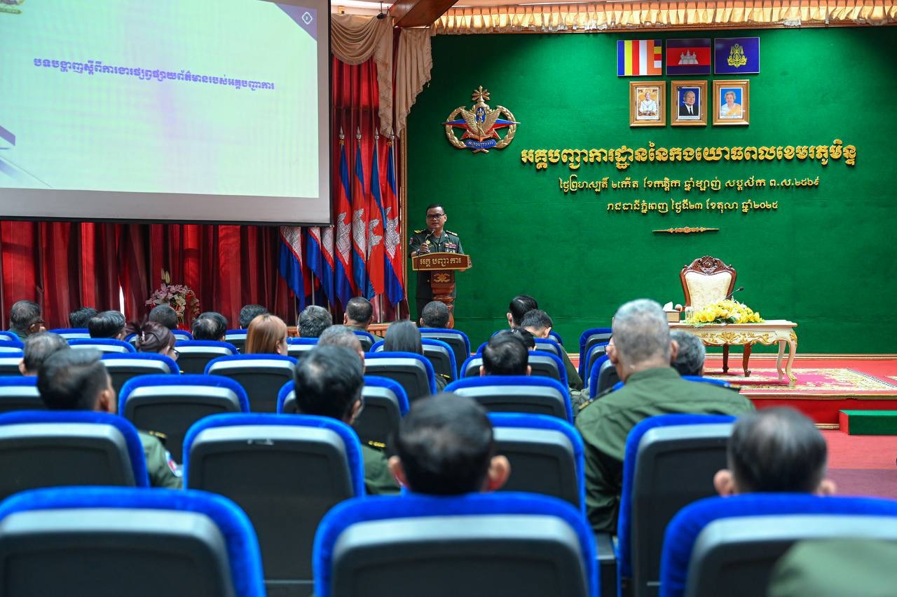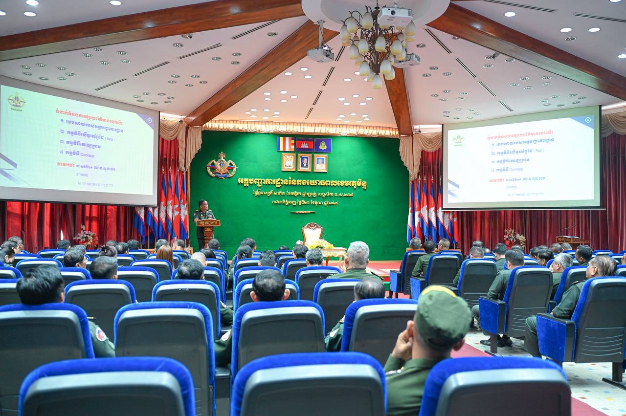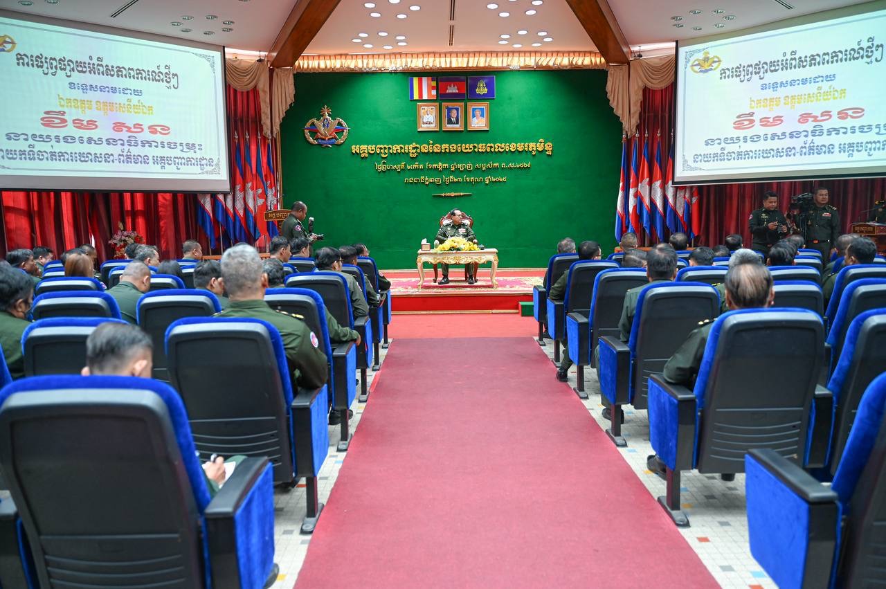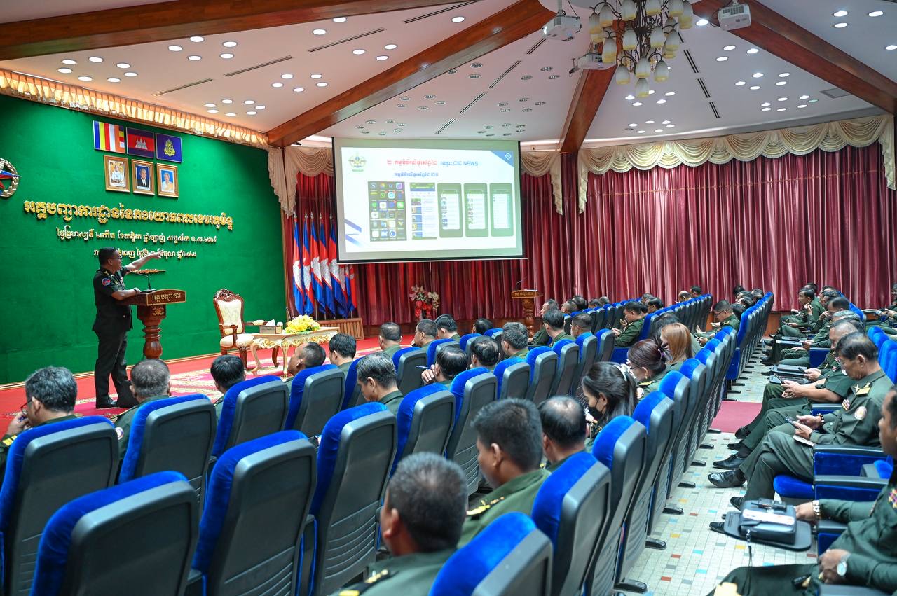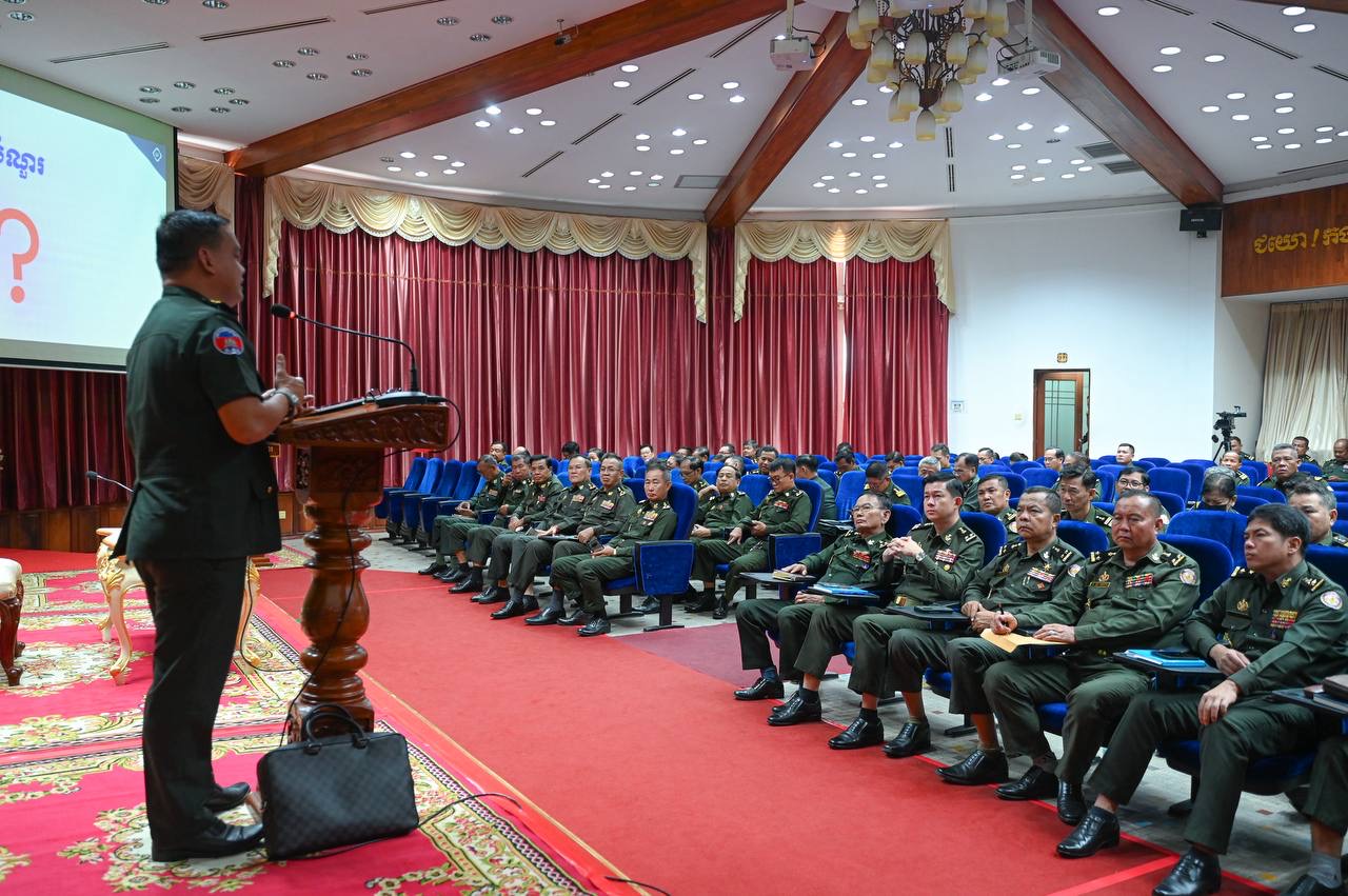 (ភ្នំពេញ)៖ ឯកឧត្តម ឧត្តមសេនីយ៍ឯក ខឹម សន នាយរងសេនាធិការចម្រុះ នាយកទីចាត់ការឃោសនាព័ត៌មាន អគ្គបញ្ជាការ បានអញ្ជើញចុះផ្សព្វផ្សាយការងារអប់រំចិត្តសាស្ត្រ សភាពការណ៍ ជាតិ-អន្តរជាតិថ្មីៗ, ខួបទី៤៨ ទិវានៃការចងចាំដំណើរឆ្ពោះទៅកាន់ការផ្ដួលរំលំរបបប្រល័យពូជសាសន៍ ប៉ុល ពត (២០ មិថុនា ១៩៧៧ – ២០ មិថុនា ២០២៥) និងខួប២៧ឆ្នាំទិវាសន្តិភាពនៅកម្ពុជា (២៩ ធ្នូ ១៩៩៨ – ២៩ ធ្នូ ២០២៥) ដល់នាយទាហាន នាយទាហានរង និងពលទាហាននៃក្រុមការងារស្រាវជ្រាវយុទ្ធសាស្ត្រយោធា និង មជ្ឈមណ្ឌលស្រាវជ្រាវប្រវត្តិសាស្ត្រយោធា  អគ្គបញ្ជាការ នាព្រឹកថ្ងៃទី២៣ ខែតុលា ឆ្នាំ២០២៥ នៅសាលមូល អគ្គបញ្ជាការដ្ឋាន៕