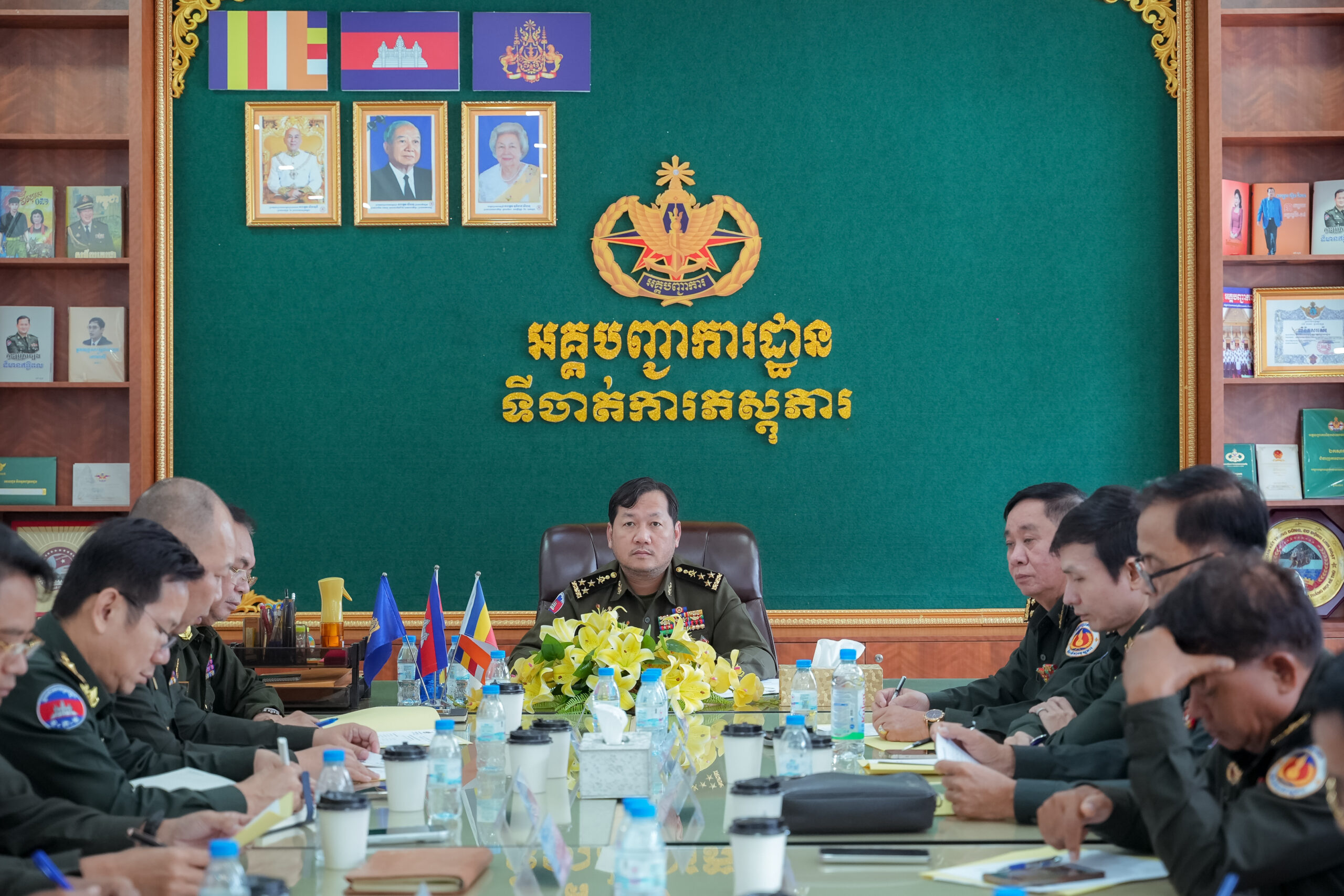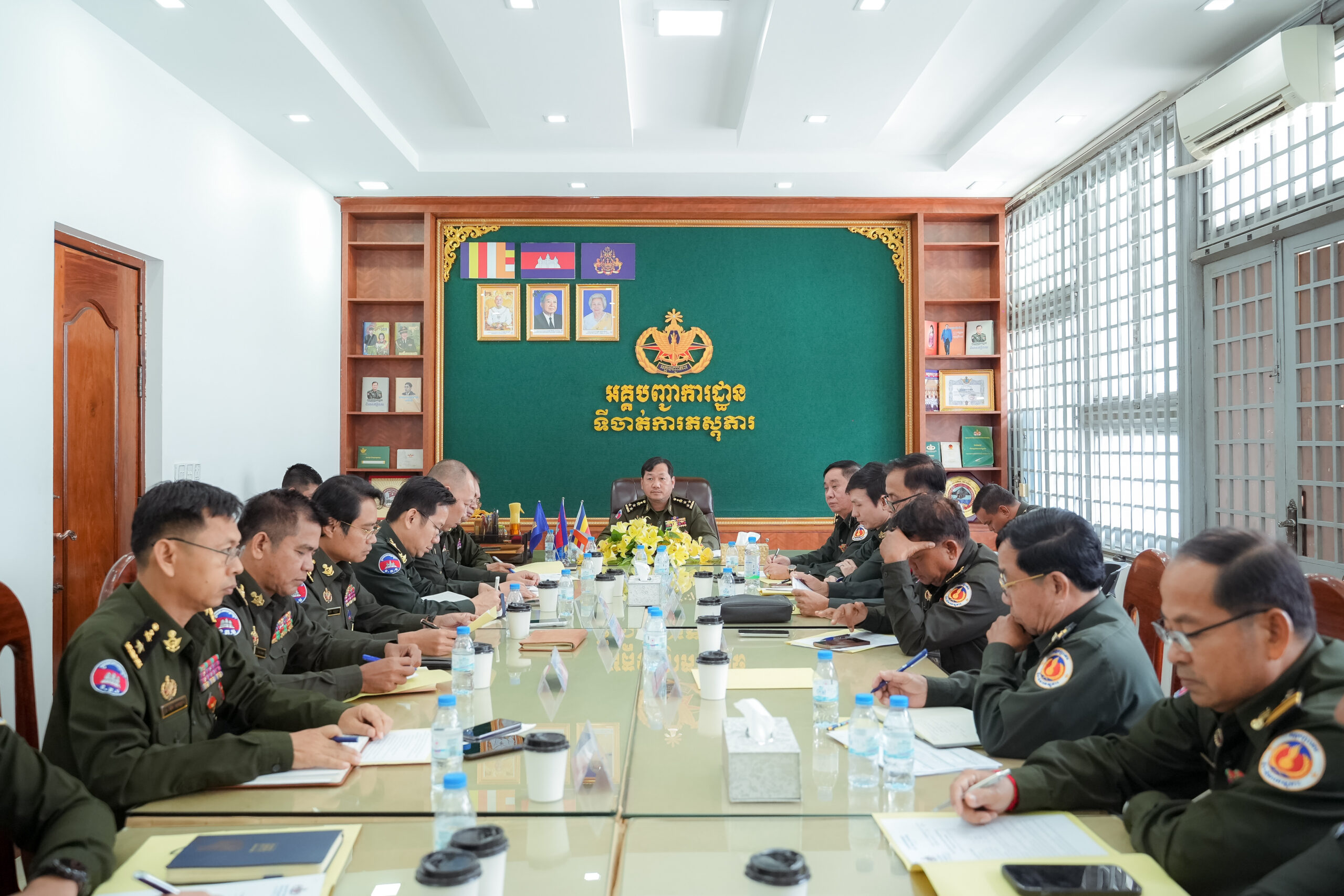 (ភ្នំពេញ)៖ ឯកឧត្តម ឧត្ដមសេនីយ៍ឯក ហួត ឈាងអន នាយរងសេនាធិការចម្រុះ នាយកទីចាត់ការភស្តុភារ អគ្គបញ្ជាការដ្ឋាន បានអញ្ជើញជាអធិបតីដឹកនាំកិច្ចប្រជុំត្រួតពិនិត្យការងារផ្ទៃក្នុងរបស់ទីចាត់ការ។