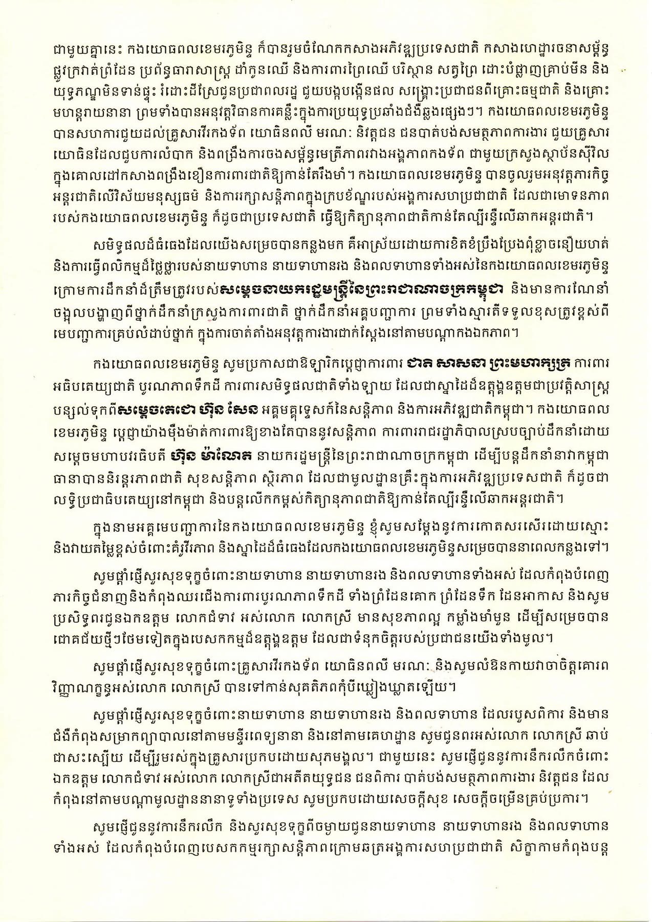 ខាងក្រោមជាខ្លឹមសារជូនពររបស់ ឯកឧត្ដម នាយឧត្ដមសេនីយ៍ អគ្គមេបញ្ជាការ កងយោធពលខេមរភូមិន្ទ៖