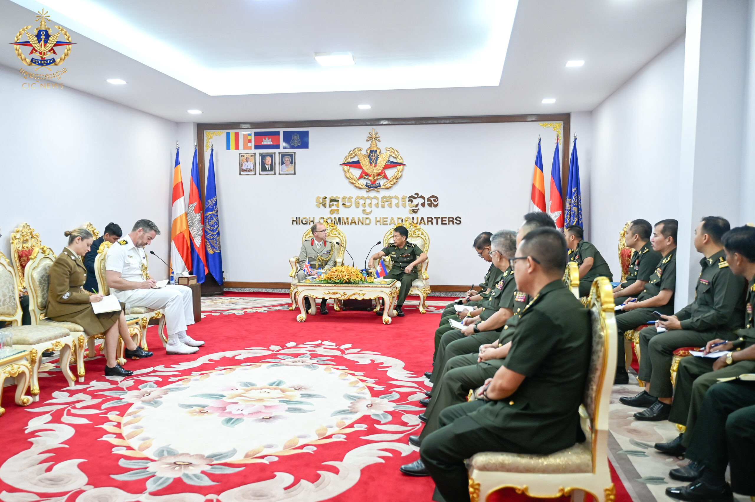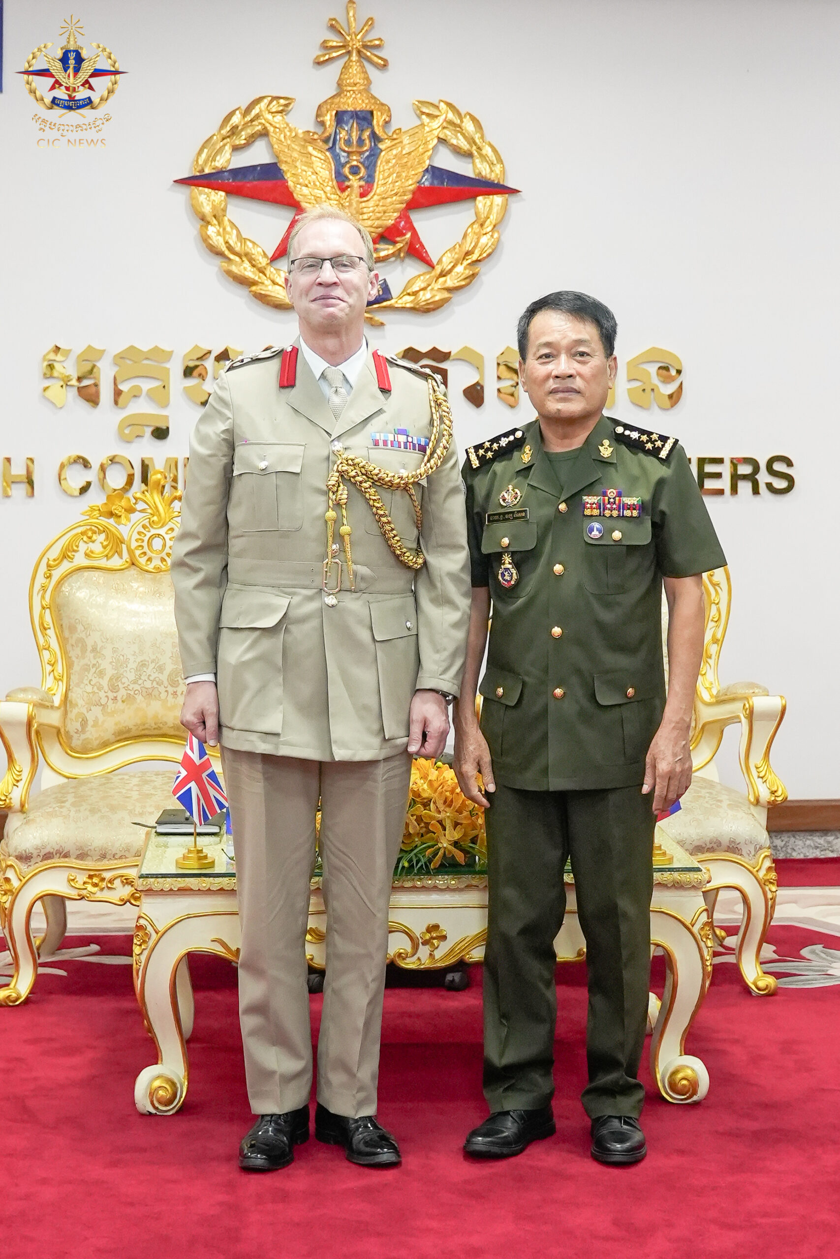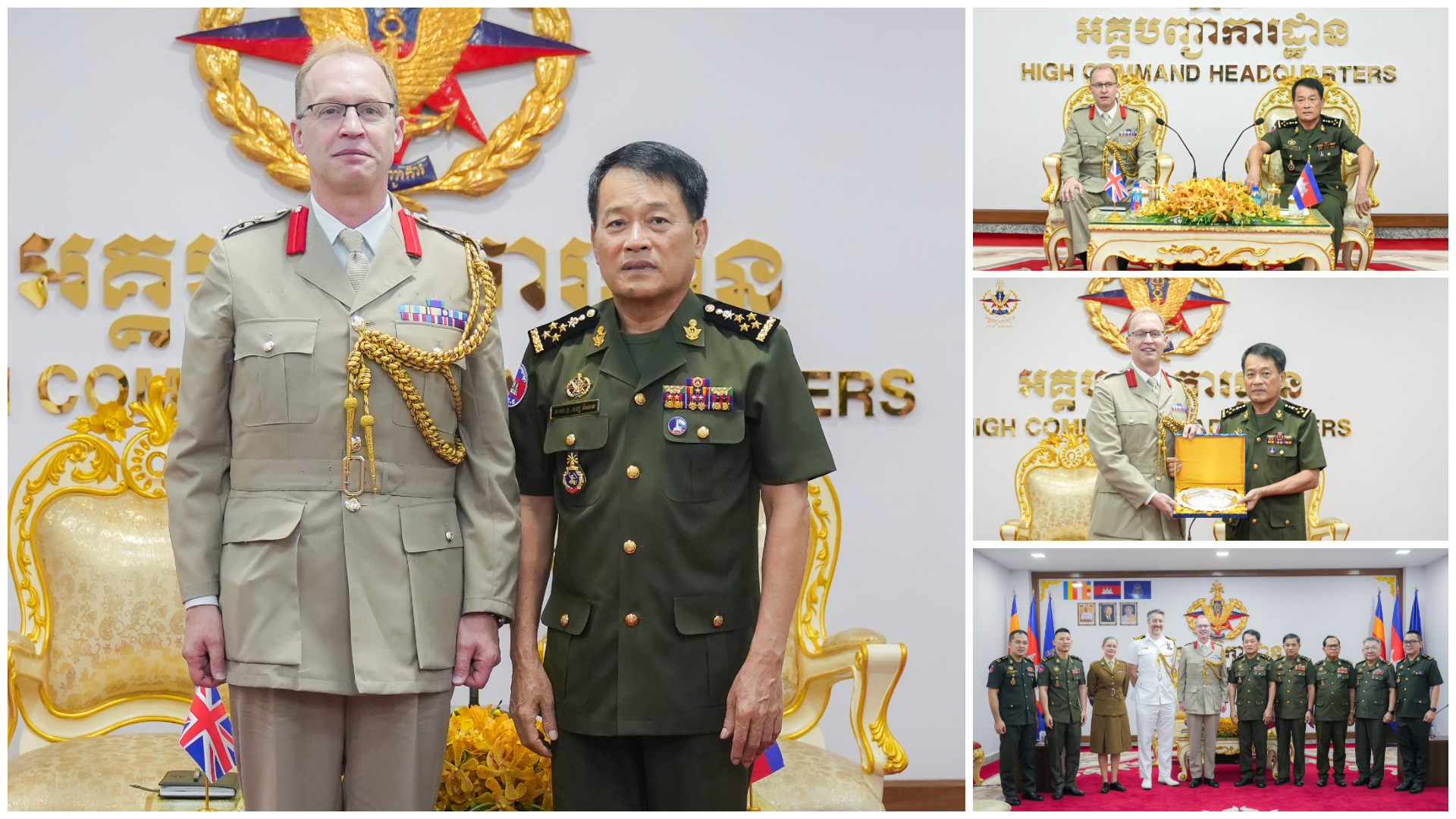 (ភ្នំពេញ)៖ នៅព្រឹកថ្ងៃទី១៨ ខែវិច្ឆិកា ឆ្នាំ២០២៥ ឯកឧត្តម នាយឧត្តមសេនីយ៍ វង្ស ពិសេន អគ្គមេបញ្ជាការ នៃកងយោធពលខេមរភូមិន្ទ បានអនុញ្ញាតឱ្យលោក វរសេនីយ៍ឯក ជូលៀន អ.អិល.ស្មីត សេនានុព័ន្ធចក្រភពអង់គ្លេសថ្មីប្រចាំកម្ពុជា ដែលមាននិវេសនដ្ឋាននៅក្រុងហាណូយ ប្រទេសវៀតណាម ចូលជួបសម្តែងការគួរសម និងពិភាក្សាការងារ នៅអគ្គបញ្ជាការដ្ឋាន។