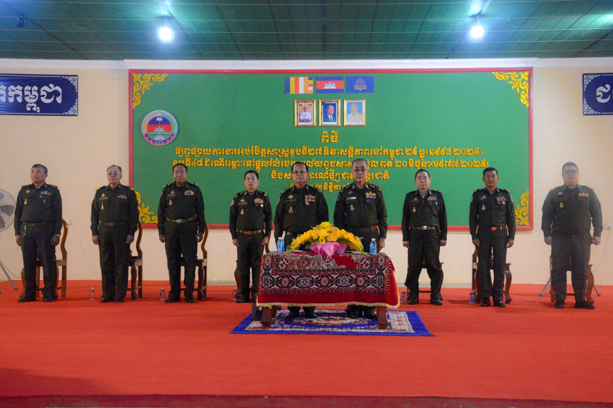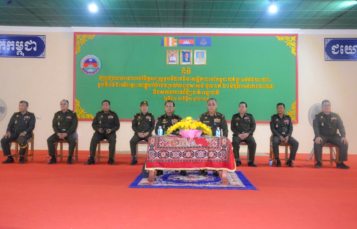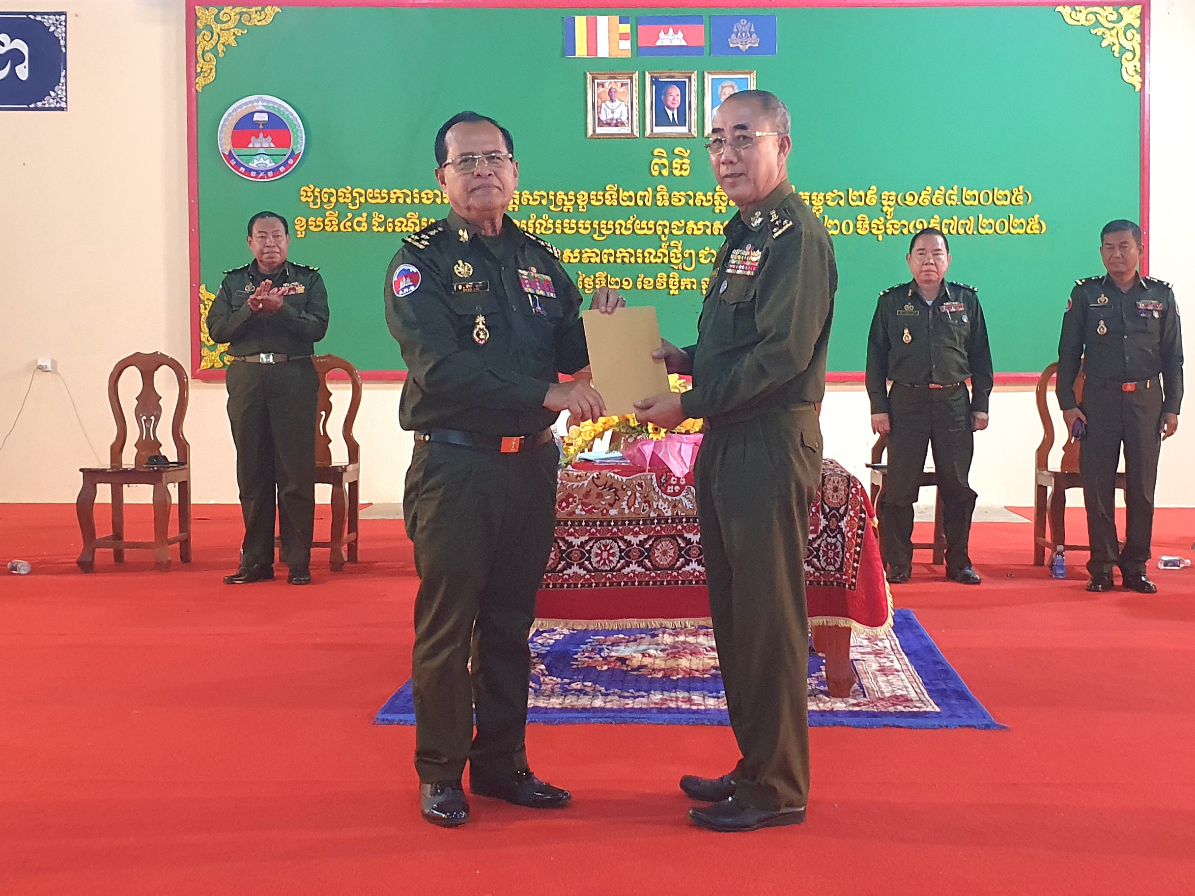 (កំពង់ស្ពឺ)៖ ឯកឧត្តម ឧត្តមសេនីយ៍ឯក ខឹម សន នាយរងសេនាធិការចម្រុះ នាយកទីចាត់ការឃោសនាព័ត៌មាន អគ្គបញ្ជាការ បានអញ្ជើញផ្សព្វផ្សាយការងារអប់រំចិត្តសាស្ត្រ សភាពការណ៍ ជាតិ–អន្តរជាតិថ្មីៗ, ខួបទី៤៨ ទិវានៃការចងចាំដំណើរឆ្ពោះទៅកាន់ការផ្ដួលរំលំរបបប្រល័យពូជសាសន៍ ប៉ុល ពត (២០ មិថុនា ១៩៧៧ – ២០ មិថុនា ២០២៥) និងខួប២៧ឆ្នាំទិវាសន្តិភាពនៅកម្ពុជា (២៩ ធ្នូ ១៩៩៨ – ២៩ ធ្នូ ២០២៥) ដល់នាយទាហាន នាយទាហានរង និងពលទាហាន ទីចាត់ការ អភិវឌ្ឍន៍ អគ្គបញ្ជាការ នាព្រឹកថ្ងៃទី២១ ខែវិច្ឆិការ ឆ្នាំ២០២៥៕